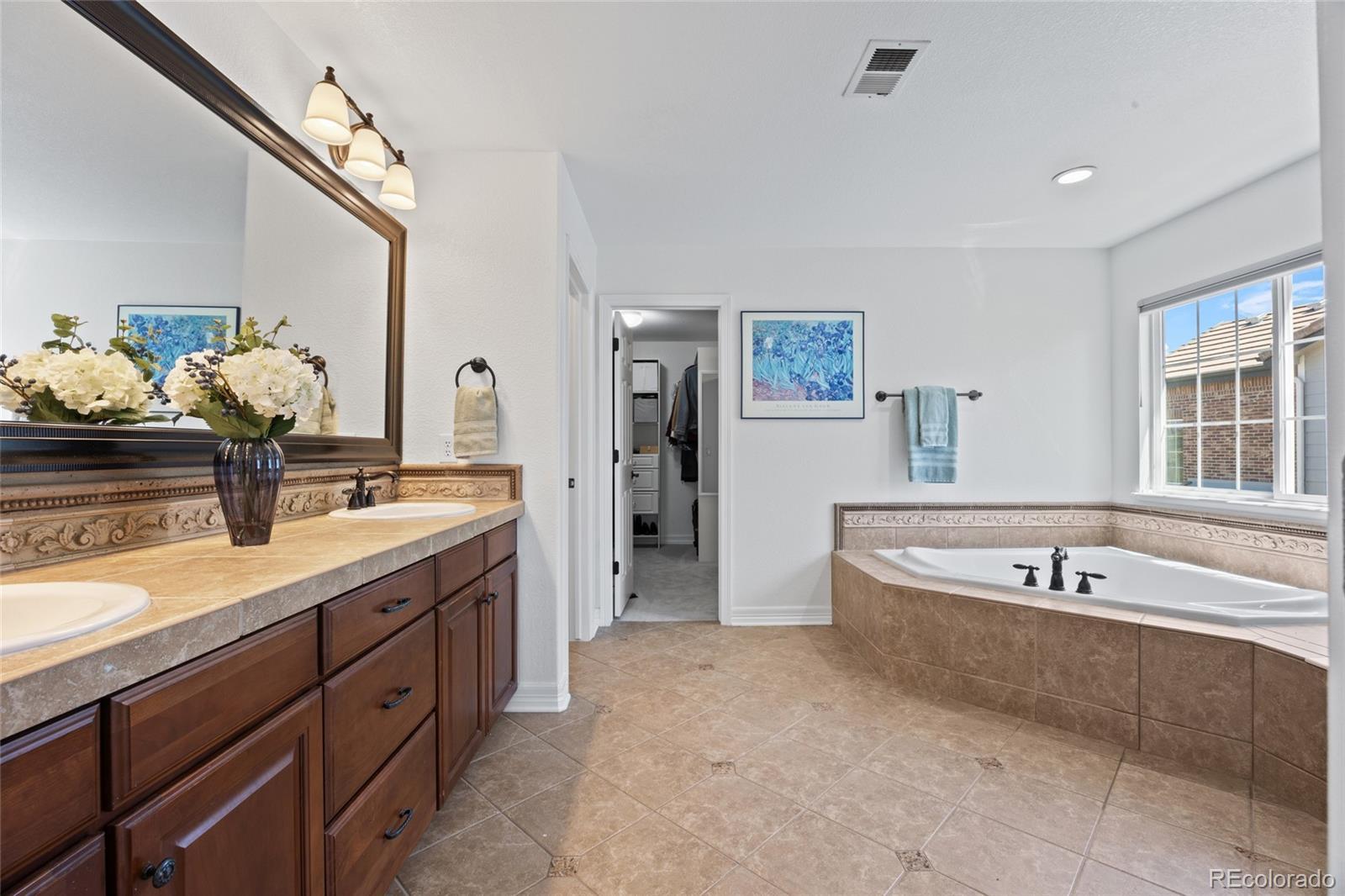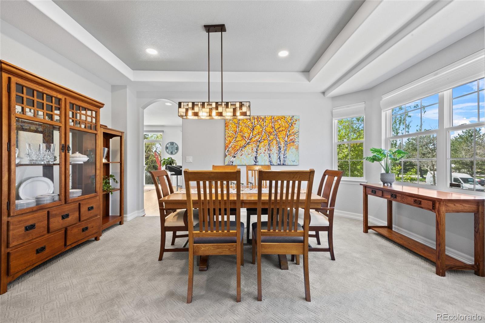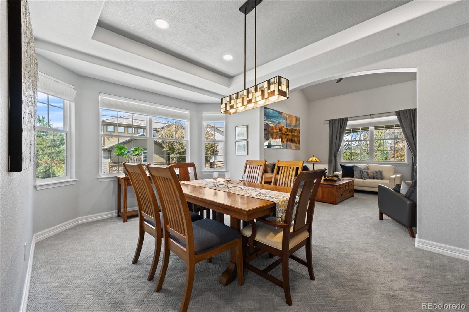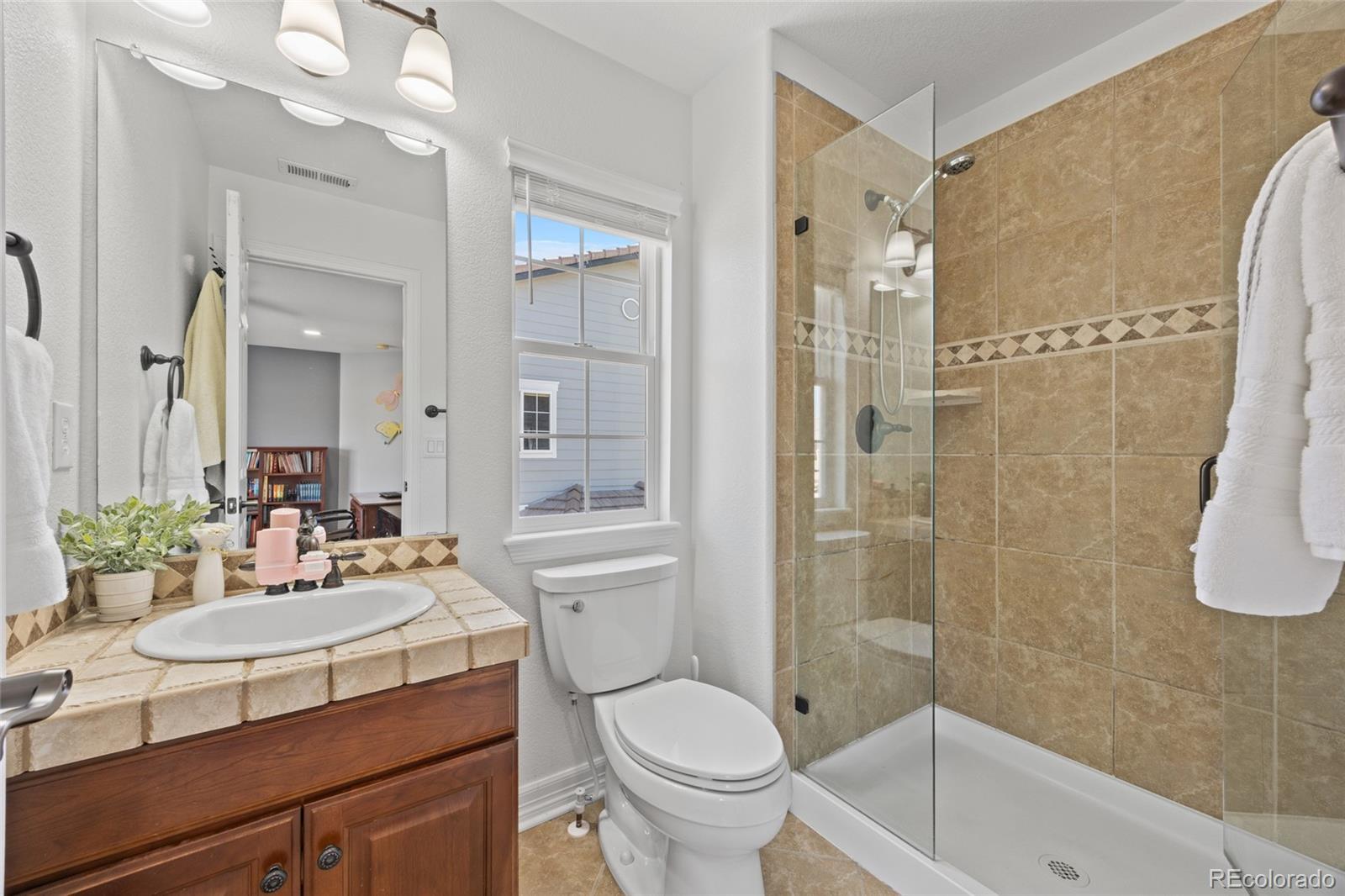 Located in the gated community of The Reserve at Cherry Creek Vista in Greenwood Village, this well-maintained home sits on a private corner lot backing directly to Lakeview Park. The setting offers a rare combination of privacy, open space, and direct access to trails and neighborhood amenities. Inside, the home features hickory hardwood floors, vaulted ceilings, custom lighting, and updated finishes throughout. The kitchen includes granite countertops, a gas cooktop, ample cabinetry, and a generously sized pantry, opening to comfortable living and dining areas designed for everyday use. A main-level study provides flexible space for work or hobbies, while the family room is anchored by a custom fireplace surround. The finished basement adds valuable versatility with a full bathroom and built-in Murphy bed, ideal for guests, entertaining, or additional living space. Outdoors, the professionally landscaped backyard includes a fire pit and direct access to Lakeview Park, creating an extension of the home’s living area. Residents enjoy close proximity to the community pool, tennis courts, playground, and highly regarded Cherry Creek schools. Conveniently located near Cherry Creek Reservoir, the Denver Tech Center, shopping, dining, and major commuting routes, this property offers a desirable balance of location, layout, and outdoor connection.