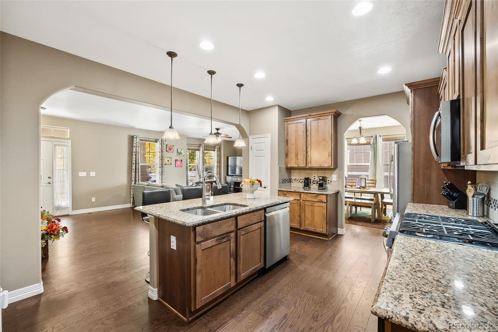 Welcome to 5841 W 94th Place, a beautifully crafted home that captures the feeling of belonging the moment you walk through the door. Nestled on a picturesque, tree-lined street in Westminster, this beautifully cared-for three bedroom, three bath home blends comfort, character, and modern style in all the right ways. From the moment you step onto the inviting front porch, you can sense the charm and warmth this home offers. Inside, sunlight pours through large windows, dancing across gleaming hardwood floors and creating a bright, welcoming atmosphere. The open floor plan flows effortlessly from the spacious living room with its cozy fireplace to the heart of the home, a stunning kitchen designed for connection and creativity. The kitchen features rich wood cabinetry, granite countertops, stainless steel appliances, and a large center island that is perfect for gathering. Whether you are hosting dinner with friends or enjoying a quiet morning coffee, this space invites you to linger. Upstairs, all three bedrooms are generously sized and thoughtfully designed for comfort. The primary suite feels like a true retreat, offering peaceful views, a walk-in closet, and a luxurious five piece bath with a soaking tub and glass enclosed shower. It is the perfect place to unwind after a long day. Step outside to your private fenced yard, where the front porch and back patio make outdoor living easy and enjoyable. Imagine warm summer evenings, fall gatherings, and quiet mornings surrounded by mature trees and friendly neighbors. With its two car garage, timeless curb appeal, and location close to parks, trails, shops, and dining, this home offers everything you have been looking for. 5841 W 94th Place is more than a place to live, it's a place to love, grow, and call home.