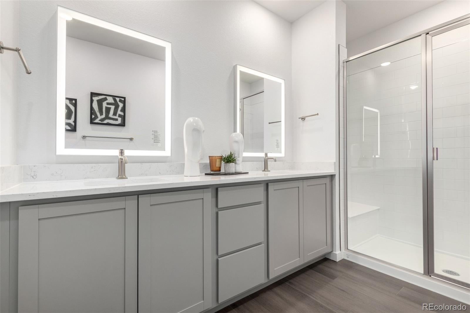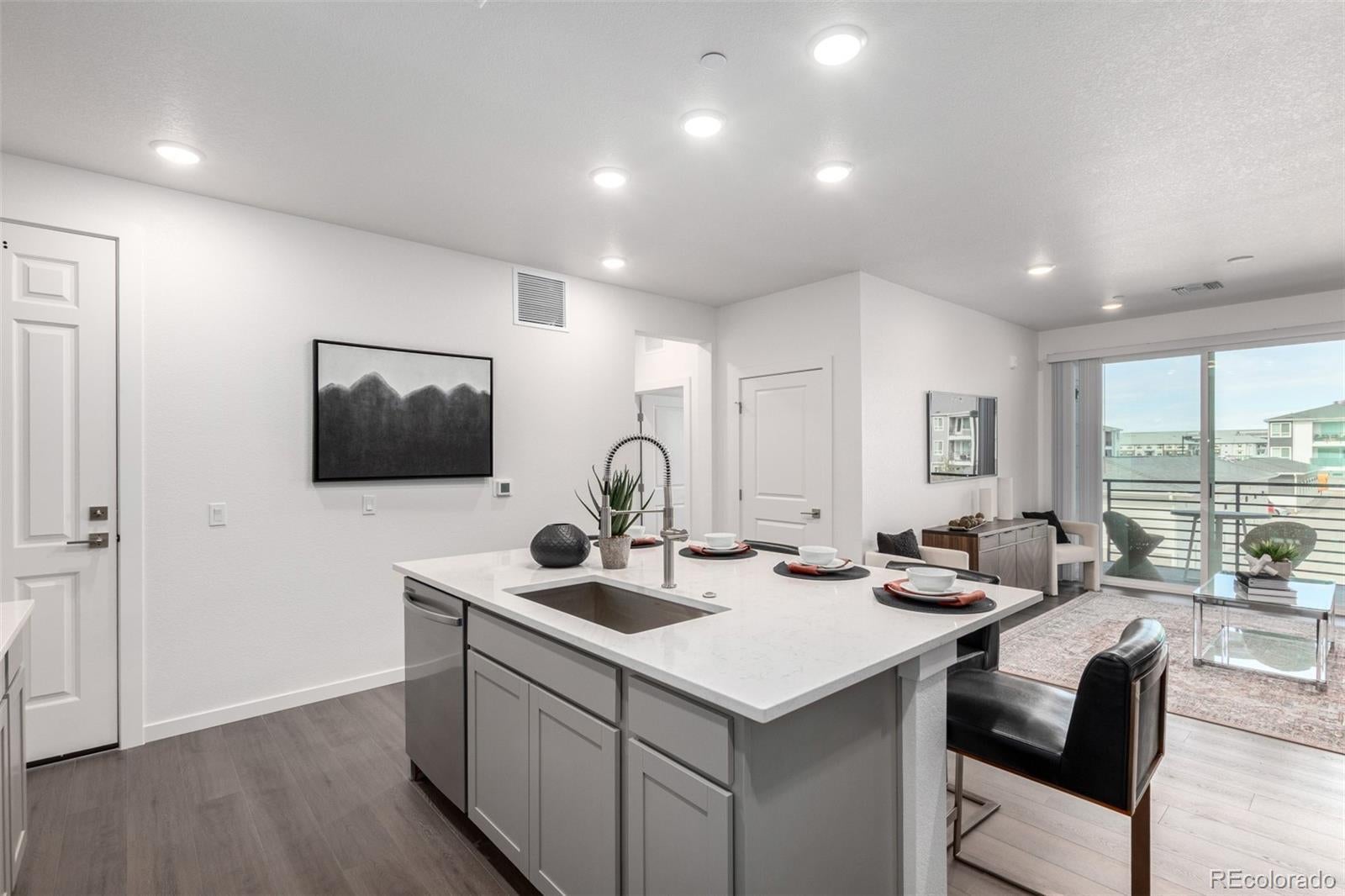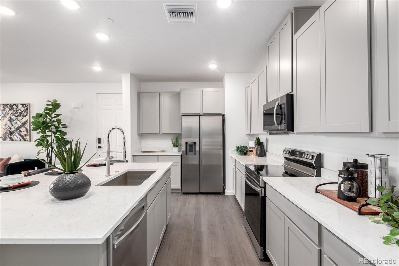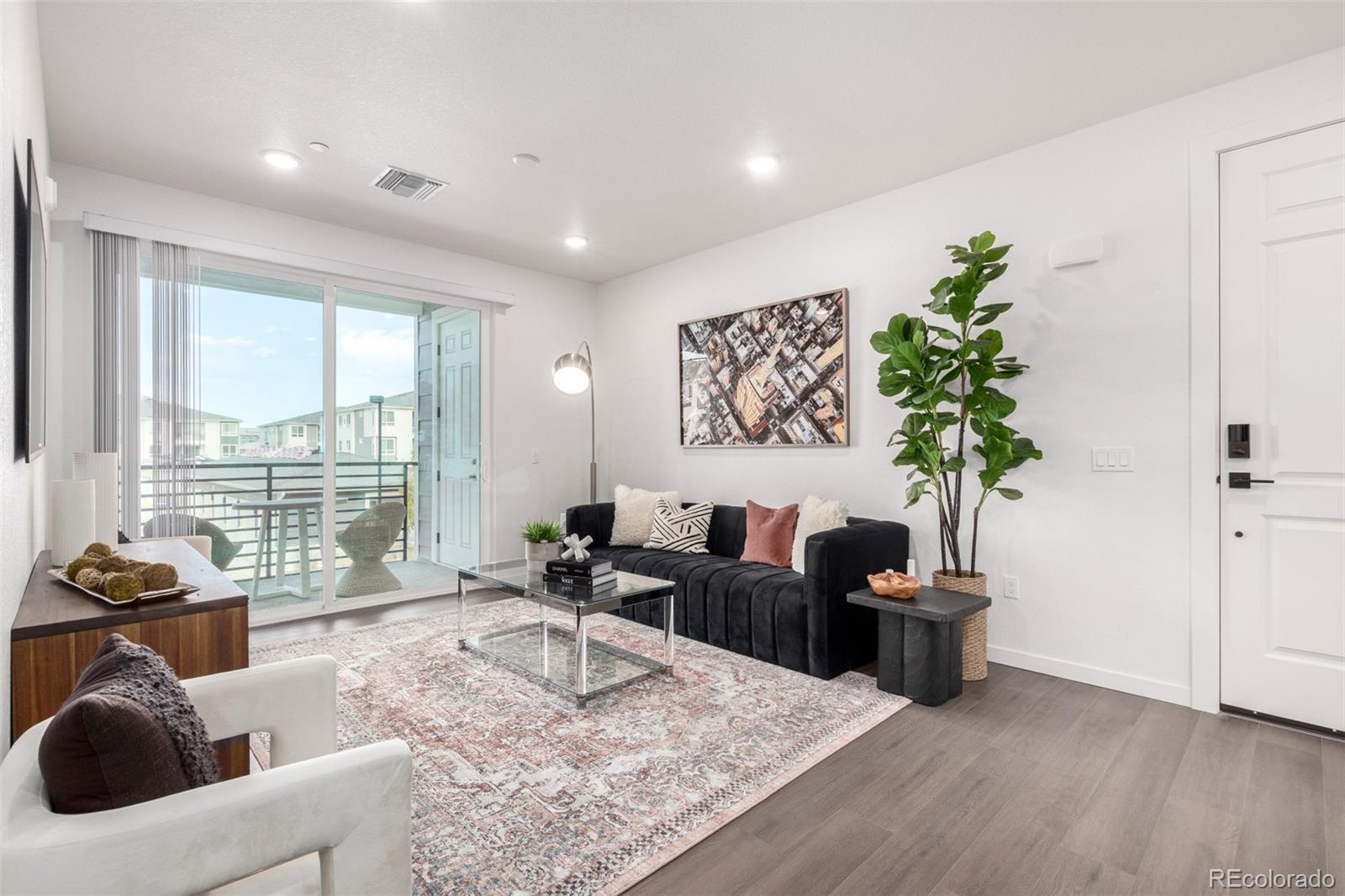 BEAUTIFUL CONDO-READY TODAY - Brand new condo with private stairs to extra-deep garage plus driveway parking. This sleek and modern unit features our new Colorado Complete finishes including beautiful quartz countertops, gray soft-close cabinets, stainless steel appliances (including refrigerator), and full sized front-loading washer and dryer. High quality, easy care LVP flooring in a rich hue flows throughout the unit. Large kitchen island seats 4-5 and features an oversized stainless steel sink and semi-professional Kohler faucet. Brushed nickel hardware and fixtures add to the contemporary feel. Oversized subway tile in both baths and dual lighted mirrors in the spacious primary bath. This unit is move-in ready including blinds, air conditioning, Navien tankless water hearter, Kwikset Smartcode deadbolt and more. Easy access to E-470, I-70 and DIA. Take advantage of the amazing financing incentives available through our affiliated lender and get into a brand-new home for less than you would expect! Visit www.lokalhomes.com for more information. Buyer shall be responsible for verifying property taxes as there is currently no available tax information for the units at the assessor's website.