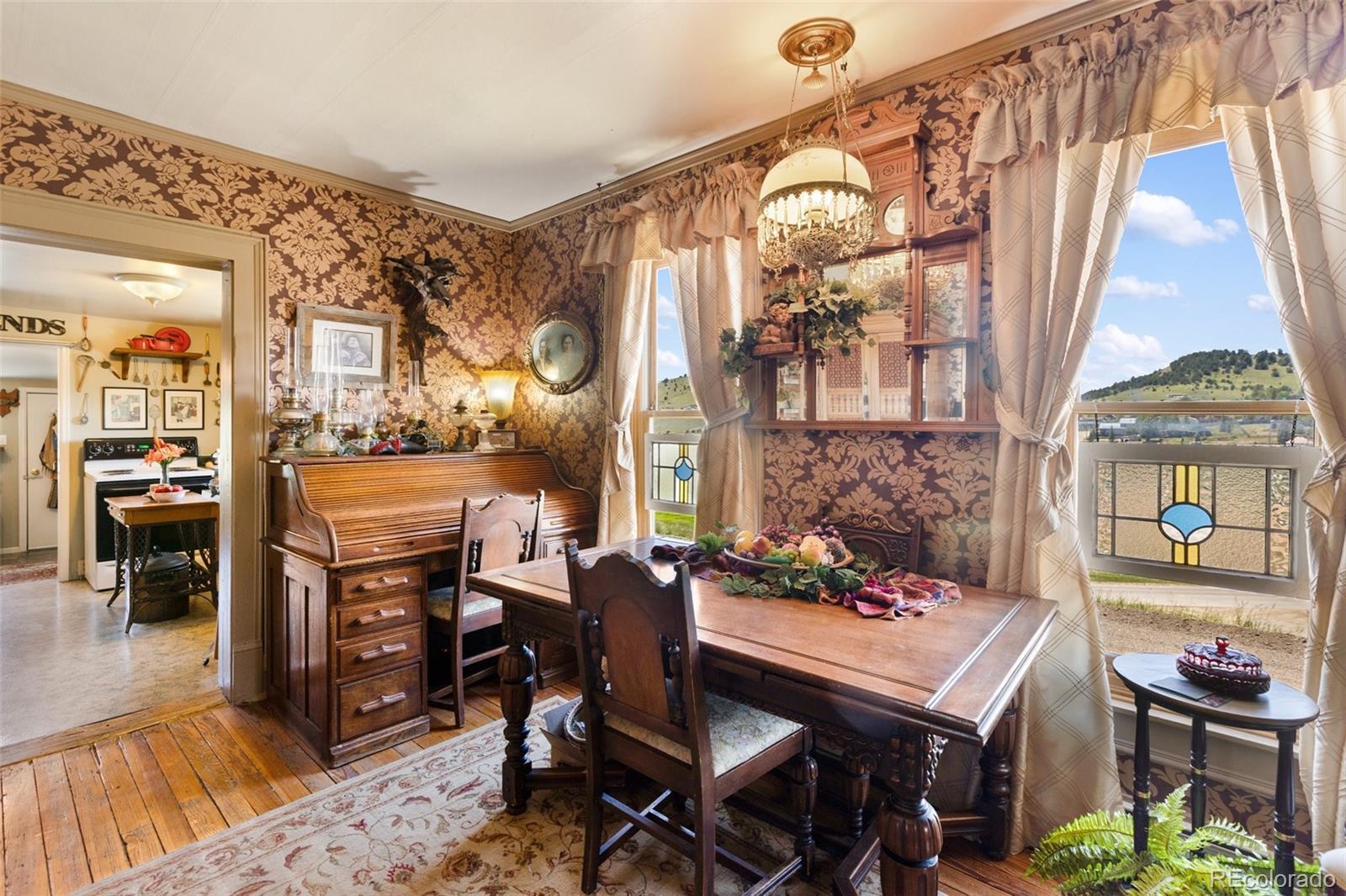 Step into a piece of history with this beautifully preserved Victorian home in the heart of Cripple Creek. Built in the early 1900s, this charming residence showcases original woodwork, tall ceilings, and timeless character throughout. Enjoy stunning mountain views and the convenience of a short walk to downtown attractions, shops, restaurants, and casinos. The home offers three bedrooms and a full bath complete with a walk-in jetted tub and separate shower. A bright sunroom leads out to a spacious deck — perfect for relaxing or entertaining while taking in the surrounding scenery. The kitchen comes equipped with all appliances, including a refrigerator, making it move-in ready. Additional features include a Rinnai on-demand hot water heater for comfort and efficiency, as well as two sheds on the side yard providing plenty of extra storage space. Thank you for showing this delightful property — an opportunity to own a special piece of Cripple Creek history!