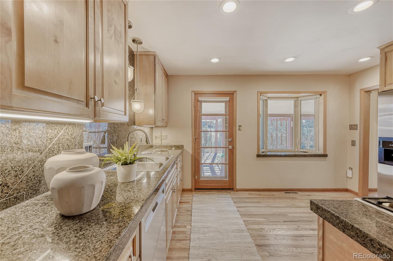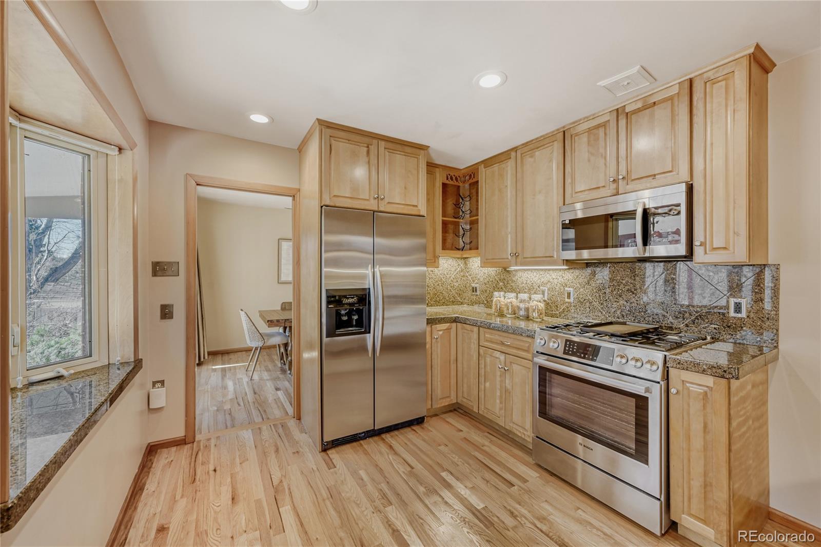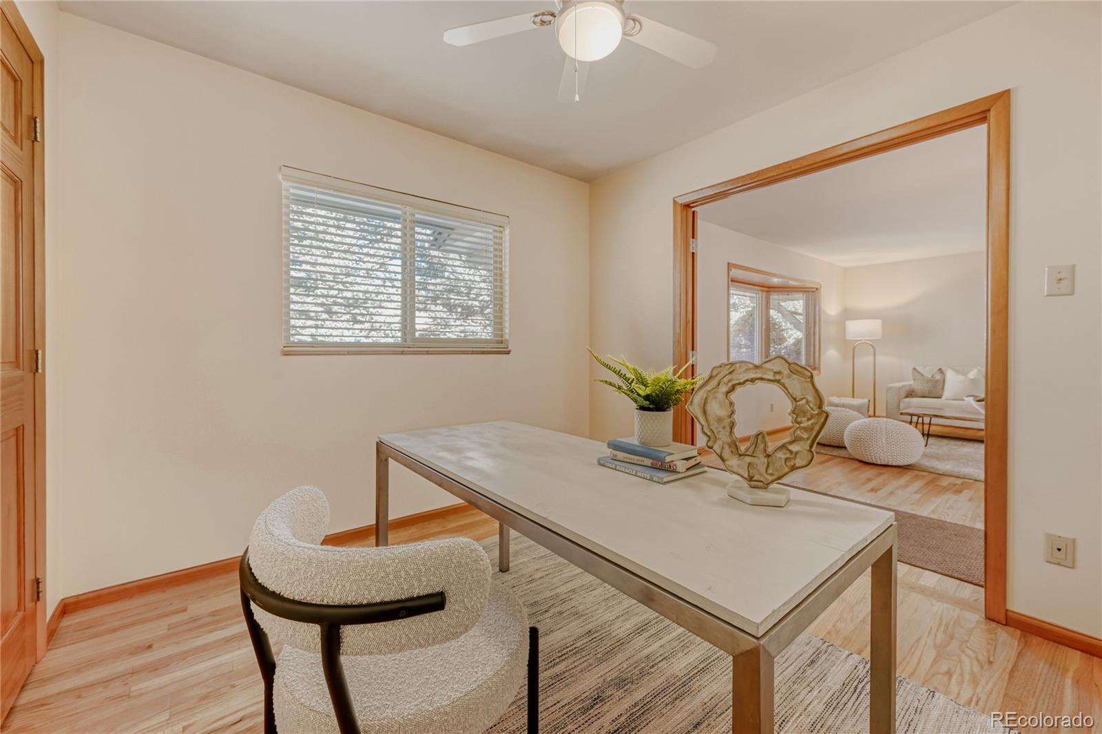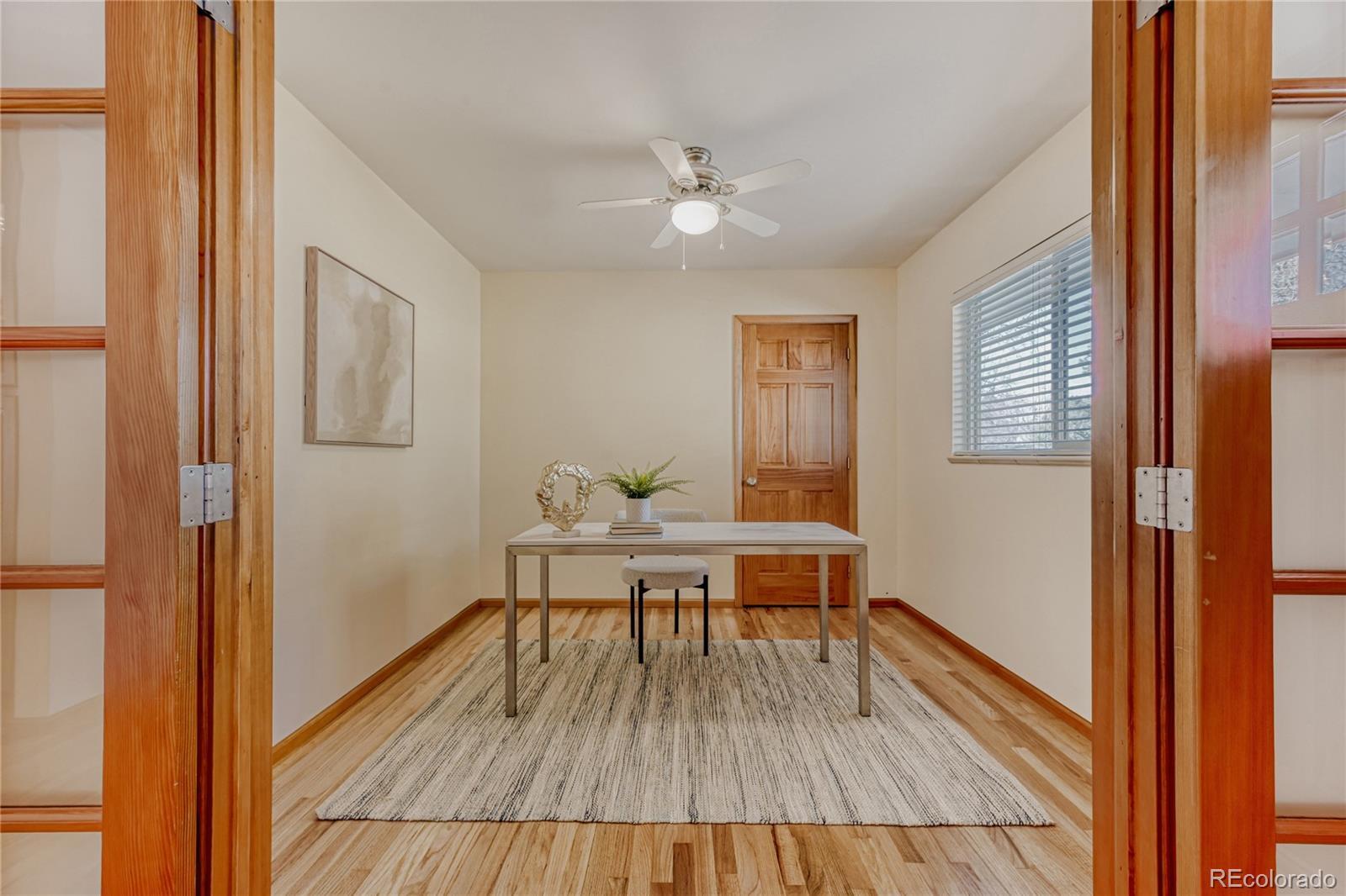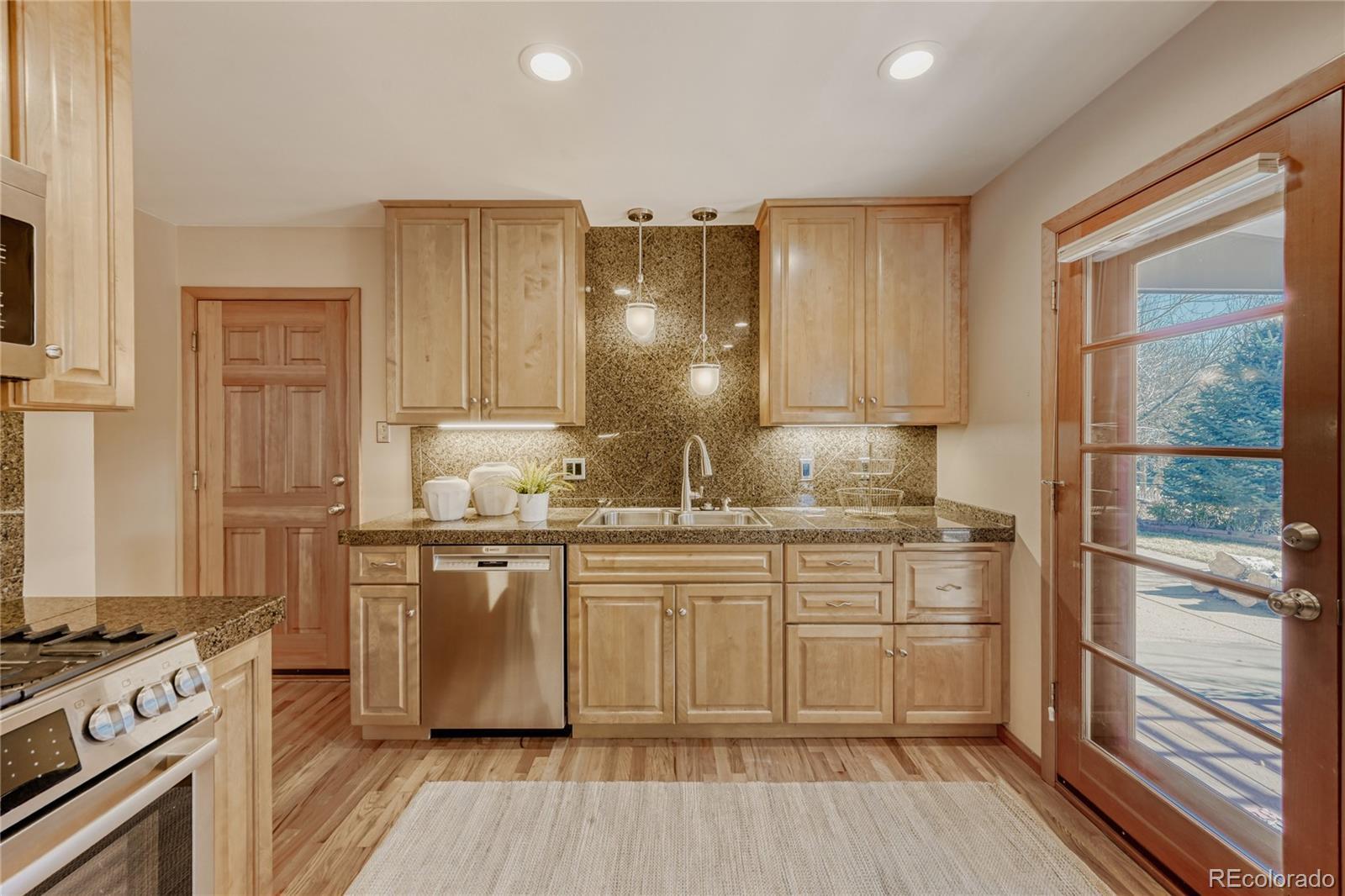 If you’re tired of walking through white-on-gray remodels, where everything looks new but nothing feels solid - this impeccably maintained Hutchinson Hills home is exactly what you’ve been waiting for. Quality & pride of ownership are evident throughout, from the real hardwood floors to the solid-core doors that create a home that feels substantial, warm & enduring. The main level offers generous living & dining spaces & a spacious kitchen w/ thoughtful upgrades- featuring quality maple cabinetry, granite tops, stainless appliances & direct access to the deck. And the best part? You can’t see the dirty dishes from the family room. Three bedrooms & two upgraded bathrooms are located on this level, including a spa-like renovated hall bath with a zero-entry roll-in shower. The front bedroom is currently styled as a private office with French doors & a closet, offering flexible use. The primary bedroom suite serves as a calm retreat with a private bath.The finished basement expands the home’s livability w/ 2 additional bright conforming bedrooms w/daylight windows, a flex room & a spacious family room anchored by a cozy brick fireplace-creating an ideal layout for multi-generational living, guests, or work-from-home flexibility. Large laundry room with a walk-in storage room adds both function & comfort. Major systems have been proactively maintained, with furnace, AC & hot water heater replaced in 2020. The extra-deep garage includes built-in shelving for additional storage & features a new overhead door and opener. Outside, the backyard offers privacy with mature trees and vibrant seasonal flowers. The covered deck + large patio provide space for gatherings of 1–100 and room to enjoy Colorado’s outdoors year-round. Don’t miss the charming detached studio-ideal for a playhouse, craft room, potting shed, or workshop. Located just minutes from Rosamond Park, DTC & Cherry Creek Reservoir, with easy access to Downtown, Buckley Air Force Base, Light Rail, I-25, and I-225.