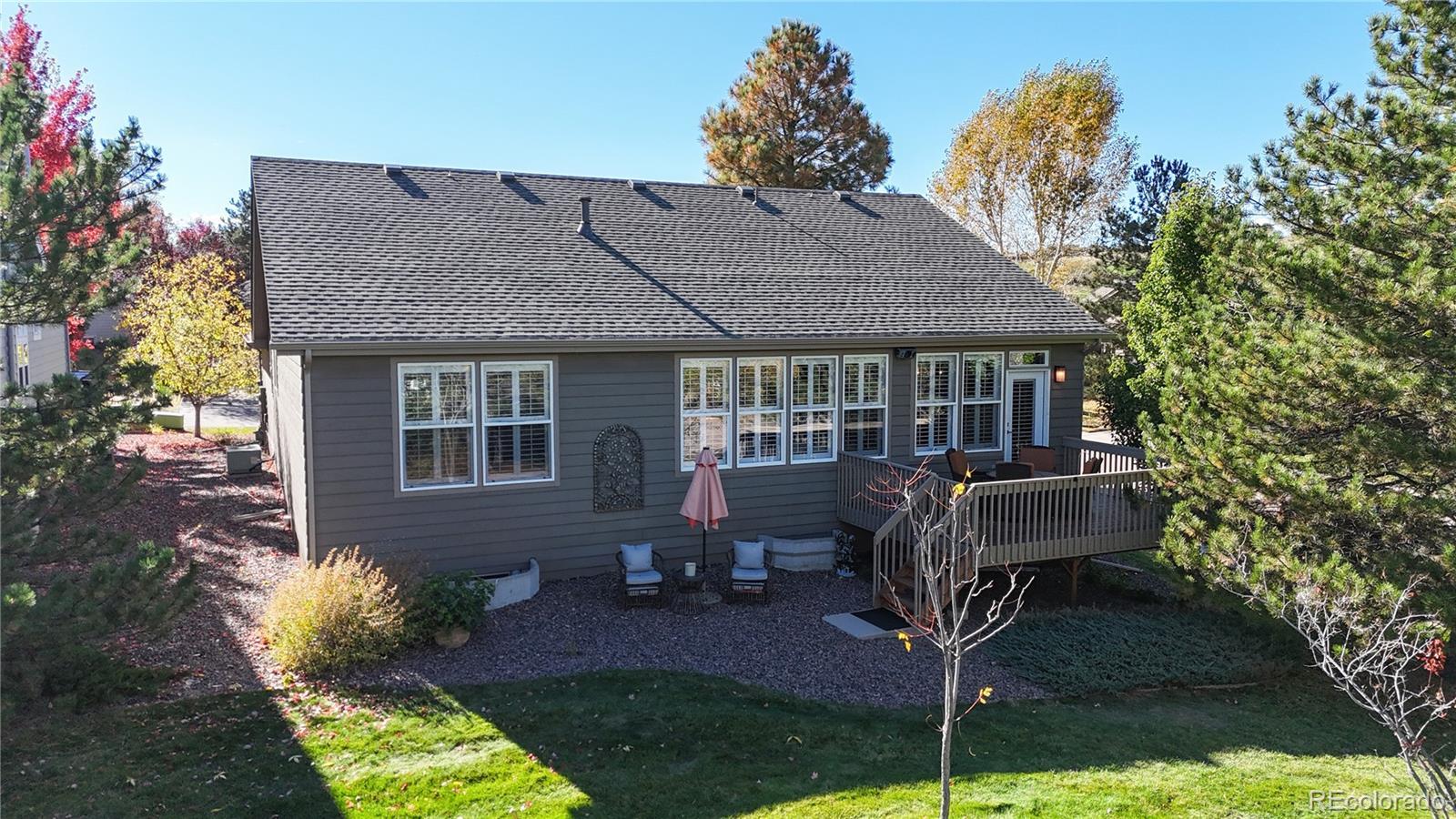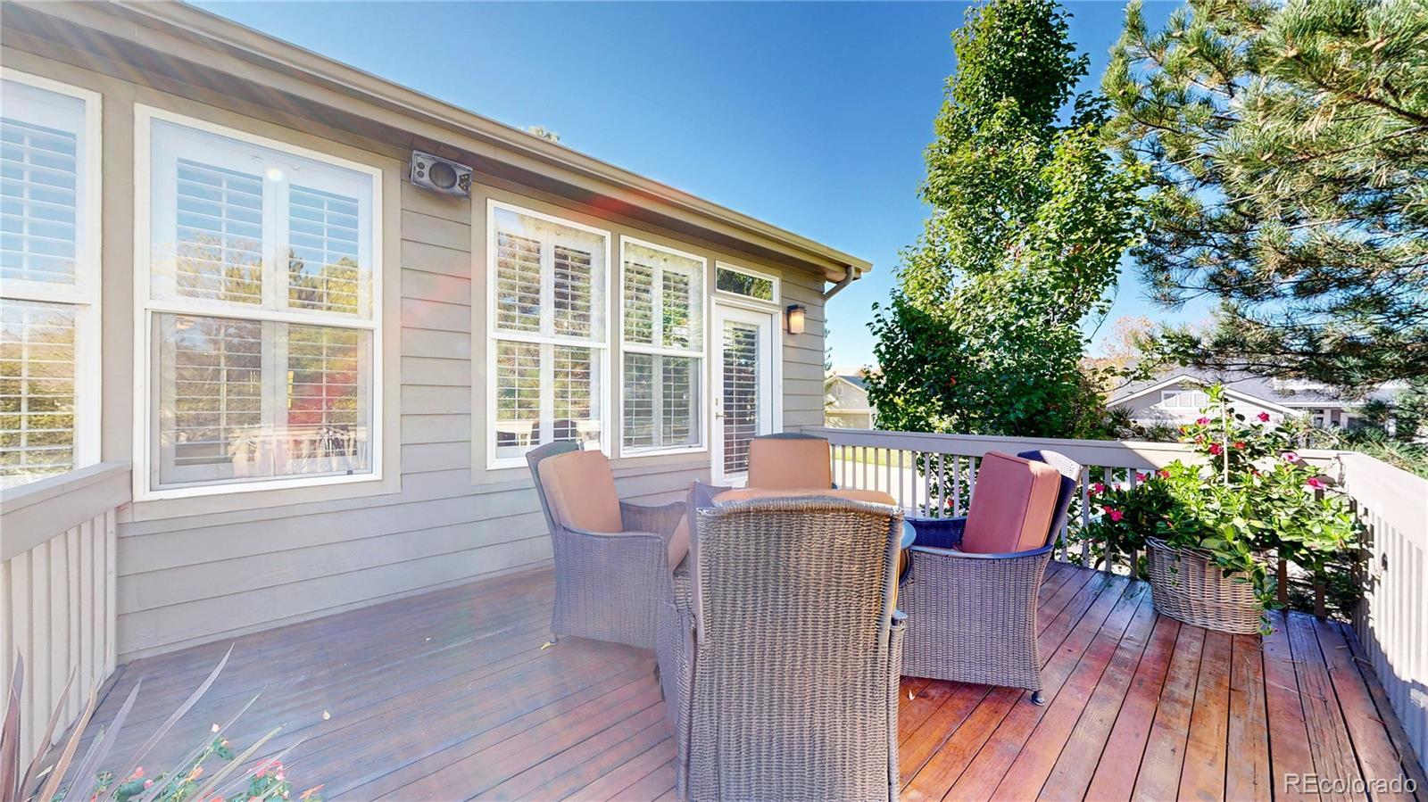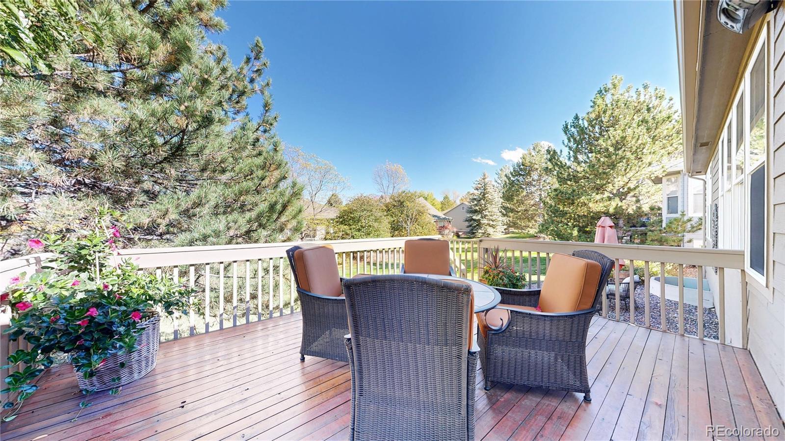 OPEN HOUSE SATURDAY DEC 6TH 12:30PM-2:30PM. Welcome to your serene retreat in Castle Pines North! This charming 3 bed, 2 bath home is located on a corner lot and backs to a lush greenbelt, offering tranquil views and a private, peaceful setting. Enjoy morning coffee or evening meals on the spacious deck, conveniently located just off the bright, open kitchen and dining area. Inside, an open and bright floor plan connects the kitchen and family room, creating a seamless flow for daily living and ideal for entertaining or relaxing. The main floor study is off of the entry and away from the bedrooms for added privacy. The laundry room is right off of the attached 2 car garage entry-to complete this move-in-ready gem. 3rd bedroom is in the basement, and the rest of the basement is unfinished-a blank canvas ready for the next owner to make it their own. This well cared for home has many updates and upgrades including but not limited to stainless steel appliances including double ovens and gas range and hood, fireplace with stone surround and wood mantle, hardwood floors, newer carpet and interior paint. Roof was replaced in 2024. This home offers low-maintenance living with no lawn mowing or snow shoveling, plus resort-style community amenities such as pools, parks, and scenic trails. Enjoy the ideal Colorado lifestyle with The Ridge golf course across the street, hiking at Douglas County's Daniels Park - only 1.4 miles away with trails, parks and over 65,000 miles of open space. Minutes from shopping and restaurants. This is a must see-Come take a look!