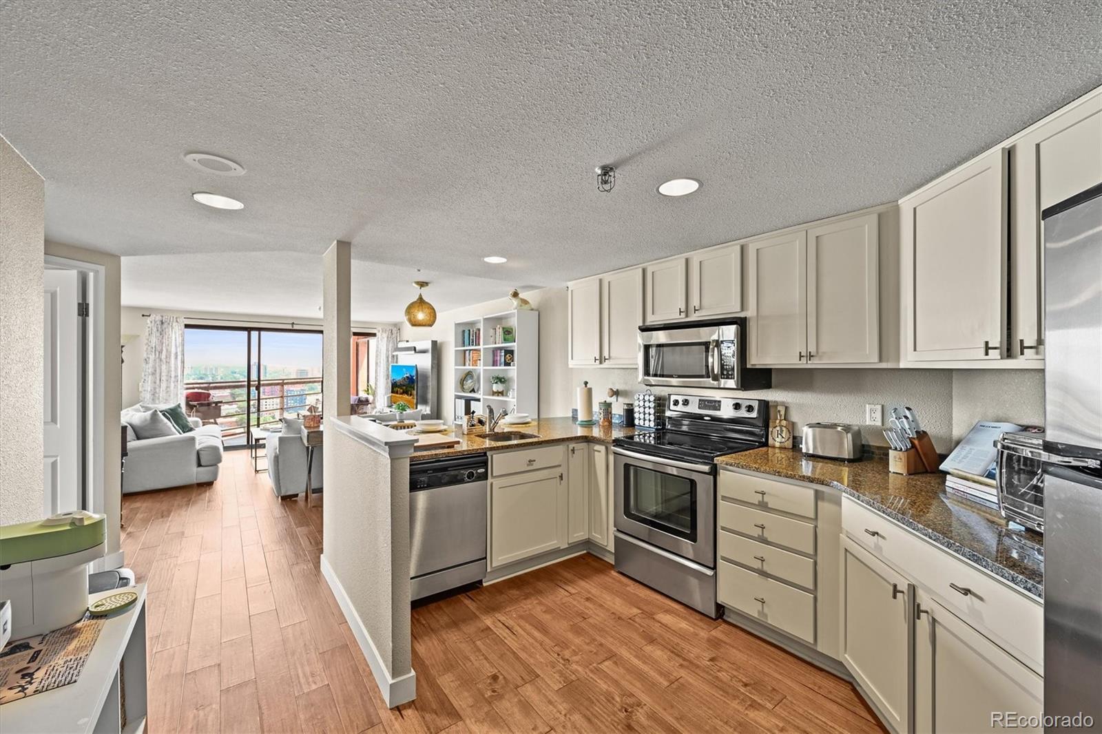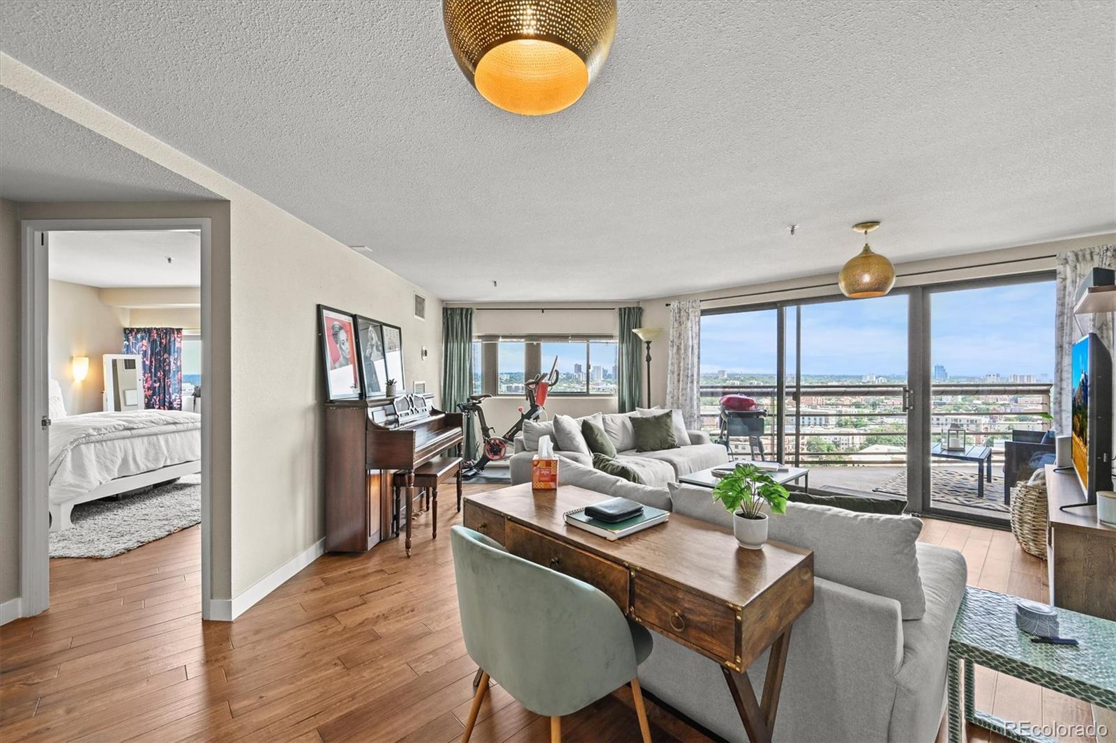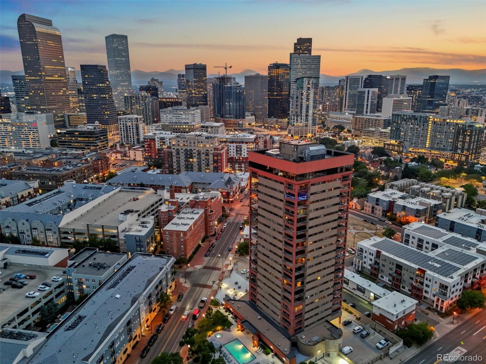 ***Seller-paid concession of $6,507, to be applied toward nine (9) months of HOA dues*** Welcome Home to this Good-Looking Turnkey High-Rise Condo in Denver! Breathtaking City Skyline & Mountain Views!! This exquisite 19th-floor residence is a rare Gem. Features include... Central Air-Conditioning, Underground Covered Parking with Two Deeded Tandem Spaces - #180 & #181 + One Additional Parking Pass + Underground Storage Unit #19. A Tasteful & Inviting Kitchen with Granite Countertops & All Stainless-Steel Appliances are included. Impressive & Sizable Bedroom with Private Full Bathroom. This unit is conveniently located by a Washer & Dryer for easy laundry access & also has potential for in unit washer/dryer installation. Walk out to your relaxing patio and have a fresh cup of coffee in the morning. Take in the stunning night views as well!! Encore Amenities include Heated Outdoor Pool, Hot Tub, private dog park with a dedicated washing station, Fitness Center, Business This unit also comes with a secured storage space. Center, Entertainment Lounge, Gift-Wrapping room, and a Mailroom. Walking distance to LoDo, Coors Field, premier dining & nightlife + More! Welcome Home to a lifestyle of Convenience & Comfort. ******Must See The Cinefly Virtual Tour******