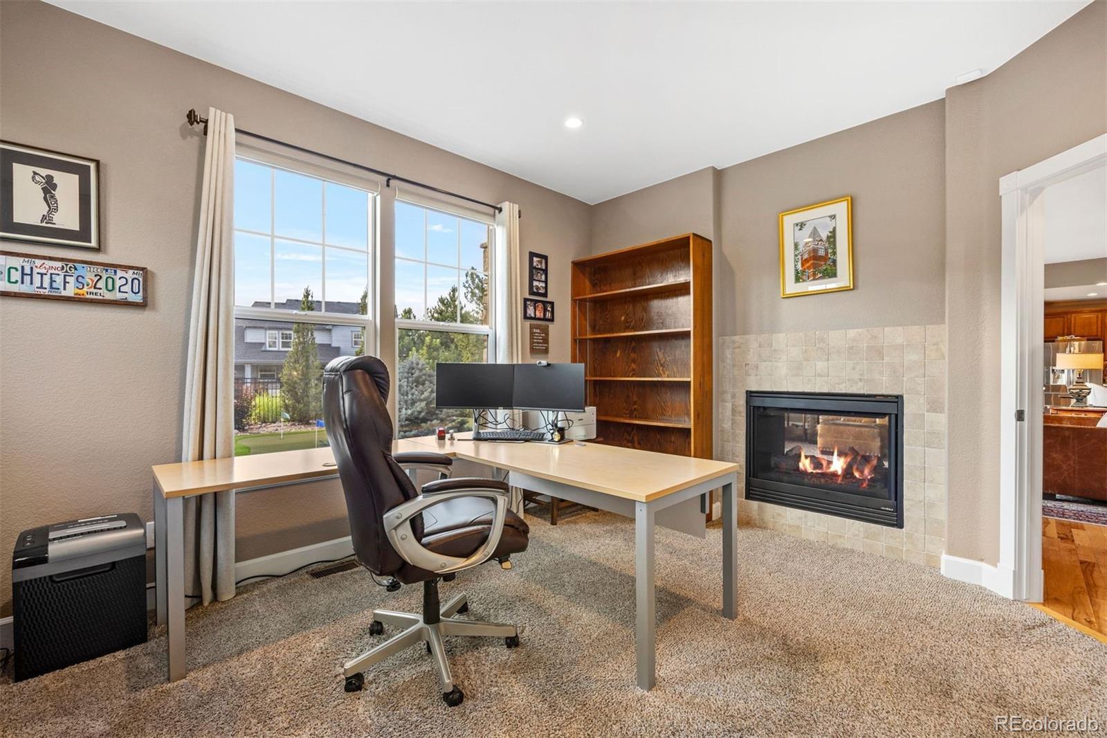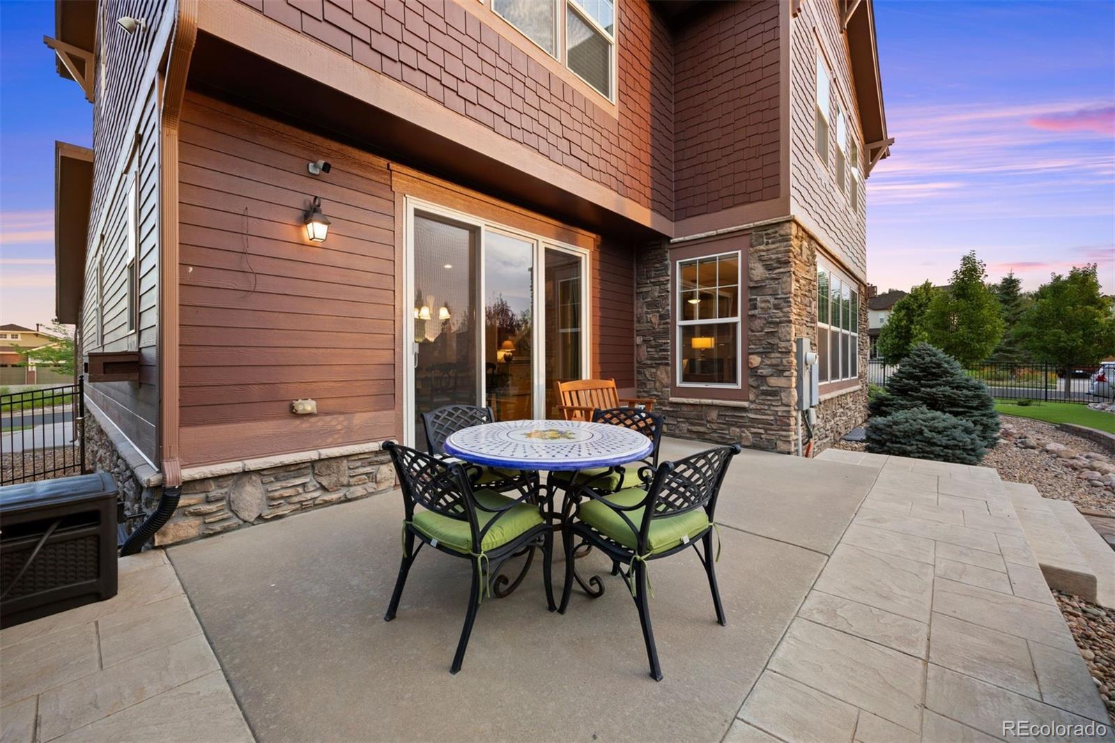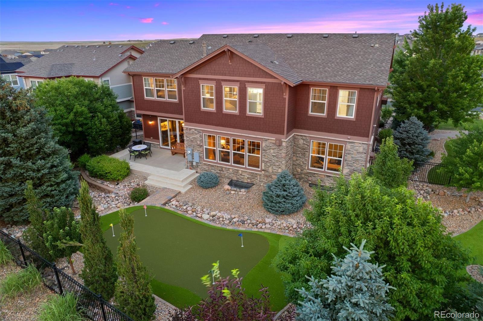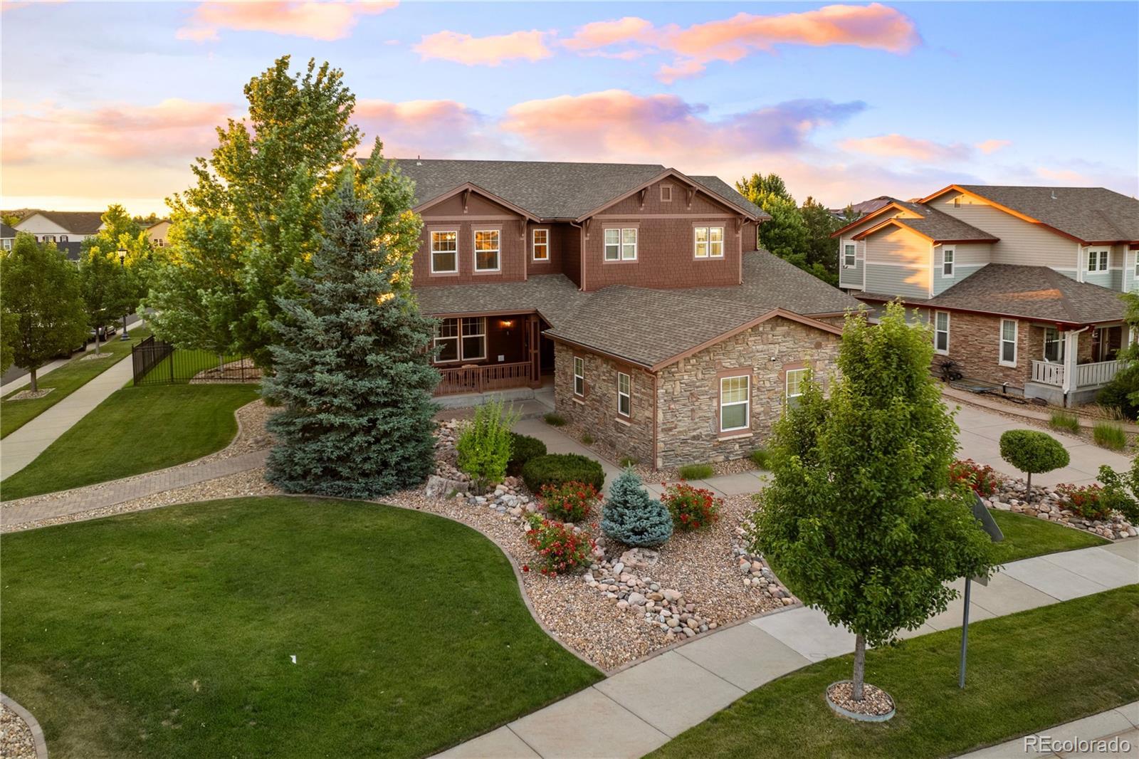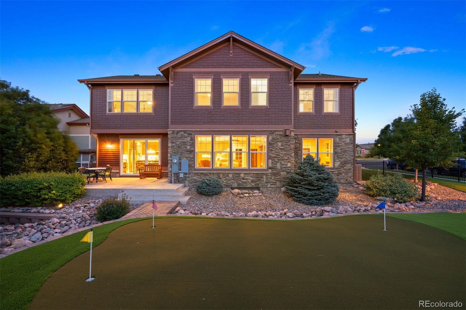 Price reduced $15,000 to $884,500! This elegant 2 story home in Blackstone Country Club is a tremendous value for this golf course community with abundant parks, trails, and amenities. The home is conveniently located on a corner lot in southeast Aurora with proximity to dining options at Southlands Mall; brand new Woodland Elementary a couple blocks away; and easy access to Denver International Airport. You will love meeting friends for dinner at the clubhouse as a social member by living in Blackstone. The pool, tennis courts, and private pickle ball courts are all included. The fitness center has been recently renovated and will save you from having to join a separate gym. Entering the home from the covered front porch you will notice the exceptional landscaping and walkways surrounding the property. The foyer is welcoming, and a charming living room is a great place to meet guests and chat by the fireplace. The great room is so expansive that you have plenty of space for a sectional couch and TV viewing. The gourmet kitchen with eat-in breakfast area has all the things you would want to prepare some epic meals, i.e double ovens, gas range, stainless appliances, granite counters, and tile backsplash. This kitchen area also flows nicely to the backyard patio with putting green and exceptional landscape lighting the trees. Upstairs you will find a glamorous primary suite with 3 extra bedrooms. In the finished basement you can play a game of pool in the rec room and settle in for movie night in the home theatre. There is also a wet bar and an additional bedroom & full bathroom in the basement. This home has so many extras including - main floor office, custom blinds and window coverings, wood flooring, oversized 3 car garage, 3 fireplaces, his/her walk-in closets, and more.
