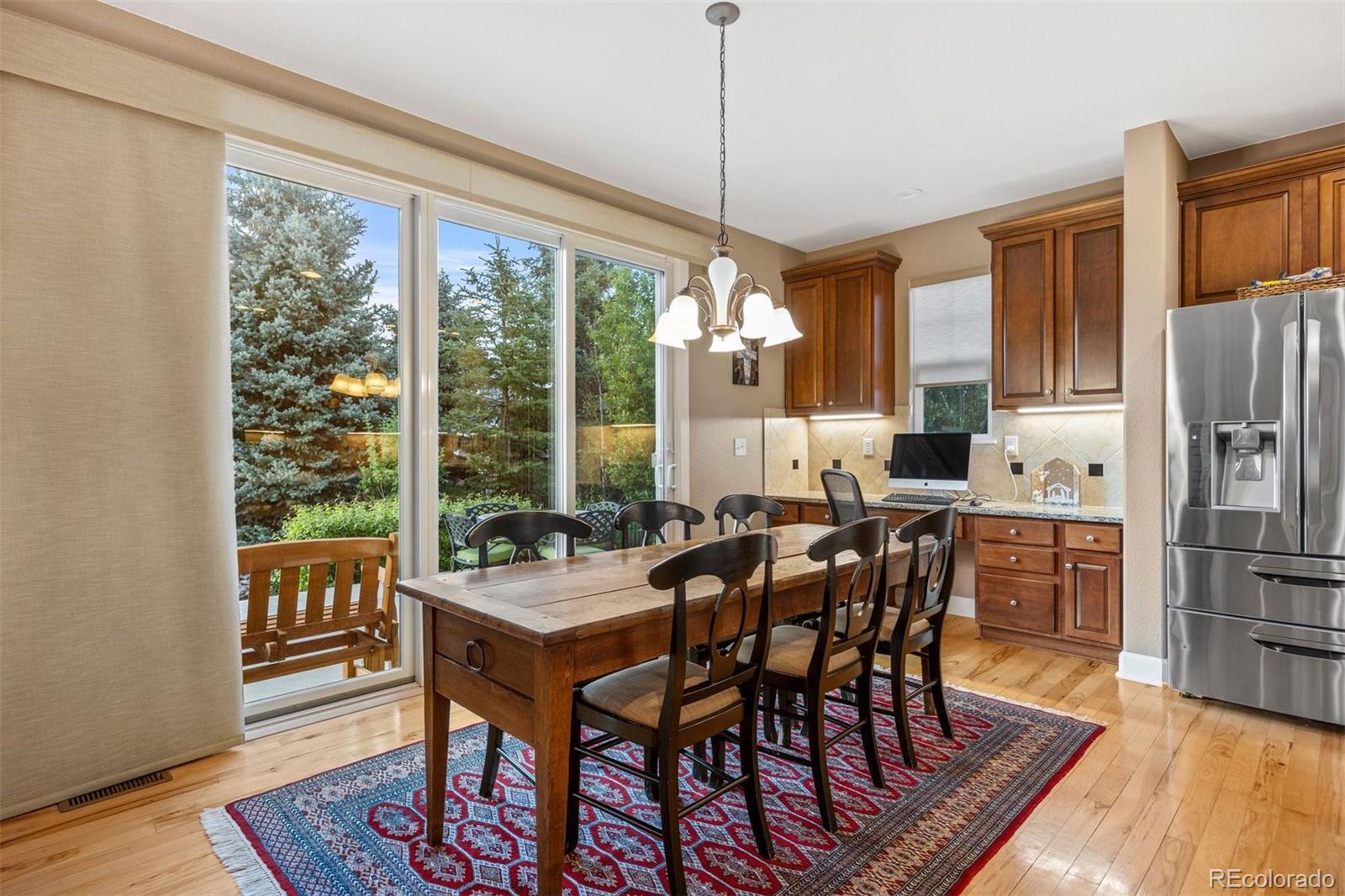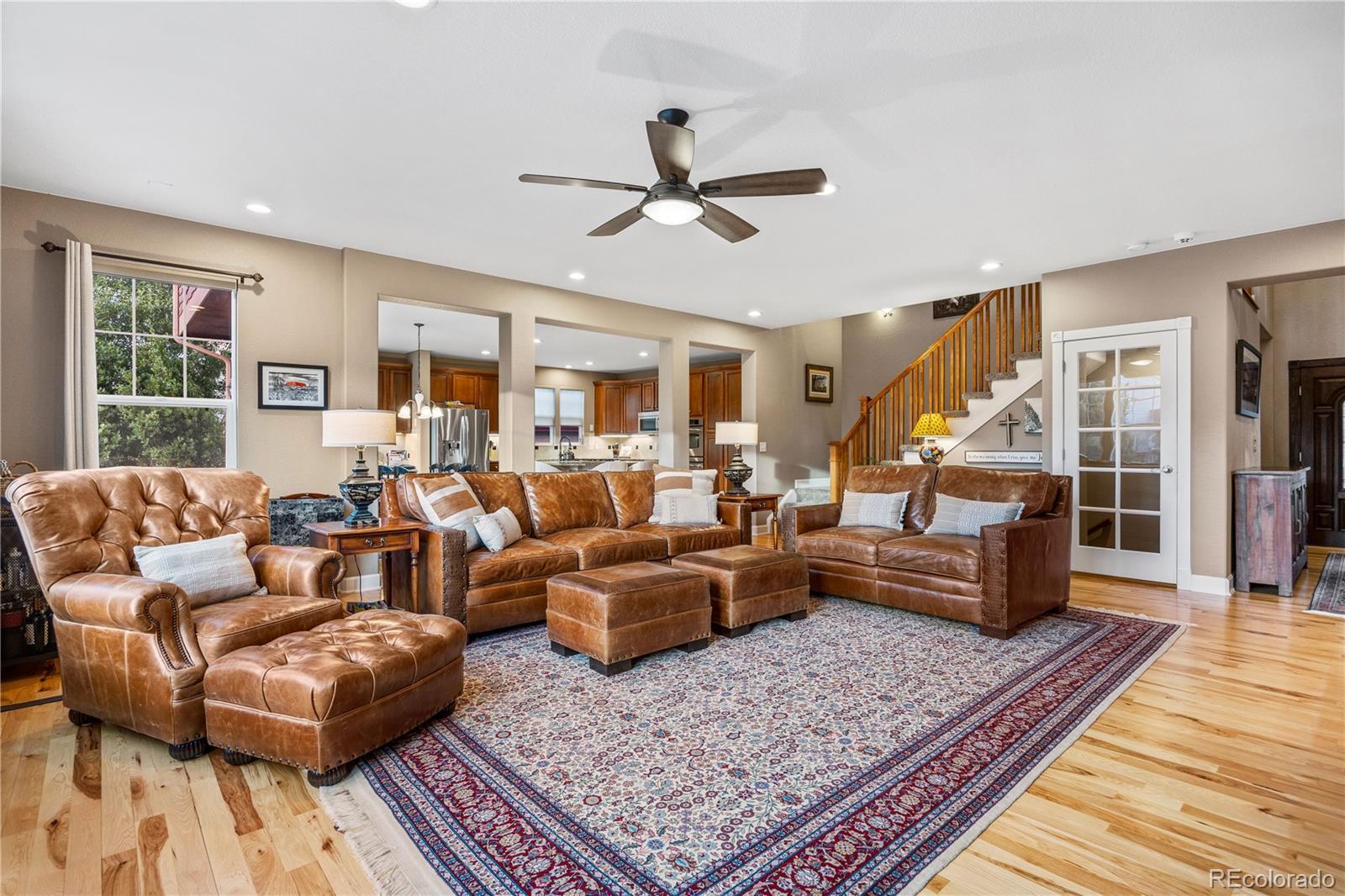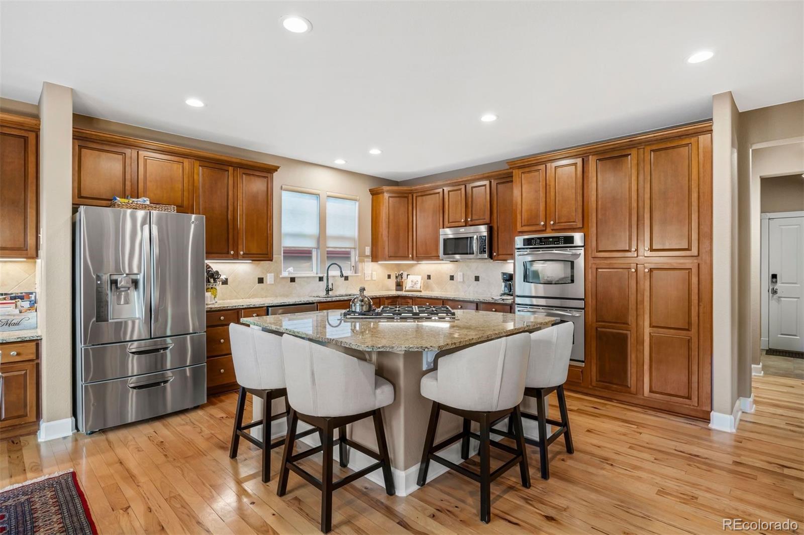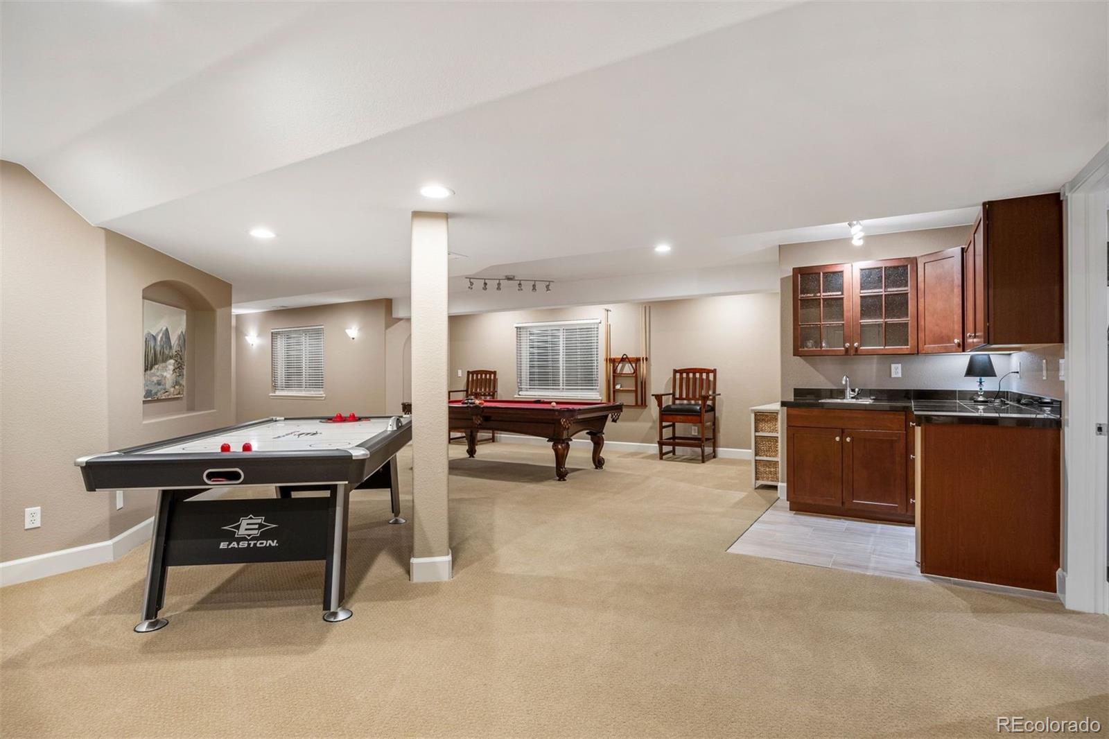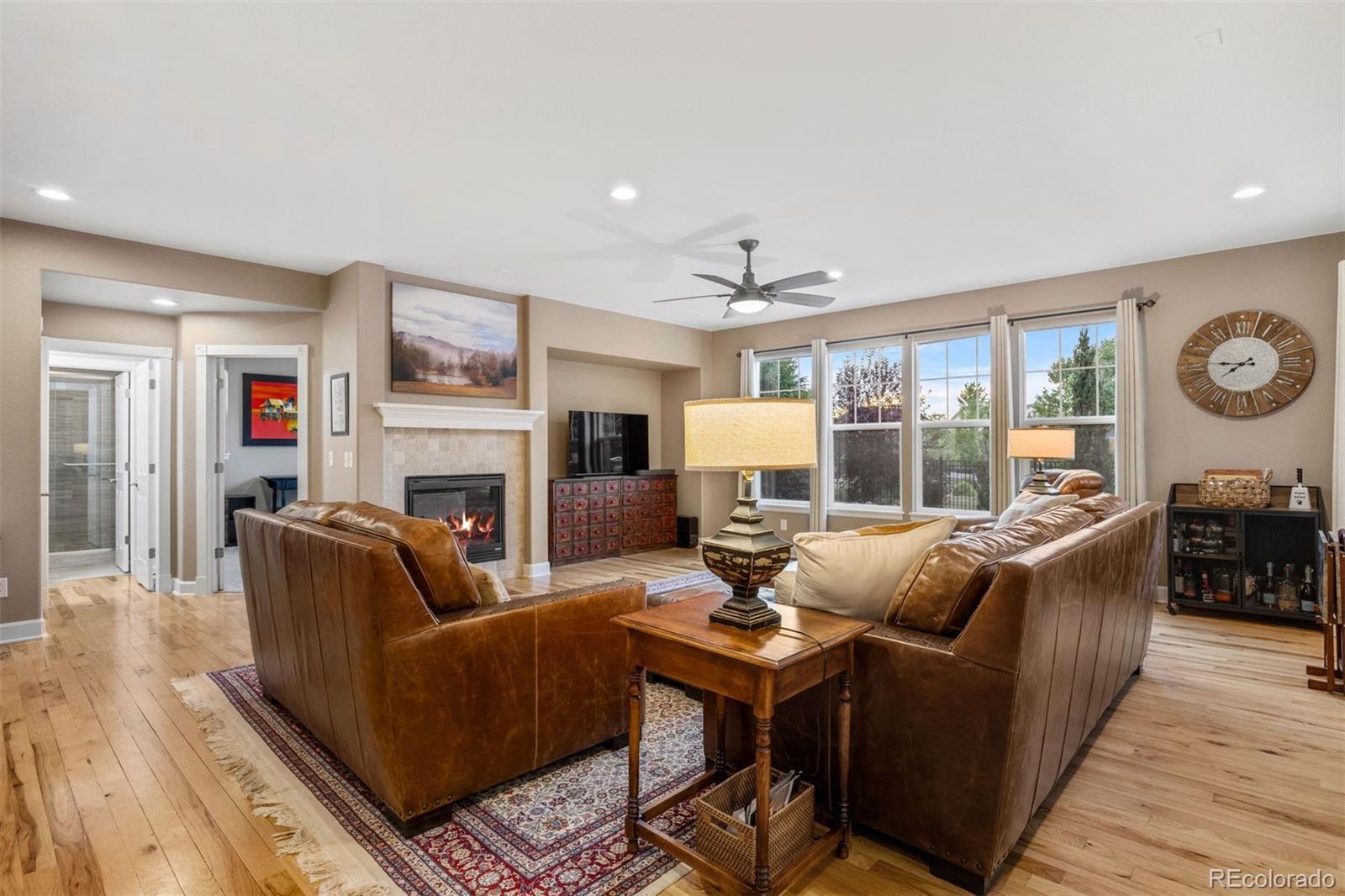 Price reduced $15,000 to $884,500! This elegant 2 story home in Blackstone Country Club is a tremendous value for this golf course community with abundant parks, trails, and amenities. The home is conveniently located on a corner lot in southeast Aurora with proximity to dining options at Southlands Mall; brand new Woodland Elementary a couple blocks away; and easy access to Denver International Airport. You will love meeting friends for dinner at the clubhouse as a social member by living in Blackstone. The pool, tennis courts, and private pickle ball courts are all included. The fitness center has been recently renovated and will save you from having to join a separate gym. Entering the home from the covered front porch you will notice the exceptional landscaping and walkways surrounding the property. The foyer is welcoming, and a charming living room is a great place to meet guests and chat by the fireplace. The great room is so expansive that you have plenty of space for a sectional couch and TV viewing. The gourmet kitchen with eat-in breakfast area has all the things you would want to prepare some epic meals, i.e double ovens, gas range, stainless appliances, granite counters, and tile backsplash. This kitchen area also flows nicely to the backyard patio with putting green and exceptional landscape lighting the trees. Upstairs you will find a glamorous primary suite with 3 extra bedrooms. In the finished basement you can play a game of pool in the rec room and settle in for movie night in the home theatre. There is also a wet bar and an additional bedroom & full bathroom in the basement. This home has so many extras including - main floor office, custom blinds and window coverings, wood flooring, oversized 3 car garage, 3 fireplaces, his/her walk-in closets, and more.
