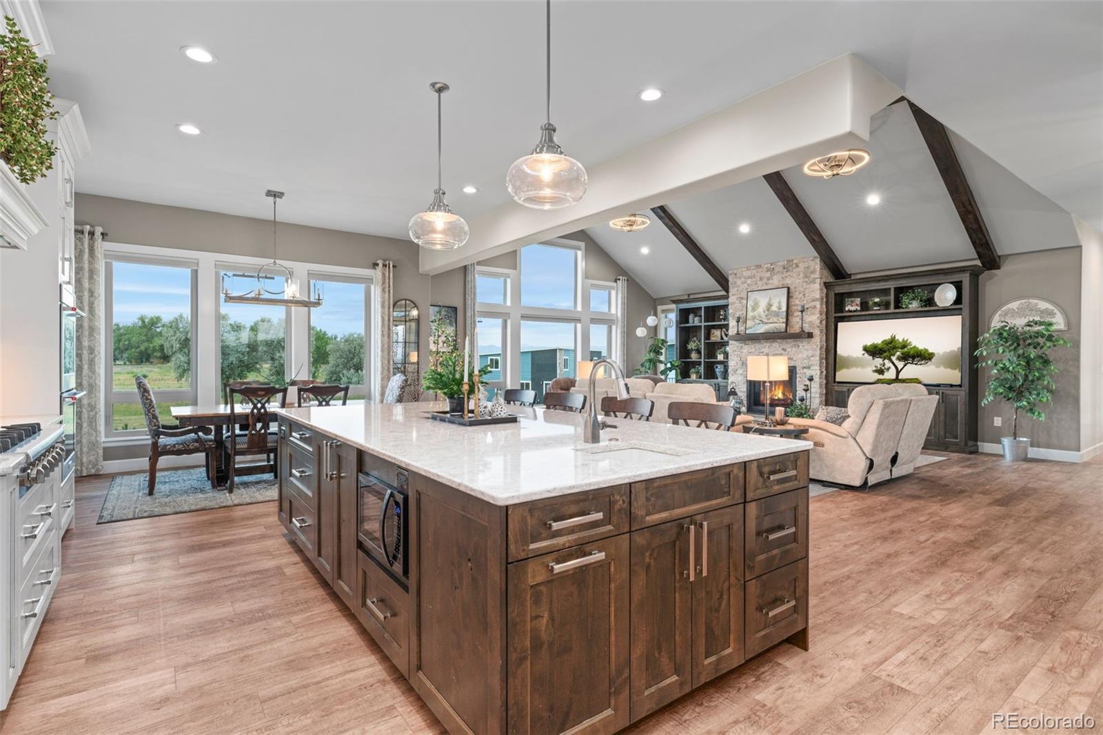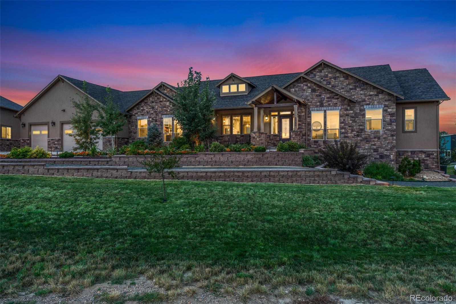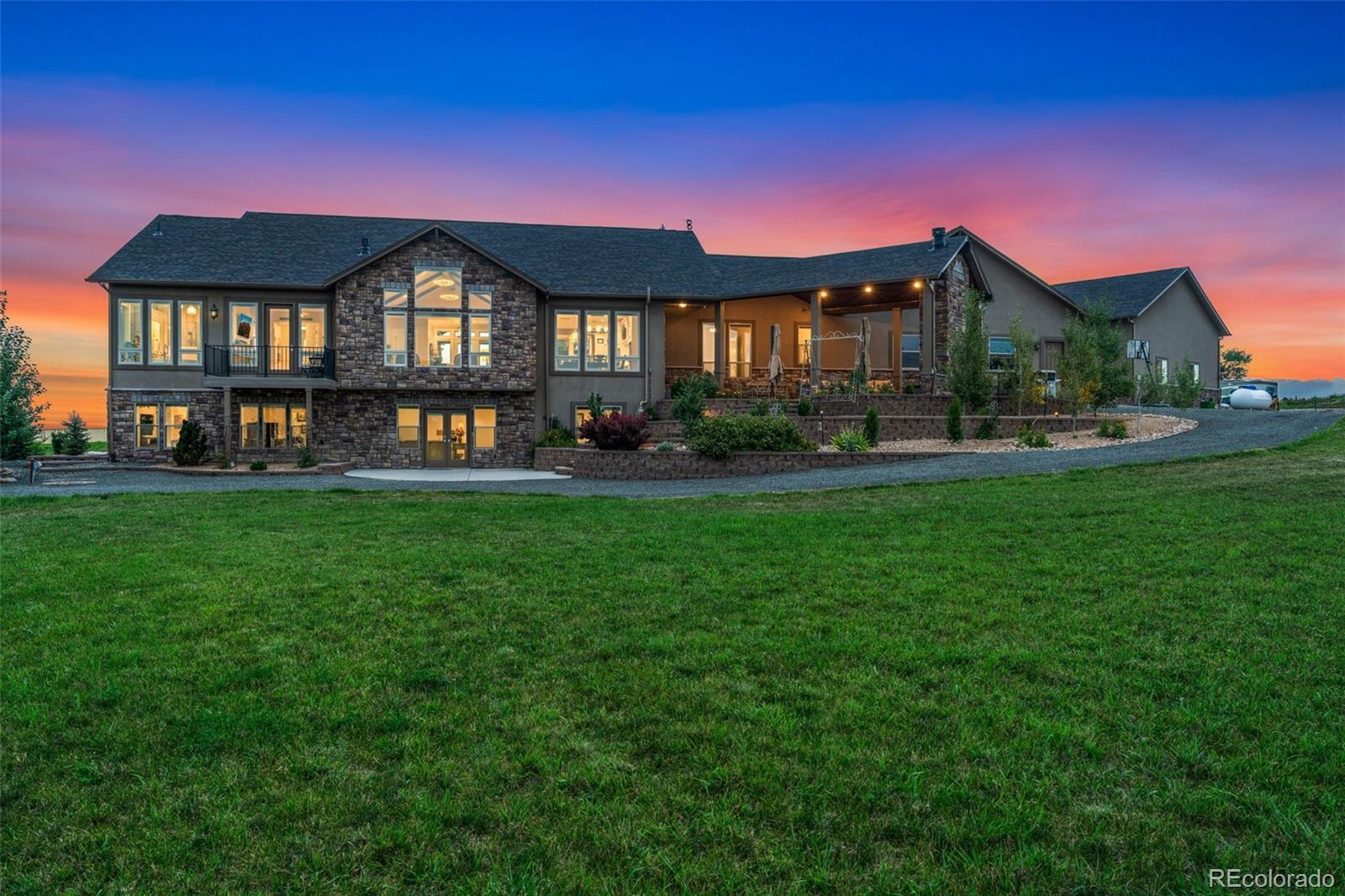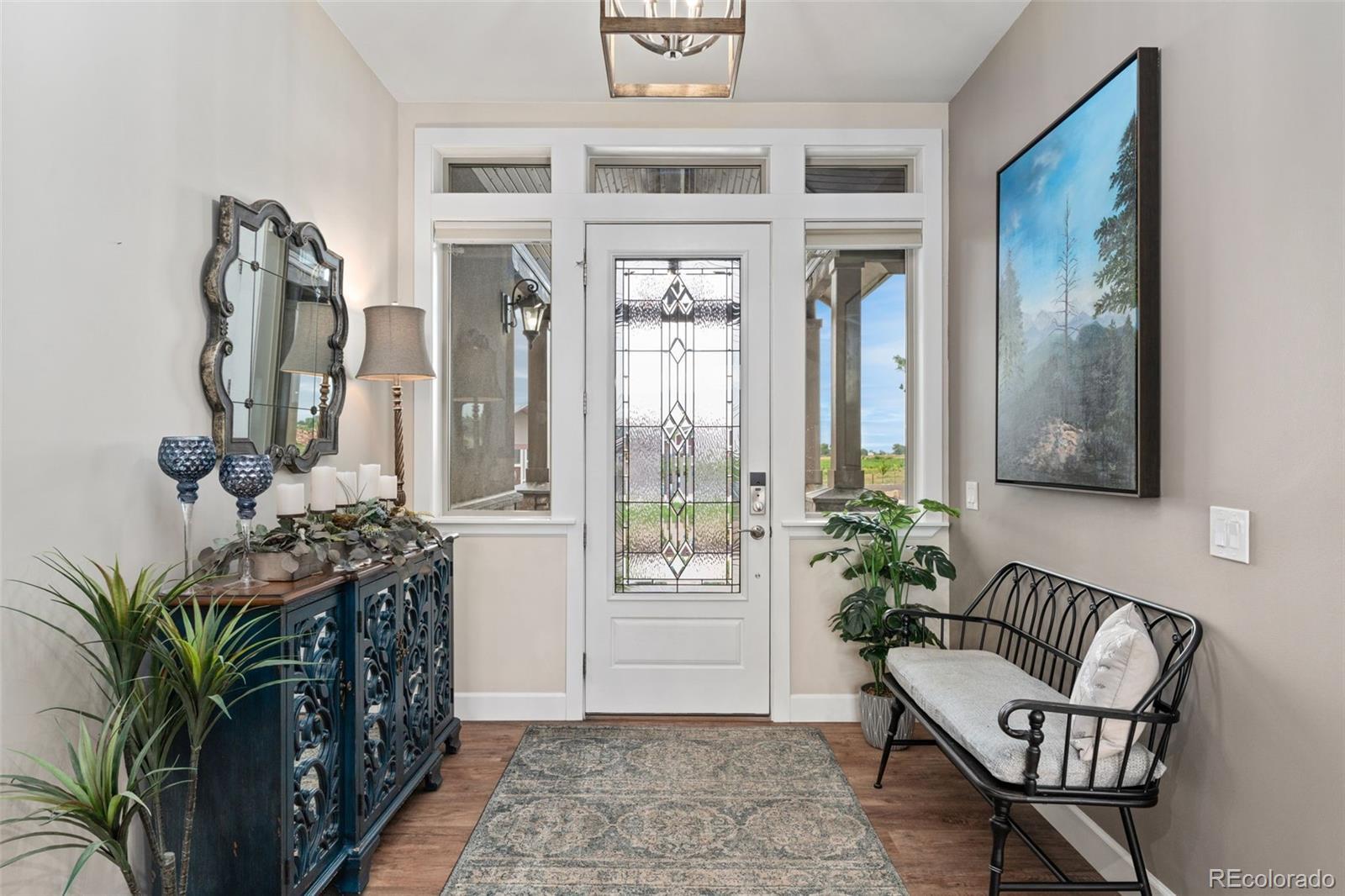 Experience luxury, space, and stunning mountain views in this breathtaking 6-bedroom, 5-bath custom ranch on 3.1 acres! Just 8.5 miles from Longmont, 18 from Boulder, 31 from DIA, and with quick I-25 access, the property is surrounded by farms and a permanent conservation easement, offering peace and privacy. The gourmet kitchen features custom cabinetry, quartz counters, abundant storage, and opens to a vaulted, wood-beamed great room with a cozy fireplace and walls of windows showcasing the views. The primary suite includes a private fireplace, deck, and spa-like bath with freestanding tub, dual sinks, and large shower. A dedicated main-level office and guest suite with en suite bath provide convenience and comfort. The spacious walk-out basement offers a wet bar, family room with fireplace, and three versatile bedrooms for guests, hobbies, or fitness. A large bedroom with en suite bath is ideal for multi-generational living. Car enthusiasts and RV owners will love the insulated 6-car tandem garage with hot and cold water spigot located in the attached garage ideal for washing vehicles, cleaning equipment, or other utility needs. RV and toy owners will appreciate the massive, insulated RV garage with 13-ft doors. This southwest-facing walkout home is built on concrete piers with steel beams and insulated concrete forms. It has a whole-house recirculation system that provides near-instant hot water to every sink, tub, and shower. You can be confident with the new Class 4 impact-resistant roof and transferable warranty. The professionally designed Xeriscape features native grasses and plants with efficient drip irrigation, highlighted by LED landscape lighting that sets the mood for enjoying the covered patio and outdoor fireplace—perfect for Colorado evenings. Each floor features its own dedicated furnace and A/C unit for efficient, customizable climate control.