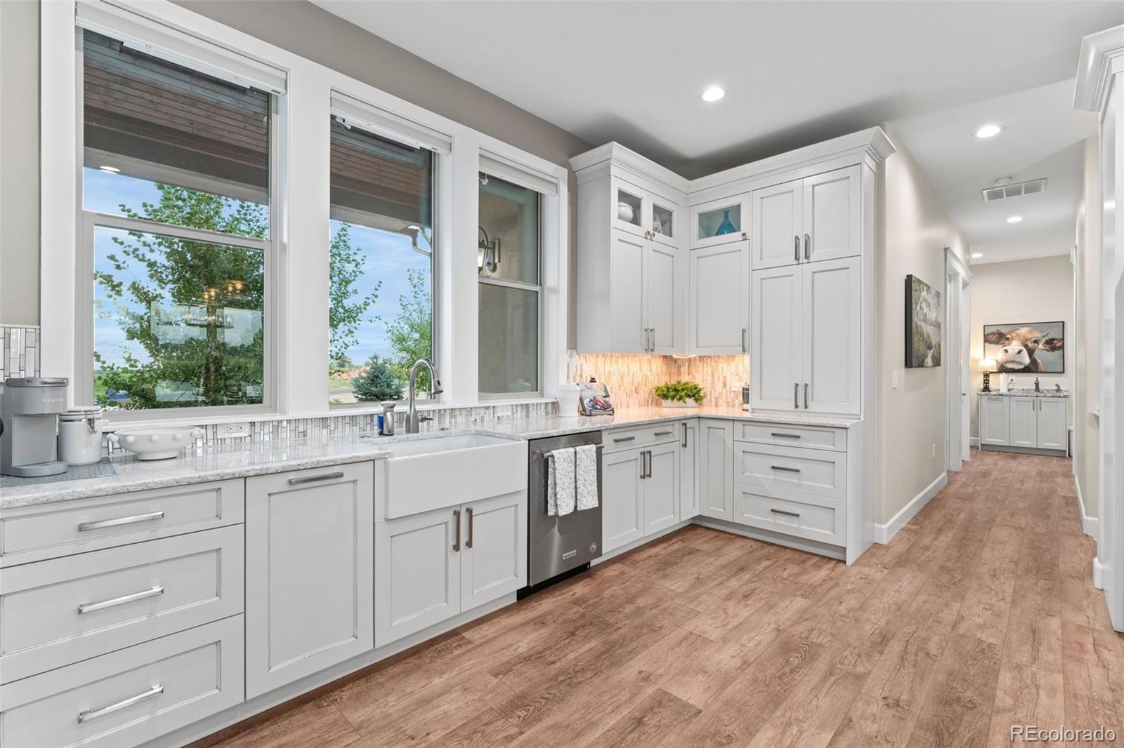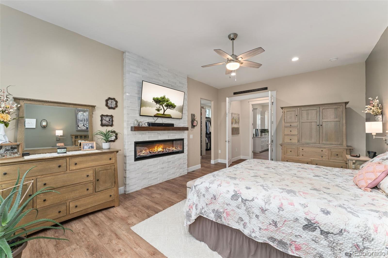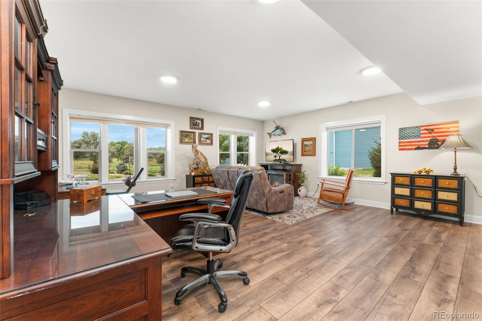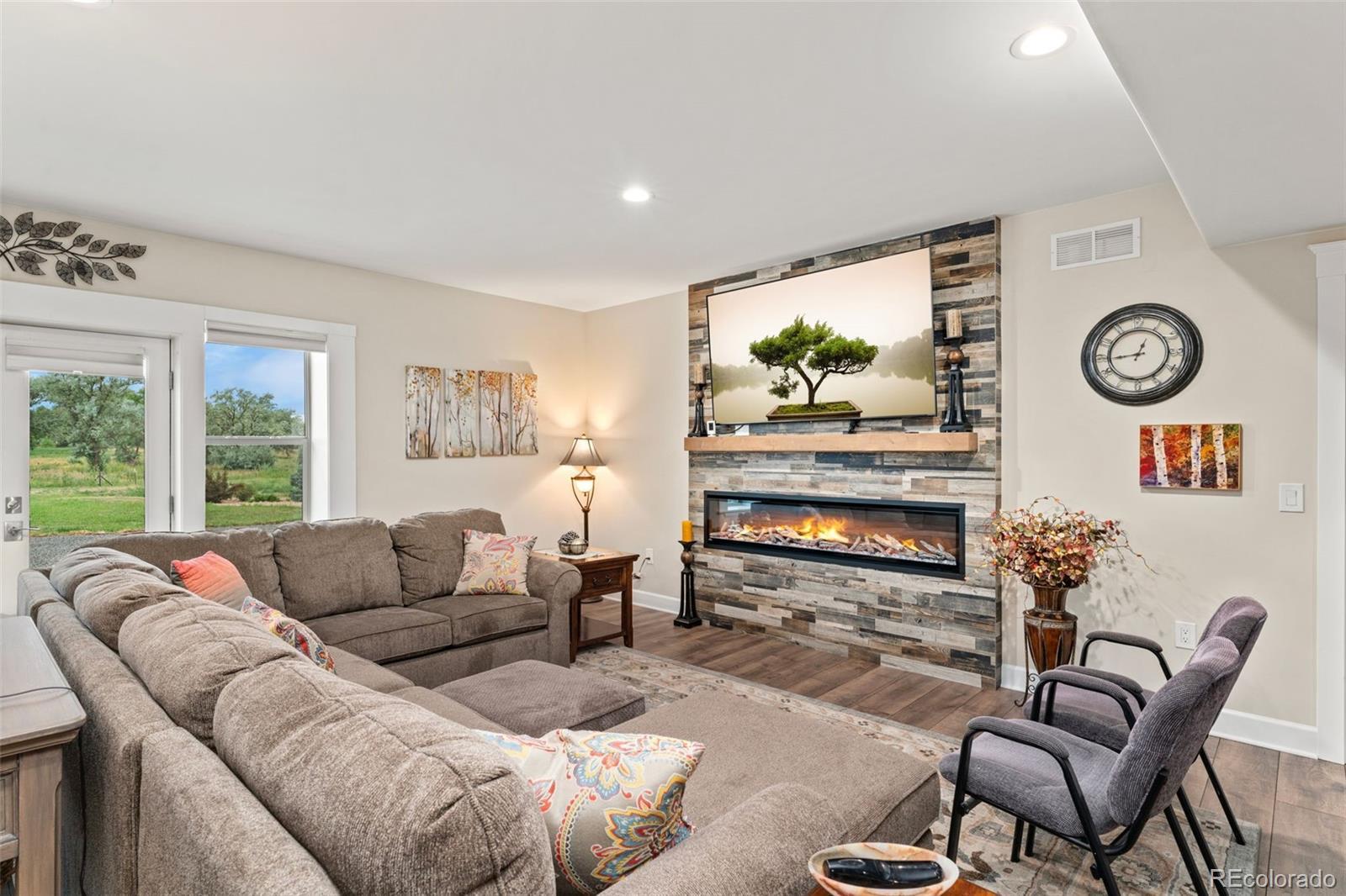 Experience luxury, space, and stunning mountain views in this breathtaking 6-bedroom, 5-bath custom ranch on 3.1 acres! Just 8.5 miles from Longmont, 18 from Boulder, 31 from DIA, and with quick I-25 access, the property is surrounded by farms and a permanent conservation easement, offering peace and privacy. The gourmet kitchen features custom cabinetry, quartz counters, abundant storage, and opens to a vaulted, wood-beamed great room with a cozy fireplace and walls of windows showcasing the views. The primary suite includes a private fireplace, deck, and spa-like bath with freestanding tub, dual sinks, and large shower. A dedicated main-level office and guest suite with en suite bath provide convenience and comfort. The spacious walk-out basement offers a wet bar, family room with fireplace, and three versatile bedrooms for guests, hobbies, or fitness. A large bedroom with en suite bath is ideal for multi-generational living. Car enthusiasts and RV owners will love the insulated 6-car tandem garage with hot and cold water spigot located in the attached garage ideal for washing vehicles, cleaning equipment, or other utility needs. RV and toy owners will appreciate the massive, insulated RV garage with 13-ft doors. This southwest-facing walkout home is built on concrete piers with steel beams and insulated concrete forms. It has a whole-house recirculation system that provides near-instant hot water to every sink, tub, and shower. You can be confident with the new Class 4 impact-resistant roof and transferable warranty. The professionally designed Xeriscape features native grasses and plants with efficient drip irrigation, highlighted by LED landscape lighting that sets the mood for enjoying the covered patio and outdoor fireplace—perfect for Colorado evenings. Each floor features its own dedicated furnace and A/C unit for efficient, customizable climate control.