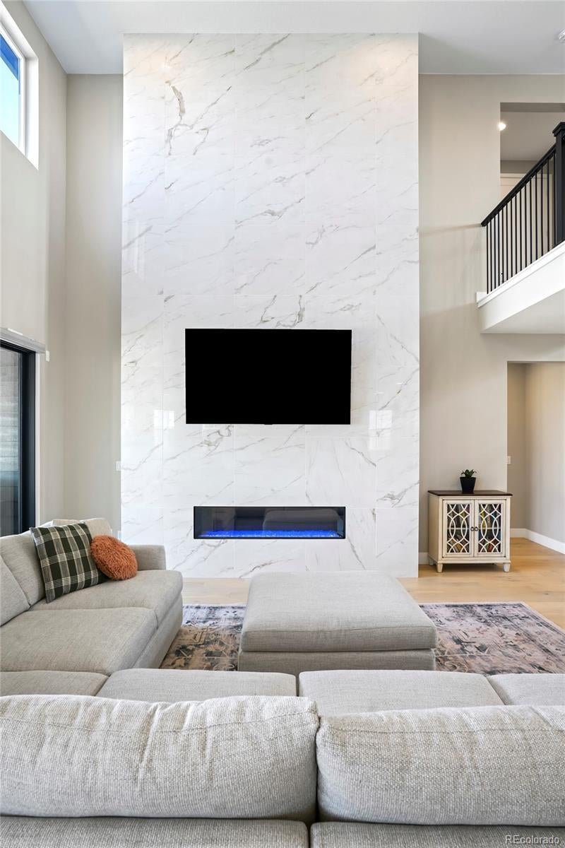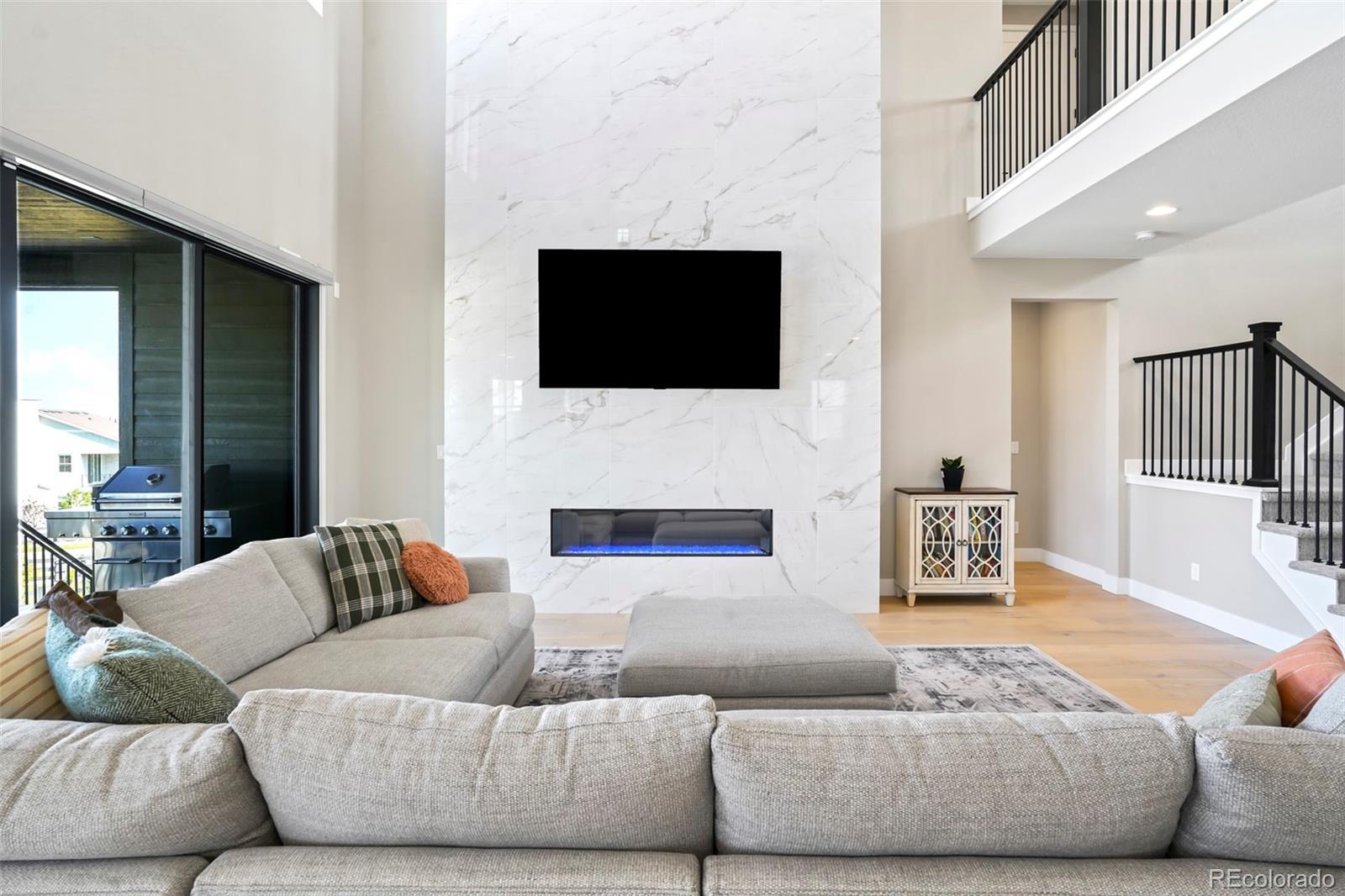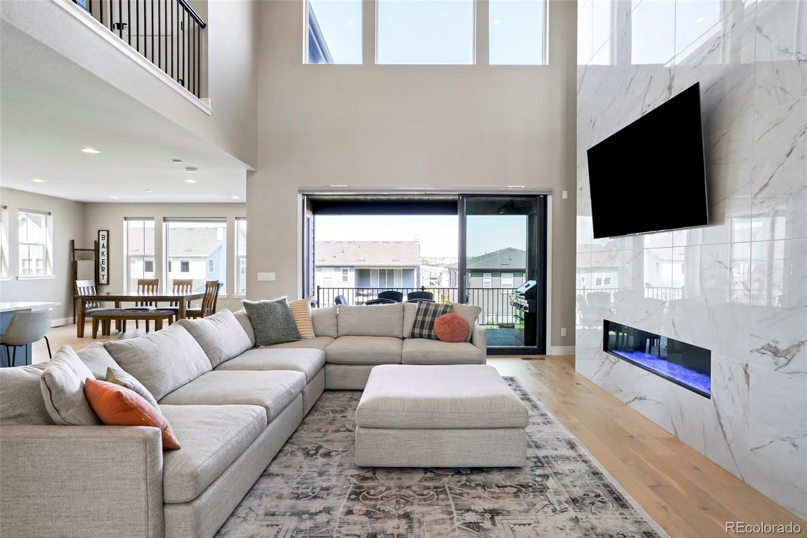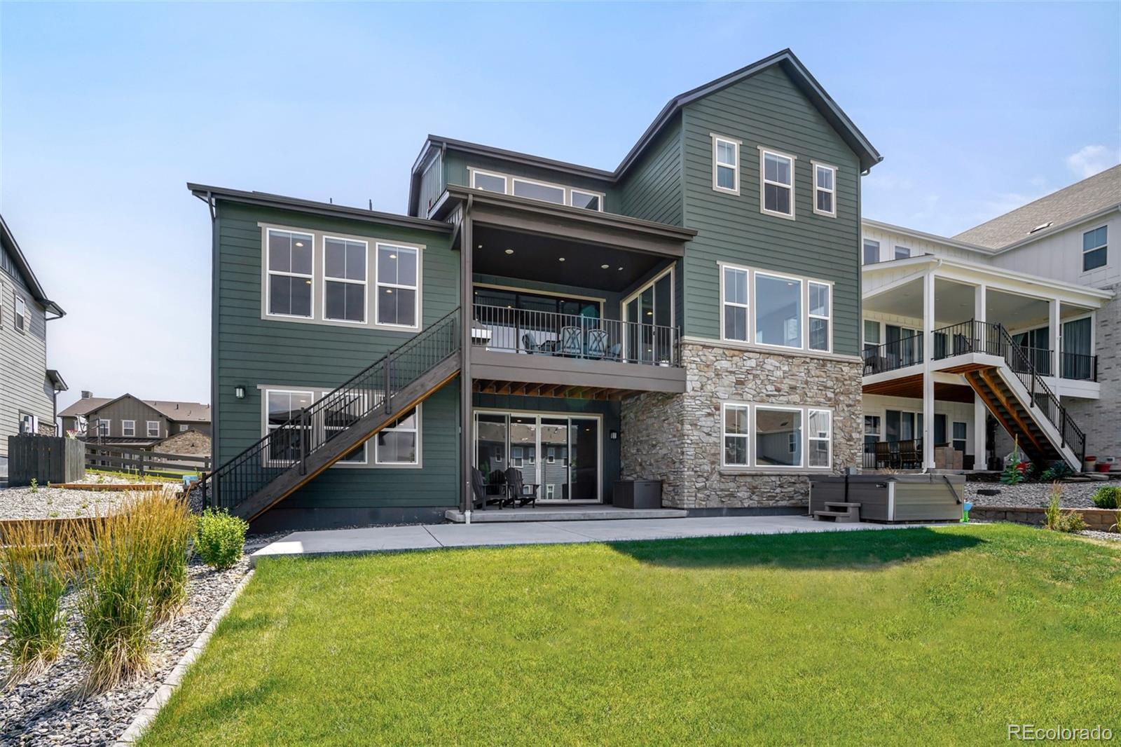 Enter a world where sophistication meets comfort. Lofty ceilings and an open floor plan with a floor-to-ceiling fireplace create a striking atmosphere perfect for hosting or simply unwinding. The gourmet kitchen with a vast center island is ideal for both daily life and grand entertaining. Seamlessly connect to nature on the covered balcony, where expansive glass doors bring the outdoors in. The home offers a private retreat for everyone. The luxurious primary suite is a true spa-like escape, while the upgraded walkout basement with over $150,000 in enhancements is an entertainer's dream, featuring a full wet bar, beverage fridge, and ice maker. Outside, find your own paradise with a hot tub and a landscaped patio. With a two-car attached garage and a one-car detached garage, storage is abundant. Conveniently located with easy access to I-25, the Denver Tech Center, and DIA, this home offers a lifestyle that perfectly balances comfort, elegance, and everyday convenience.
