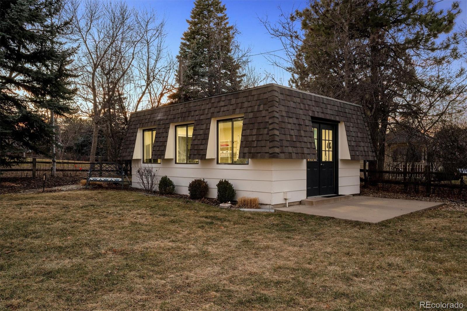 Tucked in a nearly one-acre corner lot with direct neighborhood access to the High Line Canal, 25 Brookside Drive offers rare privacy and space in one of Greenwood Village’s most established and sought-after settings. Mature trees, expansive grounds, and over 5,100 square feet of thoughtfully updated living create a property that lives as beautifully as it entertains. The home spans 5,126 square feet with six bedrooms and four baths, designed for both everyday comfort and effortless gatherings. The main level flows seamlessly to multiple outdoor living areas, including a covered patio that extends the home year-round and a secondary patio complete with built-in grill and fire pit—perfect for the Colorado lifestyle. Upstairs, four bedrooms offer a traditional and functional layout, highlighted by a spacious and private primary suite. The finished basement adds exceptional flexibility with two additional bedrooms, a full bath, and generous living space—ideal for a nanny suite, multigenerational living, long-term guests, or a private retreat. A standout feature rarely found in the neighborhood, the separate 320 square foot heated outbuilding provides year-round versatility as a fitness studio, art space, executive home office, or quiet escape. With neighborhood Highline Canal trail access and located within the award-winning Cherry Creek School District, including Cherry Hills Village Elementary, this property delivers the space, flexibility, and lifestyle that defines Greenwood Village living.