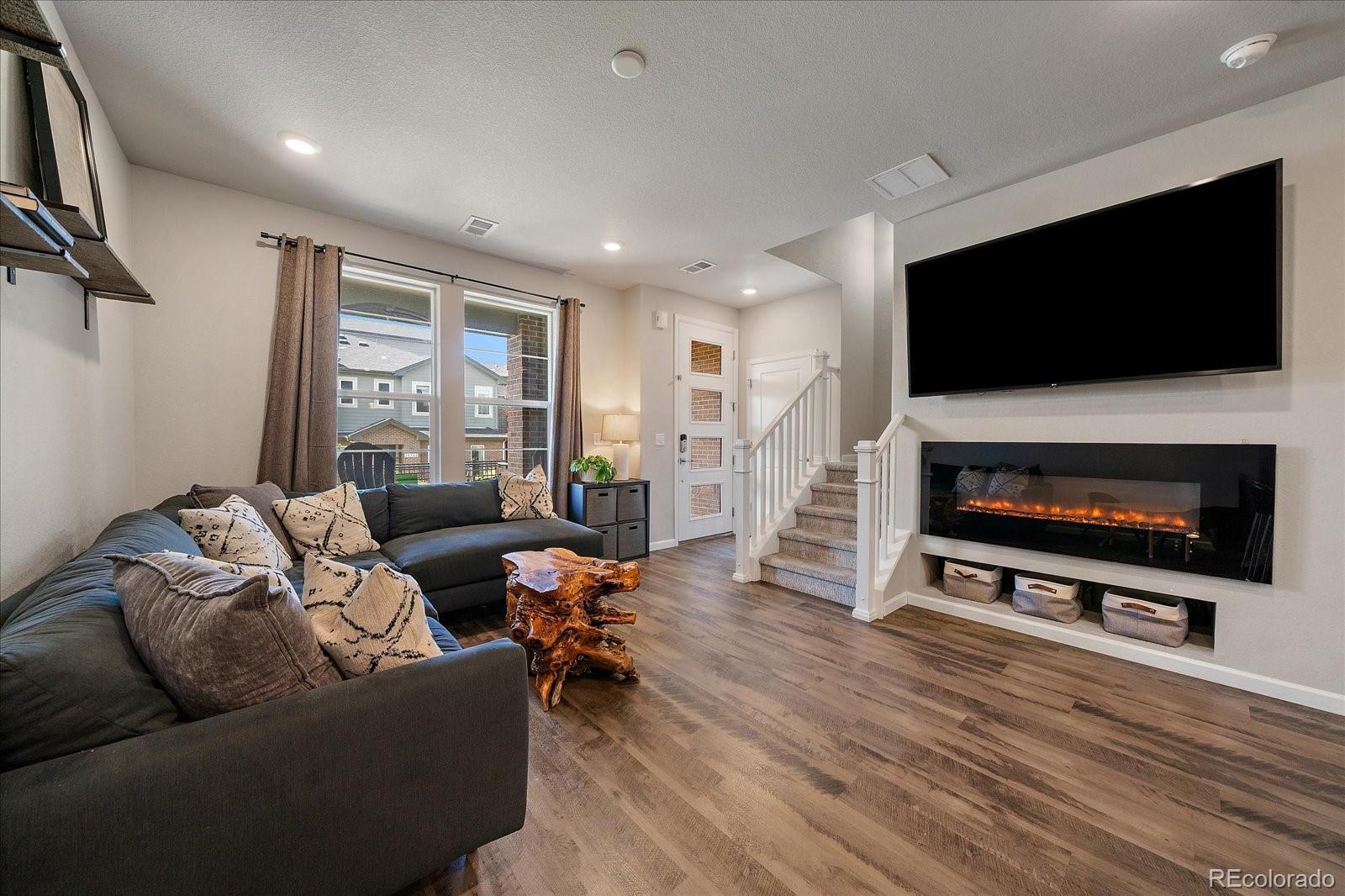 Don’t miss this “like-new” luxury townhome in highly sought-after Belleview Place! This stylish 2-story offers a bright, open floor plan perfect for modern living. The spacious family room with sleek linear fireplace flows seamlessly into a true chef’s kitchen featuring stainless appliances, gas range, 42-inch white cabinetry, oversized granite island, pantry, and adjoining dining area. Upstairs you’ll find three bedrooms and two full baths, including a generous primary suite with dual closets and a spa-like 5-piece en-suite bath. An upstairs laundry with washer and dryer adds everyday convenience. Enjoy one of the best locations in the neighborhood — an oversized front patio ideal for grilling and relaxing overlooks the greenbelt and pocket park. An attached 2-car garage with overhead storage provides plenty of space for all your gear. Experience low-maintenance living with HOA-managed lawn care and snow removal. Located in the top-rated Cherry Creek School District with easy access to Cherry Creek State Reservoir, parks, trails, shopping, and dining — this home is in pristine condition and truly move-in ready! A 2/1 buydown is available with a preferred lender.