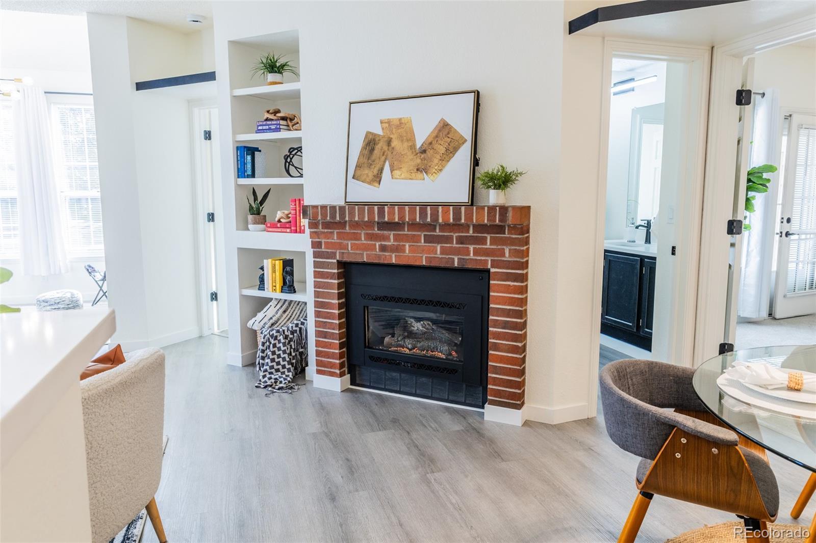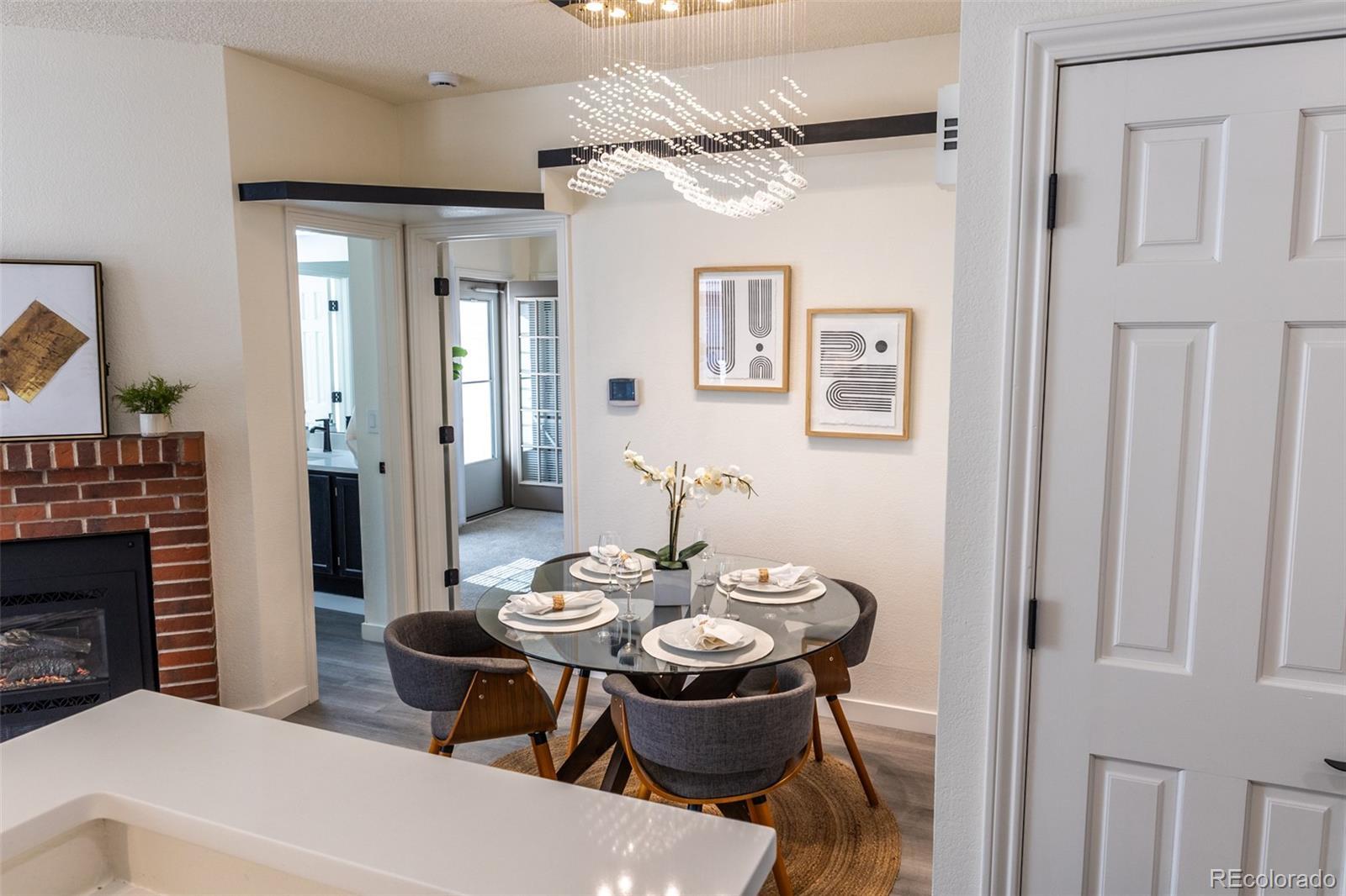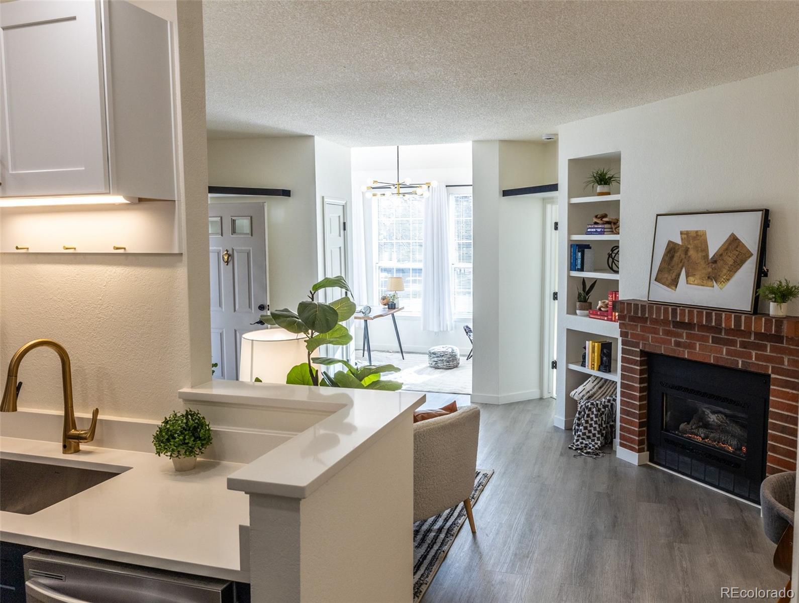 Welcome home to this beautifully updated, ground-level, end unit condo in the Steeplechase community. Thoughtful finishes, a functional layout, and a prime Littleton location make this well-cared-for home truly move-in ready, offering comfort and style with low-maintenance living. The kitchen was fully renovated in 2023 and features two-toned cabinetry with white uppers and deep blue lowers, copper-toned fixtures, ample storage, and newer appliances. New luxury vinyl plank flooring runs through the main living areas, while both bedrooms feature carpet. The spacious living room is centrally located and anchored by a gas fireplace, creating a comfortable gathering space. The primary suite offers excellent sound insulation, a walk-in shower, multiple walk-in closets, and direct access to a private patio with additional outdoor storage. In-unit laundry includes a GE washer and dryer, and both the furnace and water heater have been serviced within the past year. Additional conveniences include an attached one-car garage with storage, guest parking access, and a well-managed HOA that covers exterior maintenance, snow removal, landscaping, and common area upkeep. Community amenities include an outdoor pool, gazebo, and shared outdoor spaces. Located just steps from the South Platte River, residents enjoy easy access to an extensive trail system ideal for walking and biking, while still being close to downtown Littleton, parks, shopping, dining, and everyday amenities. A great opportunity for comfortable, connected living in a peaceful setting.