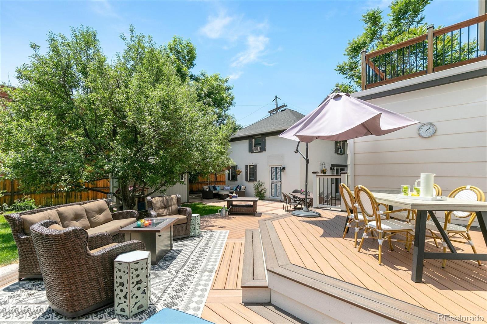 Nostalgic Crown Jewel in Highlands! 2 houses on 4 city lots in top location just blocks to Highlands Square & Tennyson! 3846 square foot 2-Story Denver Square with 5 bedrooms/3 bathrooms coupled with another 2-story fully self-contained 1092 square foot 2 bed/1 bath Carriage Home with Farmhouse flair. Over 2600 sq feet of finish in main house with tremendous public spaces including a grand foyer, original staircase, a superb great room with media and conversation space, impressive formal dining rm large enough to seat 10 with built-in hutch. Casual dining area overlooks lush backyard. Kitchen, laundry, & powder room complete the main flr. Original pocket doors, bay windows, rich wood floors throughout, front & back staircases, beautiful trim and large windows throughout. Upstairs you’ll find 4 large bedrms, a full bath, a spacious office, plentiful closet space. Center hall access to the 2nd story deck overlooking expansive grounds. Casual dining area, large enough to pair with playroom, provides everyday dining space and opens to a magnificent deck and grounds. Comfy kitchen overlooks lush backyard. Step outdoors to enjoy huge deck overlooking the manicured grounds, sunshine year round complete with veggie beds, play space, turf, dining areas and more... Main house basement features a new, beautifully crafted media room, a new 3/4 bath and plenty of storage. Carraige home includes a cute, sunny kitchen with stainless steel appliances, 2 bedrooms, and 1 full bath. Rare Find! Great value for the size of house, grounds and setting! Note, main house is in need of a kitchen renovation to include a floor plan adjustment, and a primary suite on 2nd story as well... There is no garage... house lives nicely.