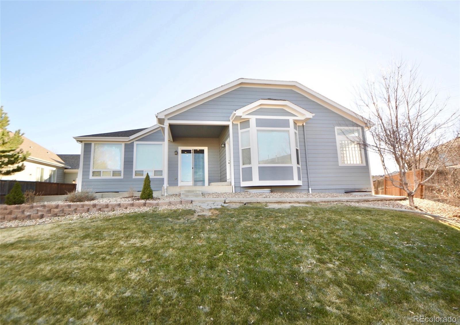 Welcome to your beautifully crafted ranch-style home designed for comfort, style, and effortless living, set on a generous 0.27-acre lot. Rich Brazilian Cherry hardwood floors flow seamlessly through the kitchen, breakfast nook, dining room, and hallways, adding warmth and elegance throughout. The formal dining room boasts a striking stepped ceiling, creating a perfect backdrop for entertaining and special gatherings, while a conveniently located powder bath serves guests with ease. The chef-inspired kitchen impresses with JennAir double ovens, cider-stained hickory cabinetry, tropical brown granite countertops for abundant storage and prep space. The breakfast nook features generous built-in cabinetry, ideal for additional storage. Wide 36-inch doorways enhance the open, accessible layout. The primary suite is a private retreat, with double entry doors boasting a transom window, bay windows, direct access to the covered back patio, and a grand five-piece en suite bath. Two additional bedrooms share a full bath, complemented by a home office and nearby large laundry room with a utility sink, generous counter space, and abundant cabinetry. Down the beautiful, wide, two part staircase, a rare 2,858 sq ft unfinished basement offers endless possibilities for expansion—whether a recreation room, home theater, gym, or extra bedrooms. Comfort has been enhanced with a larger bedroom-side AC unit installed in 2017 and whole-house humidifiers added on both systems. Step outside to enjoy exceptional outdoor living with a covered patio, oversized concrete patio, expansive backyard, and a wraparound concrete walkway leading to the front driveway. Enjoy a beautiful neighborhood park with rock wall, basketball courts and a large athletic field for endless fun. You'll be spoiled this Summer with the pool and clubhouse just a short walk around the corner. With thoughtful design, quality finishes, and exceptional flow, this ranch is truly a place you’ll love to call home.