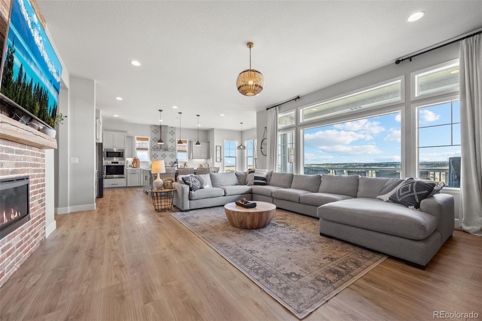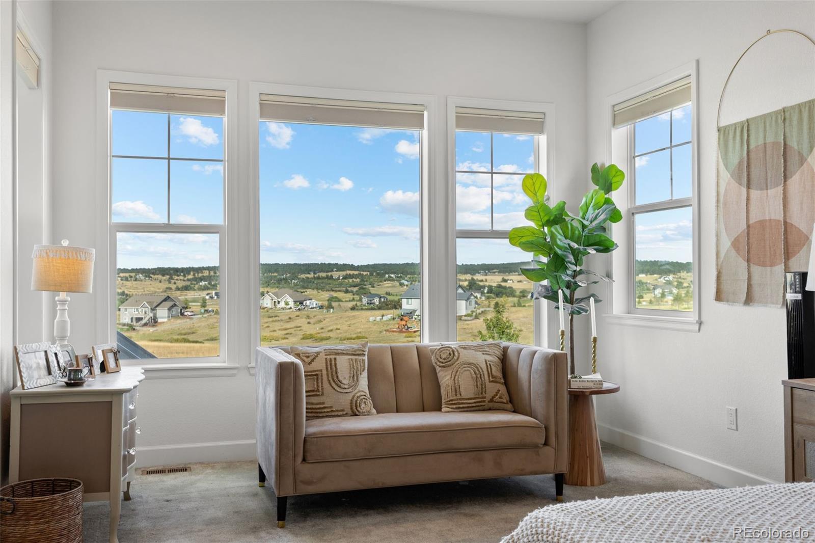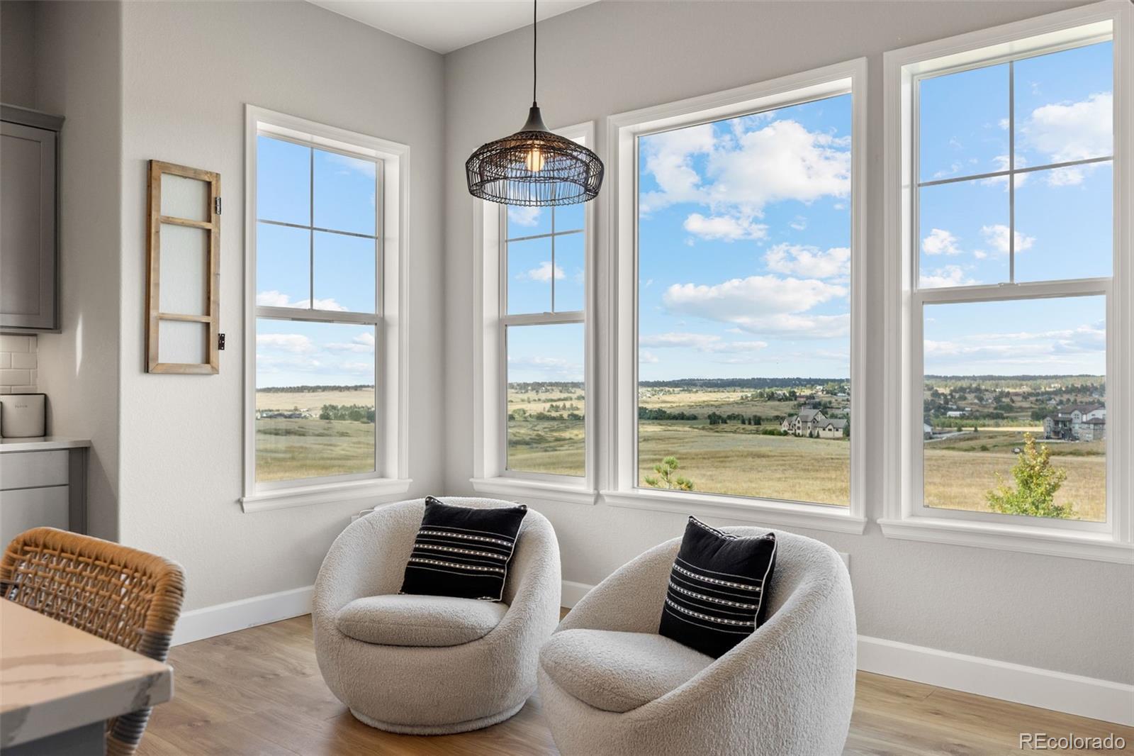 Welcome to 9141 Red Primrose Street, a private Colorado retreat set on one of the few 8-acre estates in the coveted Two Bridges community. Built in 2022, this home was designed for those who will never long for space, comfort, or amenities—blending breathtaking views, refined finishes, and a lifestyle rooted in both privacy and convenience. From the moment you arrive, the setting delivers everything buyers seek in Colorado living: panoramic mountain views, spectacular sunsets, and room to live expansively inside and out. Inside, soaring ceilings and walls of windows frame the Front Range, filling the open-concept great room with natural light. The kitchen is a true centerpiece, featuring an oversized eat-at island, quartz counters, custom cabinetry, dual ovens, and a butler’s pantry with a beverage fridge. Gather in the formal dining room overlooking the mountains, the casual breakfast nook, or step directly out to the deck for alfresco dining. A dedicated home office, private study, and main-level laundry provide ease and versatility for modern living. The main-level primary suite is a private sanctuary with a spa-inspired bath, dual vanities, soaking tub, oversized shower, fireplace, accent wall, and private sitting area—all with direct walk-out access to the deck. Downstairs, the walk-out lower level is built for entertaining and relaxation. Featuring a large rec room with center-slide glass doors open to the patio, complemented by a full wet bar, home theater, game area, and fitness room complete with a sauna. All of this comes together in a location that balances rural privacy with suburban access. Two Bridges is surrounded by top-rated schools, premier golf clubs, equestrian venues, and open space. Downtown Parker and Castle Rock are minutes away, while the Denver Tech Center and DIA are within easy reach. This is more than a home—it’s a complete lifestyle on eight private acres, where every detail inspires a life well-lived.