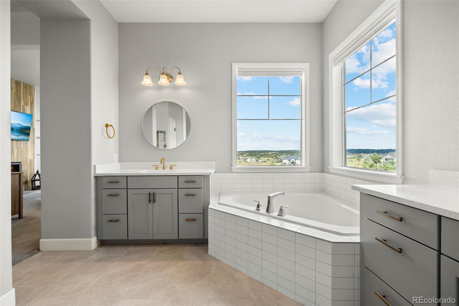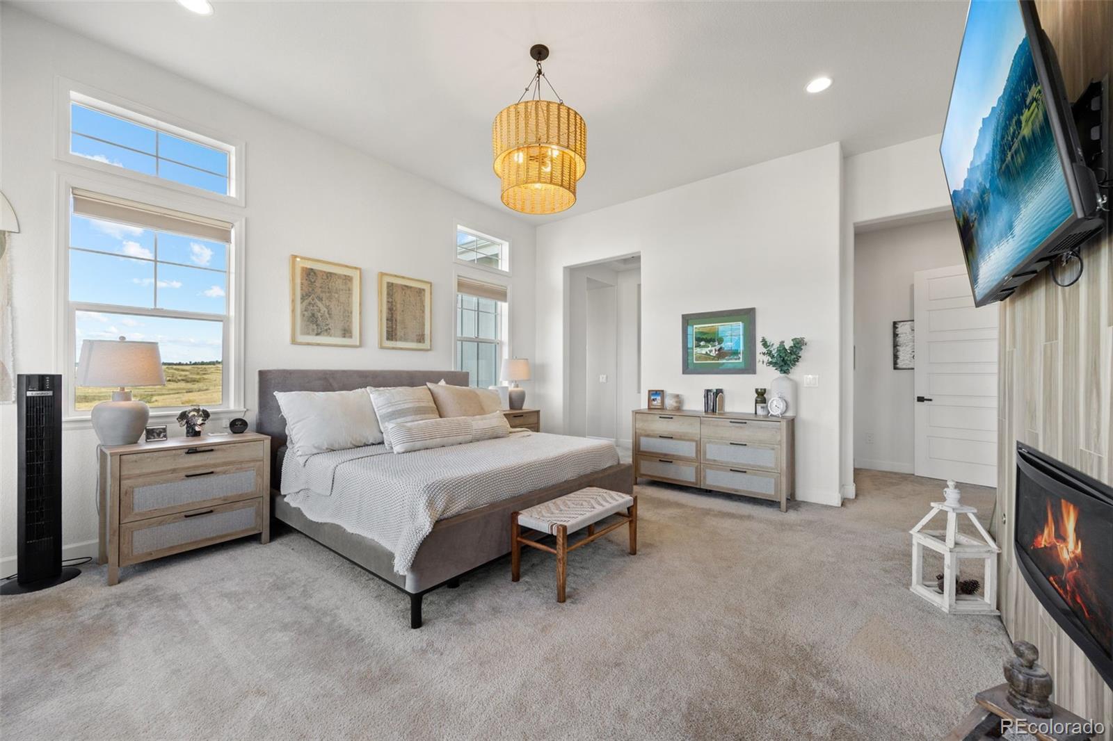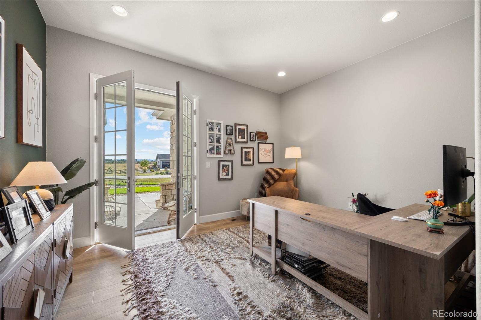 Welcome to 9141 Red Primrose Street, a private Colorado retreat set on one of the few 8-acre estates in the coveted Two Bridges community. Built in 2022, this home was designed for those who will never long for space, comfort, or amenities—blending breathtaking views, refined finishes, and a lifestyle rooted in both privacy and convenience. From the moment you arrive, the setting delivers everything buyers seek in Colorado living: panoramic mountain views, spectacular sunsets, and room to live expansively inside and out. Inside, soaring ceilings and walls of windows frame the Front Range, filling the open-concept great room with natural light. The kitchen is a true centerpiece, featuring an oversized eat-at island, quartz counters, custom cabinetry, dual ovens, and a butler’s pantry with a beverage fridge. Gather in the formal dining room overlooking the mountains, the casual breakfast nook, or step directly out to the deck for alfresco dining. A dedicated home office, private study, and main-level laundry provide ease and versatility for modern living. The main-level primary suite is a private sanctuary with a spa-inspired bath, dual vanities, soaking tub, oversized shower, fireplace, accent wall, and private sitting area—all with direct walk-out access to the deck. Downstairs, the walk-out lower level is built for entertaining and relaxation. Featuring a large rec room with center-slide glass doors open to the patio, complemented by a full wet bar, home theater, game area, and fitness room complete with a sauna. All of this comes together in a location that balances rural privacy with suburban access. Two Bridges is surrounded by top-rated schools, premier golf clubs, equestrian venues, and open space. Downtown Parker and Castle Rock are minutes away, while the Denver Tech Center and DIA are within easy reach. This is more than a home—it’s a complete lifestyle on eight private acres, where every detail inspires a life well-lived.