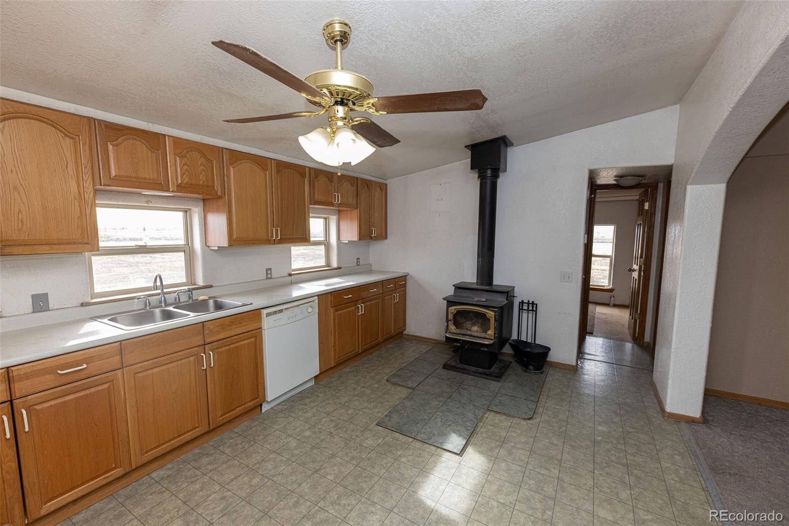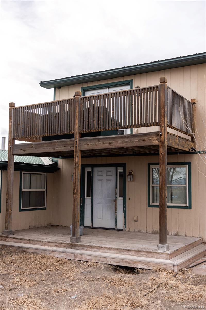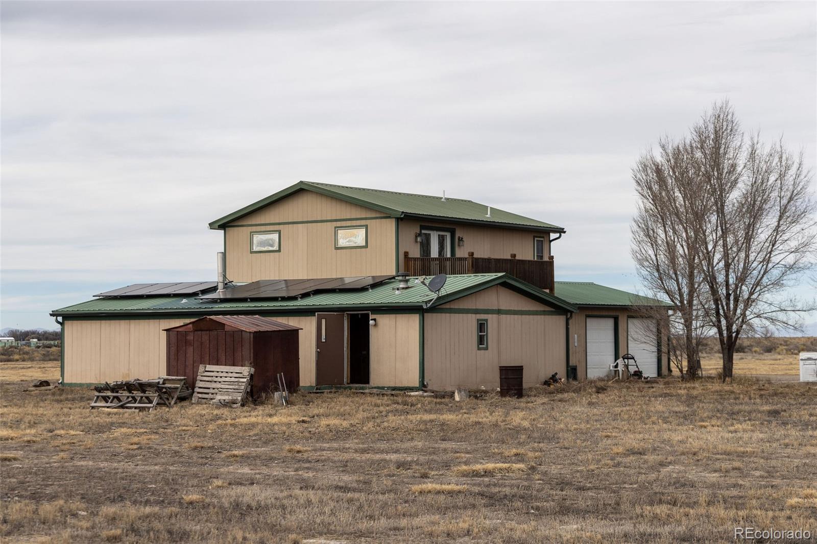 Spacious 6-Bedroom Home on 7 Acres Just Outside Alamosa. Enjoy wide-open space and big mountain views from this 6-bedroom, 3-bath home situated on 7 acres in a quiet rural setting. This modular home with a significant site-built addition offers multiple living areas, a generous kitchen, and a cozy wood-burning stove for winter comfort. A PV solar system installed in June boosts efficiency, while a boiler-powered hot-water baseboard system heats the home. The kitchen also includes its own on-demand water heater for added convenience. French doors lead to an upper deck with sweeping views of the Sangre de Cristo Mountains, and large windows bring in plenty of natural light. Outside, the level acreage is perfect for animals, gardening, or future outbuildings. A two-car garage adds storage and functionality.