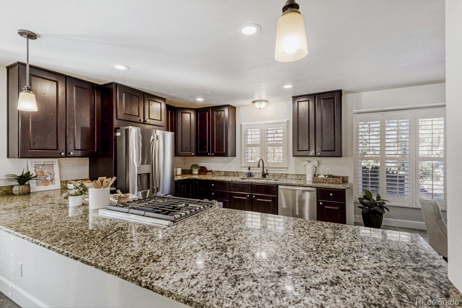 This beautifully updated residence tucked away on a quiet cul-de-sac in the heart of Greenwood Village’s desirable Sundance Valley neighborhood. This inviting home is a balance of comfort, style, and everyday functionality, all within a setting that embodies true neighborhood charm. Thoughtfully updated throughout, the home’s centerpiece is the kitchen featuring stylish finishes, new stainless-steel appliances (range, refrigerator, microwave), generous space for both casual dining and entertaining. The kitchen opens seamlessly to the family room with a cozy gas fireplace and flows effortlessly into the dining room, making it ideal for gatherings. The main level also offers a sun-filled living room with vaulted ceilings, a convenient powder bath, and a dedicated laundry room. Upstairs, the spacious primary suite serves as a private retreat, complete with a walk-in closet, spa-inspired bathroom featuring dual vanities and a large walk-in shower. Three additional bedrooms are well-appointed and share a generously sized secondary bathroom. The fully finished basement with new windows, adds exceptional versatility, featuring: recreation room perfect for entertaining or home office, space for a gym, a comfortable bedroom with egress window and adjacent full bath—ideal for guests or extended living. Fresh interior, new carpet and exterior paint enhances the home’s move-in-ready appeal. Outside, the expansive backyard offers both relaxation and play: turfed/sport area, sport court, putting green, dog run, open yard space, garden box and a stamped concrete patio with fire pit. Mature landscaping creates a seamless indoor-outdoor living experience. Located within the highly acclaimed Cherry Creek School District, this exceptional property offers more than just a home—it’s a lifestyle defined by convenience, elegance, the strong sense of community Sundance Valley is known for. If you’re seeking a turnkey home in Greenwood Village, 6023 S Akron Way is ready to welcome you home.