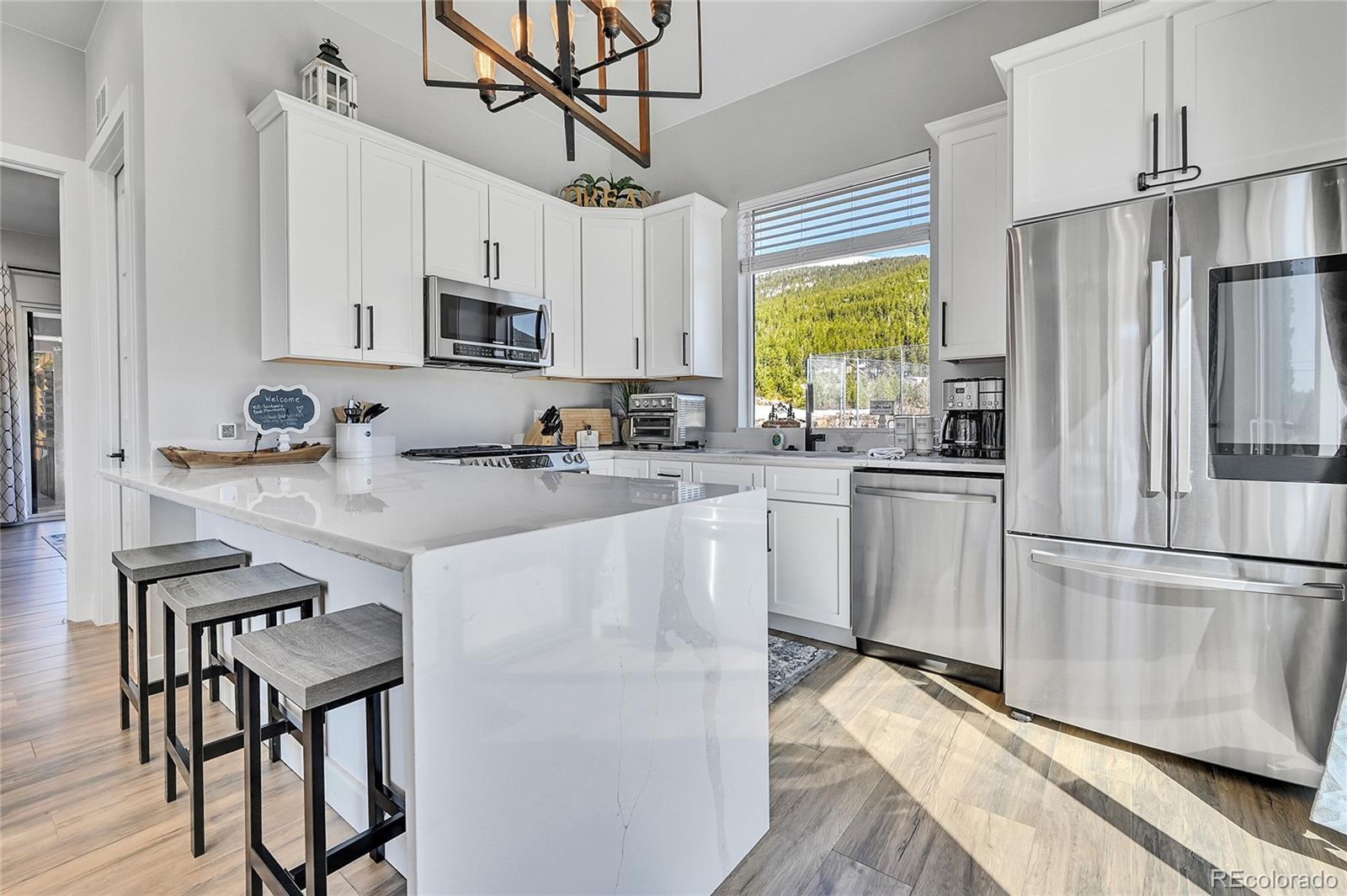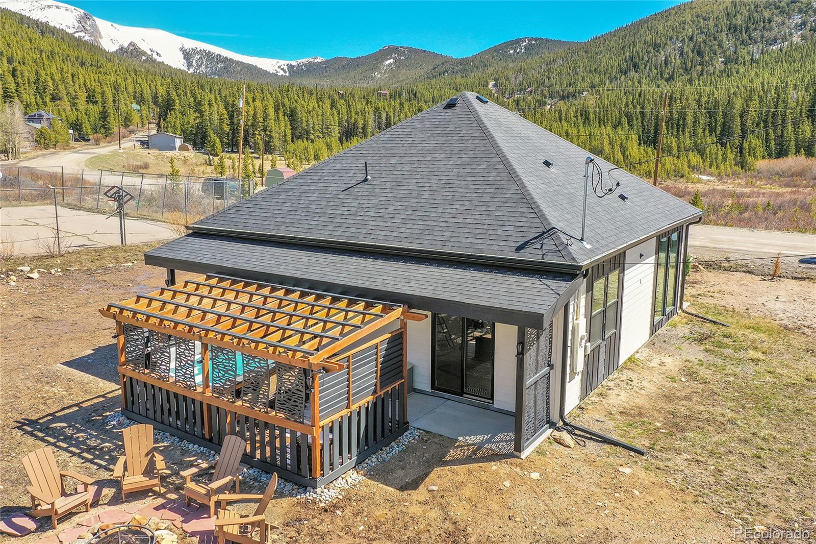 Discover an exceptional short-term rental opportunity in the highly desirable St Mary’s Glacier area of Idaho Springs. This furnished, custom-built 2-bedroom, 1-bath modern mountain cottage is thoughtfully designed for comfort, durability, and guest appeal—making it ideal as a turnkey vacation rental or year-round/vacation home for yourself. Inside, guests will love the open-concept layout with high ceilings, tall doors, and wood plank tile flooring throughout, creating a bright, modern mountain feel that photographs beautifully for listings. The stylish kitchen features a smart refrigerator, white quartz countertops, stainless steel appliances, range, microwave, and dishwasher, great for extended stays. The primary bedroom offers a relaxing retreat, the second bedroom’s built-in loft/bunk beds maximize sleeping capacity—an STR favorite. A spa-inspired bathroom with marble tile and a sleek, modern shower adds a touch of luxury. The cozy stone fireplace enhances the year-round rental appeal, especially during Colorado’s colder months. Outdoor amenities truly set this property apart. Guests can unwind in the private hot tub with sweeping mountain views, gather around the fire pit, and grill—features proven to boost nightly rates and reviews. Location is a major draw: just 2 miles from St. Mary’s Glacier and close to world-class skiing, hot springs, hiking, mountain biking, ATV trails, fishing, kayaking, paddleboarding, snowshoeing, and cross-country skiing. The charming town of Idaho Springs—home to local shops, dining, and the popular Indian Hot Springs—is only 15 minutes away via I-70, making this an easy and attractive destination for guests year-round. Additional highlights include ample off-street parking for up to four vehicles, year-round maintained roads. Whether you’re looking to expand your investment portfolio or enjoy personal use while generating rental income, this mountain cottage offers an outstanding opportunity in the vacation-rental market.