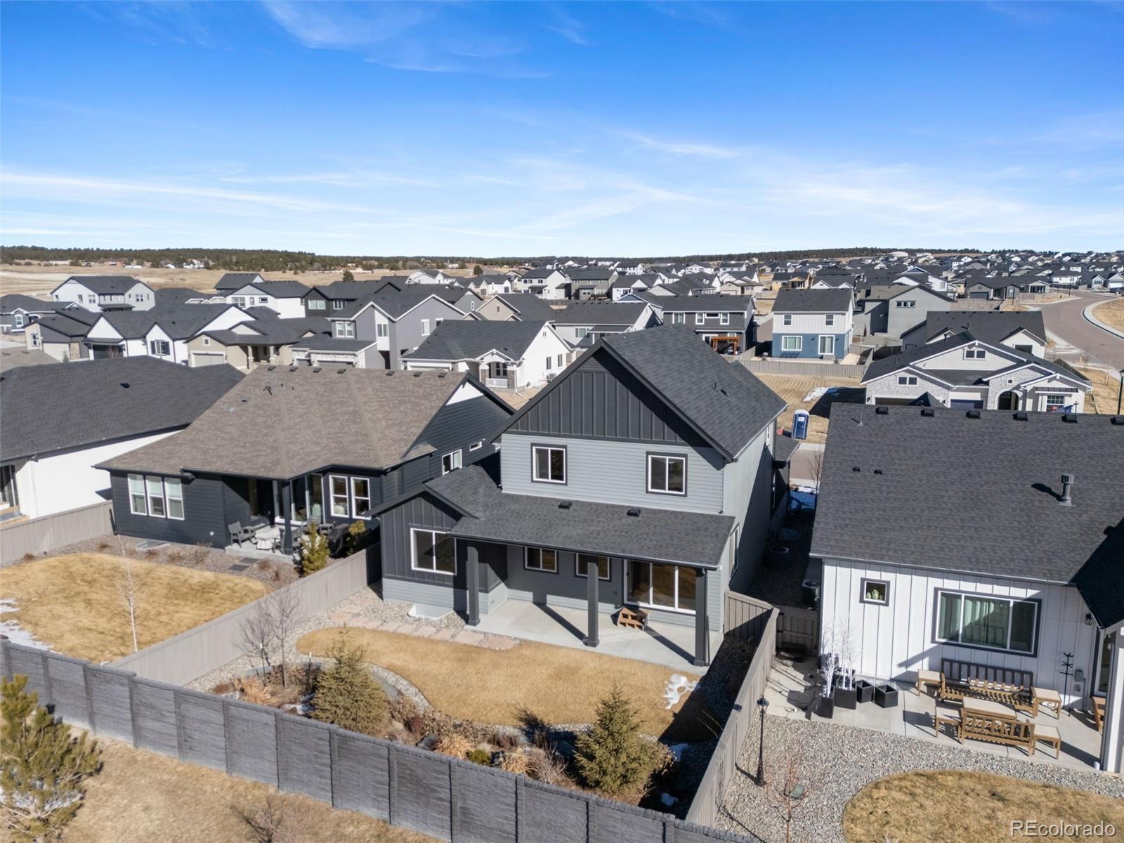 Experience luxury living in this stunning Vantage Homes former model, perfectly positioned to capture breathtaking, unobstructed views of Pikes Peak. Located in the highly sought-after School District 20, this meticulously crafted home offers a rare combination of designer finishes, functional elegance, and outdoor beauty. Step inside to soaring ceilings, expansive windows, and an open concept floor plan that fills the home with natural light and showcases the mountain vistas from nearly every room. Thoughtfully designed upgrades include gourmet kitchen appliances, quartz countertops, custom cabinetry, luxury plank flooring, and a spa inspired primary bath delivering both style and comfort. Entertain effortlessly in the spacious living and dining areas, or take the party outside to your fully landscaped backyard oasis. With a covered patio, professionally designed landscaping, full fencing and uninterrupted views, the outdoor space is an extension of the home’s high-end design. From top-rated schools and nearby trails to modern amenities and a vibrant community, this home offers not just a place to live but a Colorado lifestyle worth investing in. With the turnkey condition and model quality finishes, this is the one you’ve been waiting for.