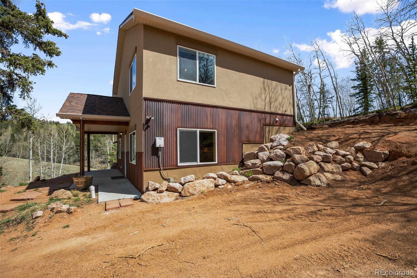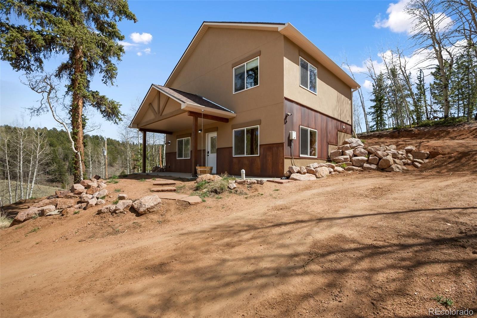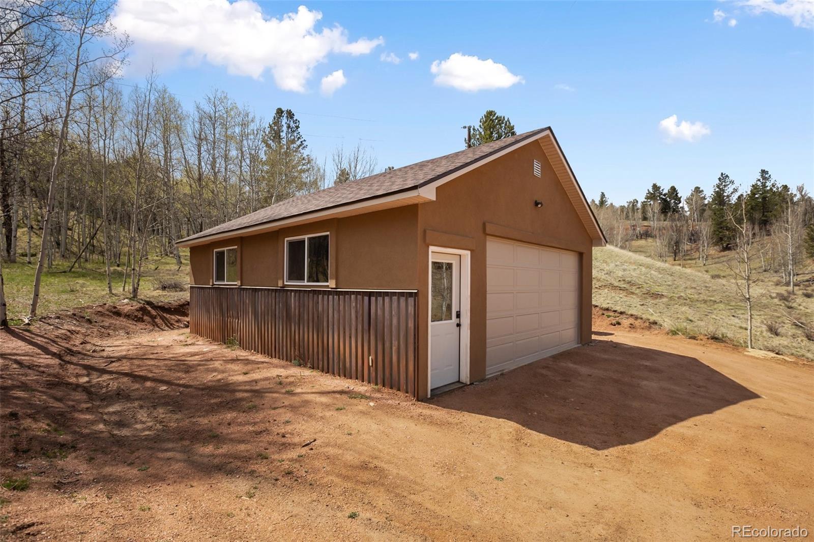 Enjoy living in the mountains but being just minutes from Cripple Creek in this newer home, boasting stunning views of the surrounding landscape that offers plenty of privacy and minimal traffic. The home's industrial-style aesthetic offers a unique and contemporary feel, vaulted ceilings, beautiful kitchen with hickory cabinets, leathered granite countertops that offers very little maintenance, under cabinet lighting, tons of natural light, bedroom(s) and living area on each level and views from every window. Enjoy the deck that extends your outdoor living space that opens to beautiful aspen trees. Combined with stucco and stone exterior, this home has little to no exterior maintenace. The large, oversized two-car detached garage equipped with 220-volt power—ideal for hobbies, a workshop, extra storage and large enough to fit your truck or SUV. This property blends the industrial and rustic charm with modern amenities to create your perfect mountain home retreat. Don't delay and come see this beautiful home today.