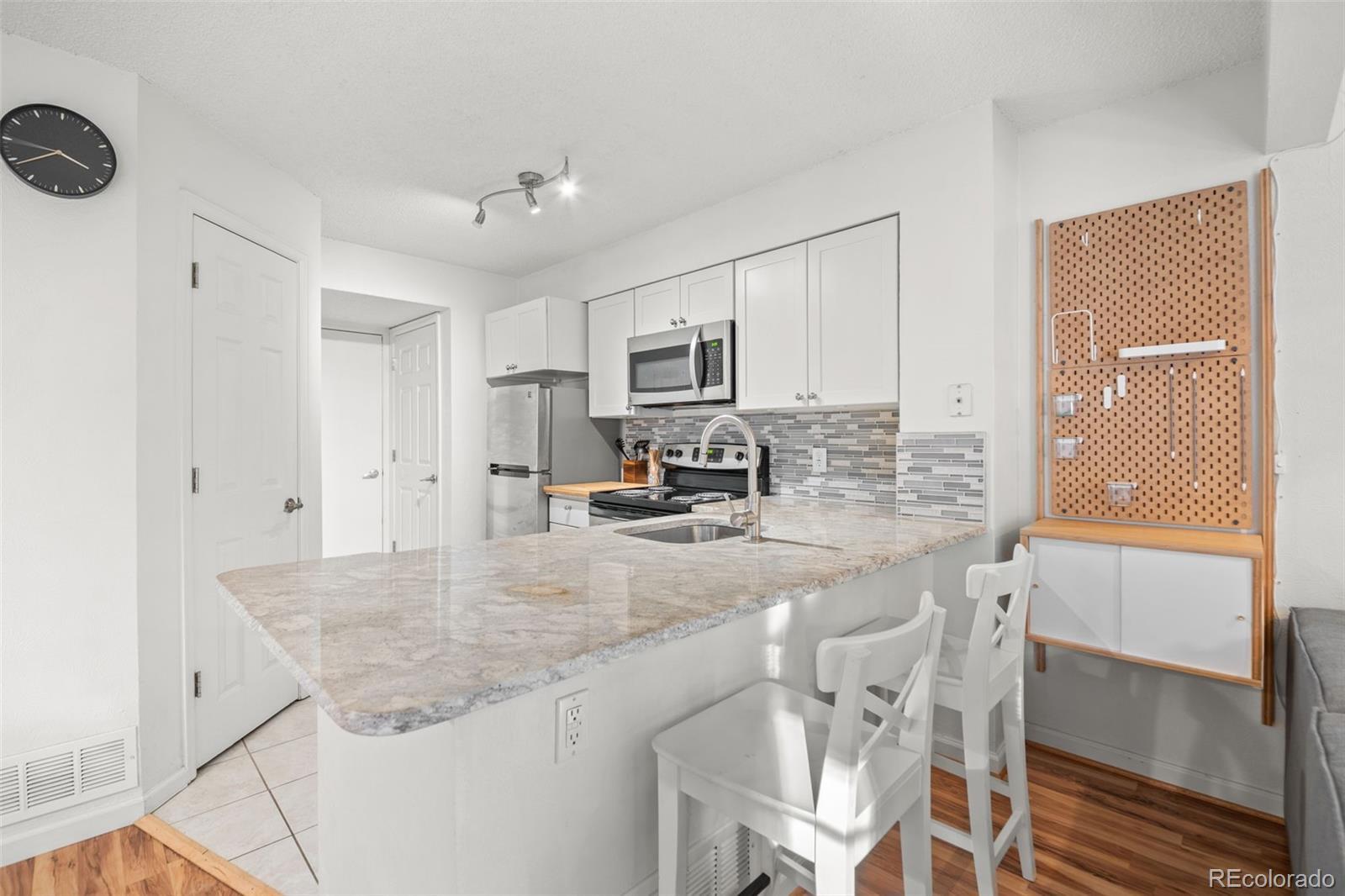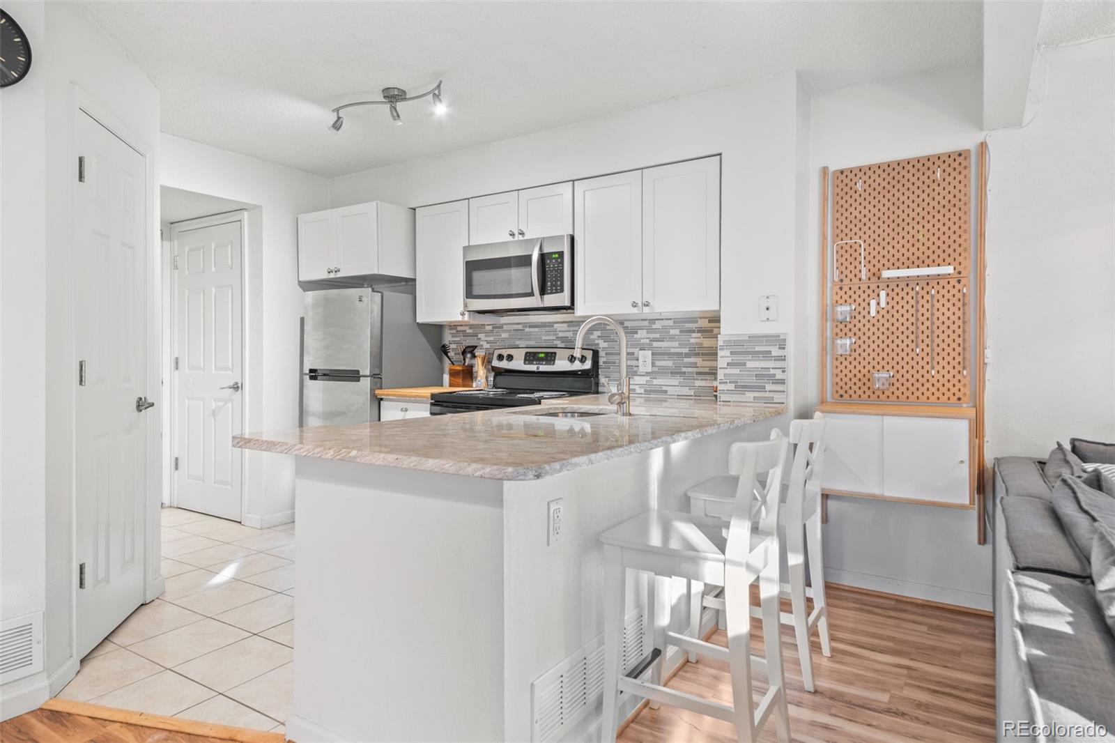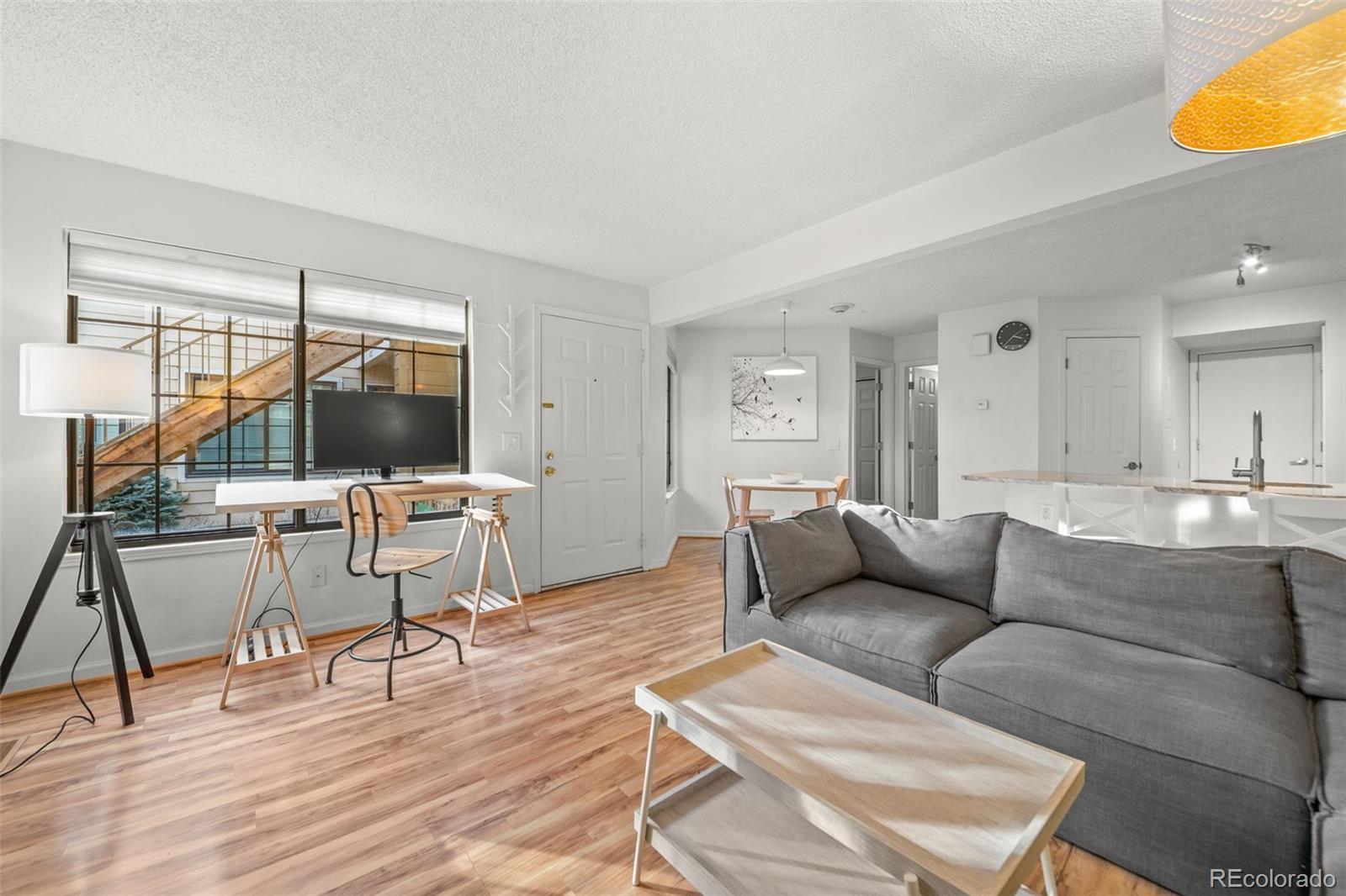Welcome home to this beautifully remodeled first-floor condo with garage and in-unit laundry in a prime Denver location making it perfect for first-time buyers, investors, or anyone looking for low-maintenance living close to everything. This bright and inviting 2-bedroom, 1-bath home offers 745 square feet of thoughtfully designed space with modern updates throughout, high ceilings, granite countertops, and stylish finishes. The open layout flows effortlessly from the living area into the updated kitchen, making it ideal for everyday living and entertaining. Relax in the cozy living room featuring a wood-burning fireplace, or enjoy your morning coffee on the covered front patio overlooking the community courtyard. Enjoy the convenience of in-unit laundry and the rare bonus of an attached one-car garage, providing secure parking and extra storage. Being on the first floor means easy access with no stairs, it's perfect for comfort and convenience. Located just minutes from I-25, Cherry Creek, local dog parks, and the Cherry Creek Trail, this home offers quick access to outdoor recreation, shopping, dining, and major commuter routes. This unit is also located in the highly regarded Cherry Creek School District which is a rare bonus for a Denver address. This home offers long-term value and broad buyer appeal. With a short commute to downtown Denver, you’ll enjoy unbeatable accessibility while still feeling tucked into a quiet community. Whether you’re looking for your first place, a smart investment, or a low-maintenance lifestyle in a great Denver location, this one checks all the boxes. Don’t miss your chance on this condo, schedule your showing today!