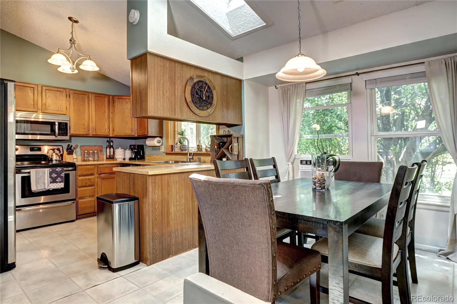 Nestled at the end of a quiet cul-de-sac in the desirable Dakota Station neighborhood, this sun-soaked home offers a rare blend of comfort, space and outdoor freedom. Built in 1983 and recently refreshed, the 3-bedroom, 2-bath residence (1,378 sq ft) sits on an approximate 7,884-sq-ft lot that backs to open space and invites outdoor living and play. From the moment you arrive, you’ll feel the difference: vaulted ceilings and abundant natural light welcome you into the main living areas, while the cozy painted wood-burning fireplace anchors family time during Colorado evenings. Three skylights flood the interior with daylight and heighten the feeling of openness. You’ll appreciate recent upgrades including a brand-new water heater, stainless steel appliances, central heating, and refreshed finishes that deliver true move-in readiness. Step outside into your own private retreat. The extra-large backyard features a dedicated dog run, a cozy patio perfect for morning coffee or evening gatherings, and plenty of space for yard games, firepits, or future garden projects. The rear lot’s size and orientation provide abundant sunshine and justify the “room to roam” feel so many buyers seek. The cul-de-sac location ensures reduced traffic, enhanced safety for children and pets, and a serene backdrop to daily life. Nearby, you’ll find excellent schools (Mortensen Elementary, Falcon Bluffs Middle, Chatfield High), expansive park space at nearby Dakota Station or Willow Creek, and convenient access to shopping, Red Rocks, and open-space trails. Redfin Whether you’re enjoying lazy summer evenings on the patio, watching your dog happily stretch out in the yard, or relaxing inside beneath vaulted ceilings and skylights, this home invites you to slow down but still stay connected. If you’ve been waiting for a well-priced, well-located home with large outdoor space and quiet privacy, your search ends here.