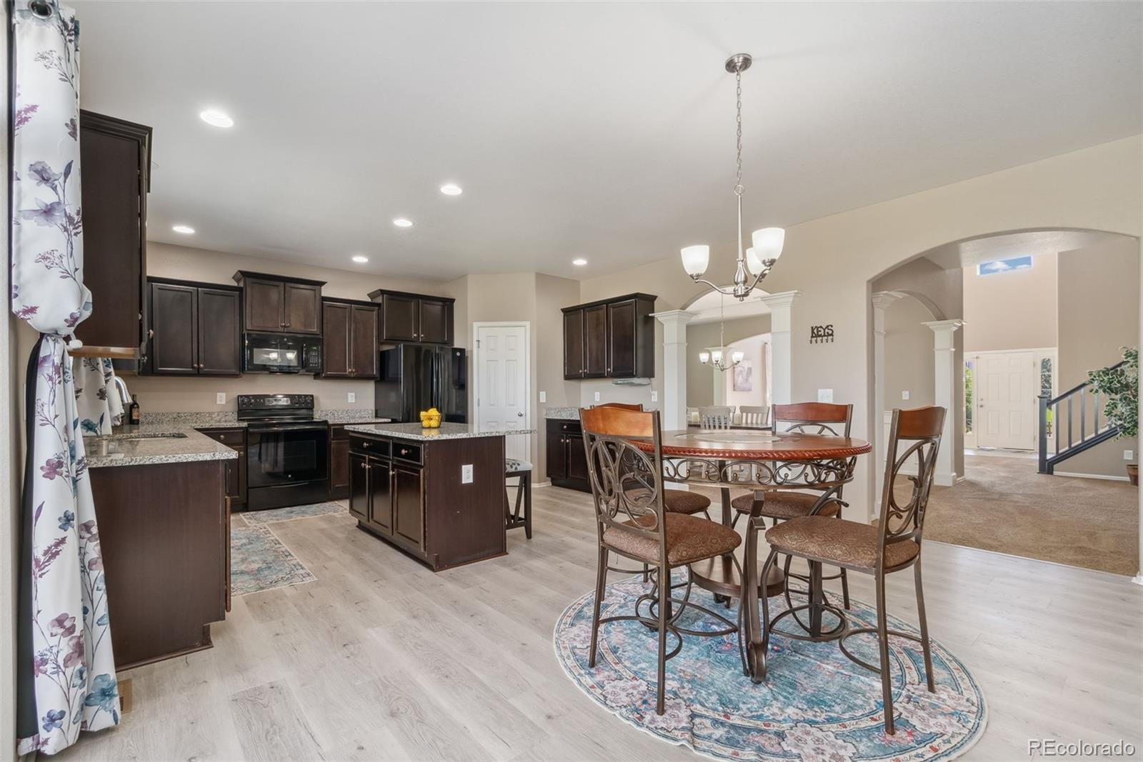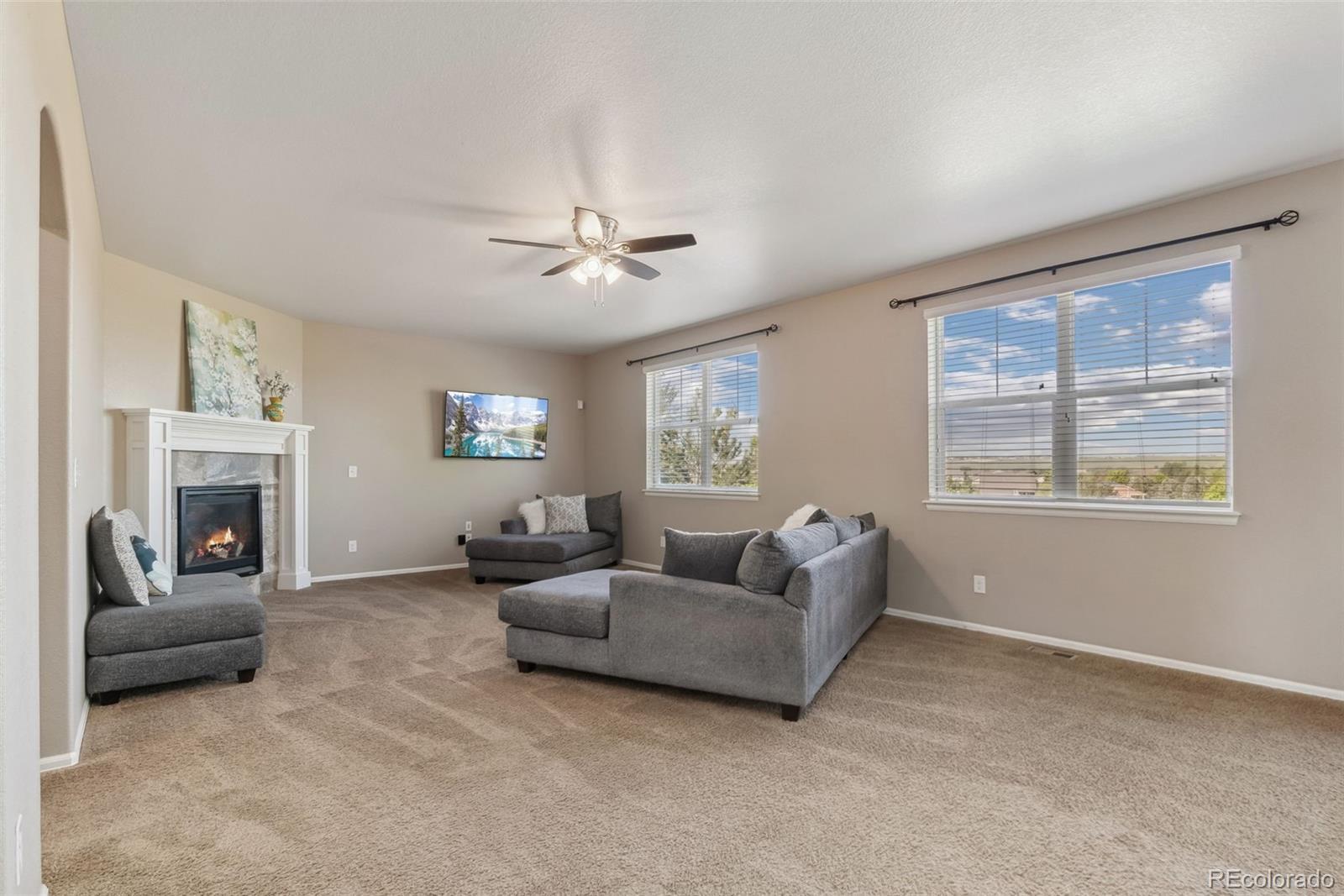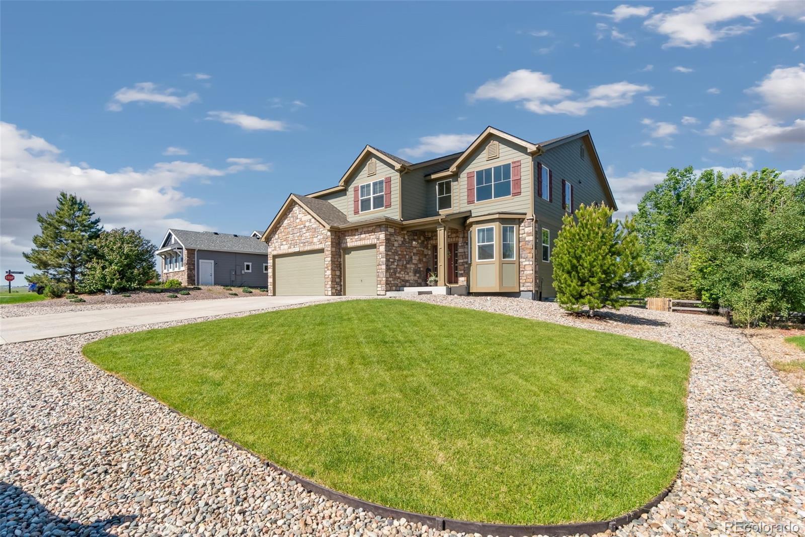Welcome to a home where space, style, and comfort come together in perfect harmony. Set against the backdrop of the 16th tee at Spring Valley Golf Club, with panoramic views of Pikes Peak and unforgettable sunsets, this expansive two-story residence offers a peaceful and elevated living experience. With 5 generously sized bedrooms and 5 bathrooms, this home is designed for both relaxation and entertaining. The main level blends formal and casual spaces seamlessly—from the elegant dining area to the expansive kitchen and great room, anchored by a sleek gas fireplace. The kitchen stands out with an eat-in island, ample cabinet storage, and a walk-in pantry—tailored for effortless hosting and daily living. A main-floor bedroom with a private ensuite adds flexibility, perfect for guests or multi-generational living, while a thoughtfully placed powder bath enhances convenience. Upstairs, the primary suite delivers a private escape, featuring a luxurious 5-piece bathroom with double vanities, a soaking tub, separate shower, and a spacious walk-in closet. A central loft area offers versatile potential—ideal for work, leisure, or creative pursuits. Three additional bedrooms, two additional full bathrooms, and a well-positioned laundry room complete the upper level. The full, unfinished basement invites endless possibilities, whether it's expanded living space, storage, or a custom project waiting to be realized. The 3-car garage offers abundant room for vehicles, tools, or workshop space. With a brand-new roof installed in May 2025, this home delivers not only beauty but long-term value. Located in Spring Valley Ranch, this is a rare opportunity to embrace comfort, privacy, and panoramic views in one remarkable setting. Come experience this home for yourself. You might just fall in love.