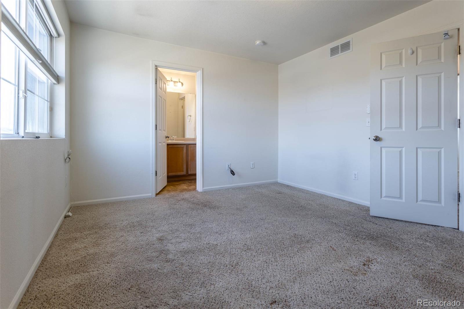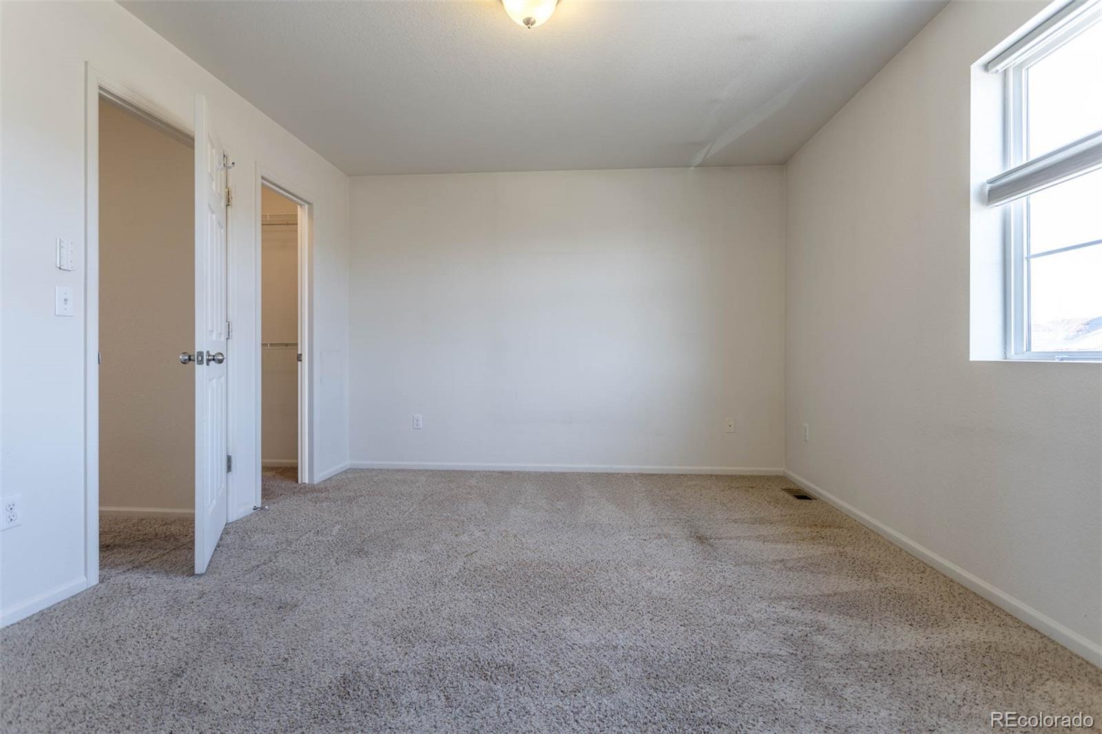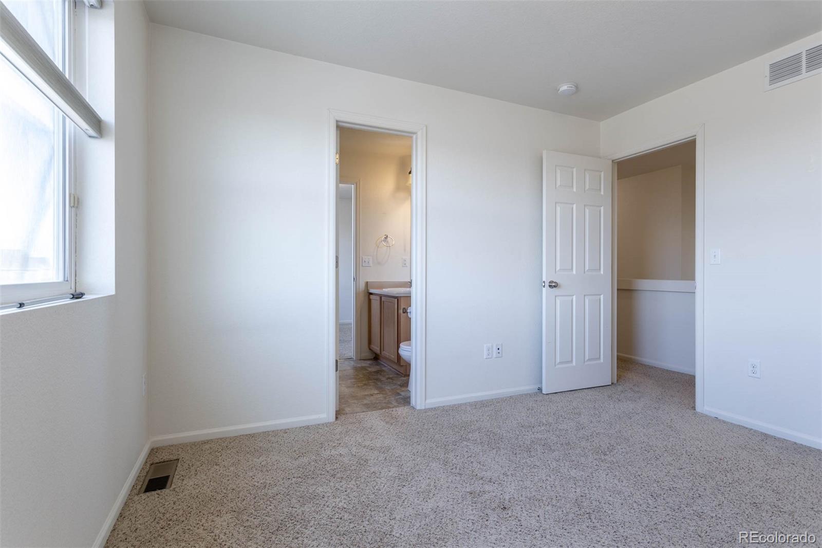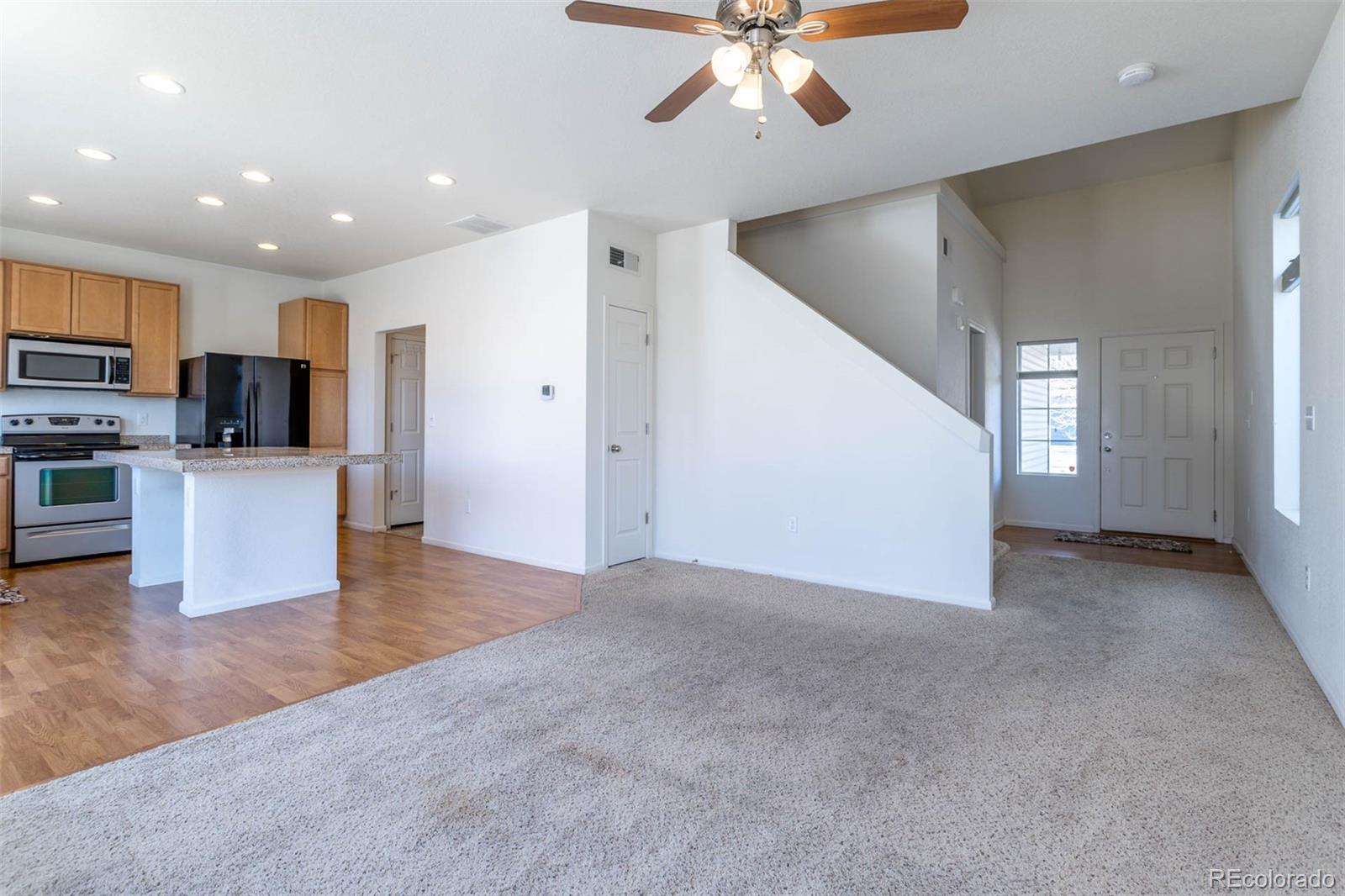 Filled with natural light from the west facing windows, you will love the spacious and open floorplan of this lovely home just minutes from Denver International Airport. As you enter from the covered porch, you will find a powder room, living room with soaring vaulted ceilings and a well-appointed kitchen with an island that accommodates bar stools. Granite counters, lovely light cabinets and stylish appliances complete the bright kitchen. Laundry is conveniently located as you enter from the 2-car garage. Upstairs you will find the primary bedroom with attached 3/4 bath and walk in closet. The walk-in shower with a large bench was just installed. There are 2 additional bedrooms attached by a Jack & Jill full bath. All new in 2025: top/down blinds throughout, hot water heater, roof and a section of the backyard fence. There is a nice, level backyard with a large Tuff shed for extra storage. Close to parks, trails and highways, the Green Valley Ranch neighborhood is a great place to call home!