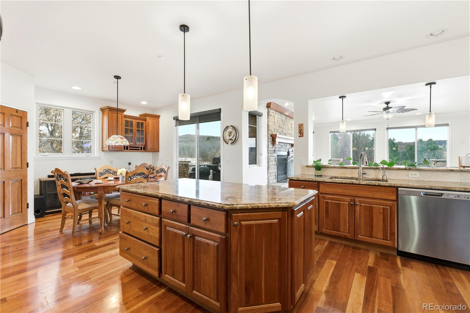 Located on nearly six acres in the established Bell Mountain Ranch community, this custom ranch-style home offers privacy, panoramic mountain views, and the rare combination of acreage living with convenient access to Castle Rock. Situated on a quiet cul-de-sac, the property is surrounded by open space and Colorado’s natural beauty. Inside, the main level showcases an open floor plan with hardwood floors, vaulted ceilings, and expansive windows that bring the outdoors in. The kitchen is designed for both function and gathering, featuring granite countertops, stainless steel appliances, abundant cabinetry, and a central island that flows seamlessly into the dining and great room. Multiple living spaces provide flexibility for entertaining, working from home, or hosting guests. The primary suite offers a peaceful retreat with a five-piece bath, soaking tub, walk-in shower, and generous closet space. Additional bedrooms and bathrooms are thoughtfully placed for privacy. The walk-out lower level expands the home’s versatility with a large recreation area, fireplace, guest bedroom, full bath, and ample storage—ideal for multi-generational living or long-term guests. Outdoors, the acreage allows room to roam, entertain, and enjoy unobstructed views and Colorado sunsets. Bell Mountain Ranch is known for its estate-sized parcels, paved roads, community maintenance, and proximity to Castle Rock, I-25, and the Denver Tech Center—offering space without sacrificing convenience. A rare opportunity to own a true Castle Rock acreage property with views, privacy, and refined comfort.