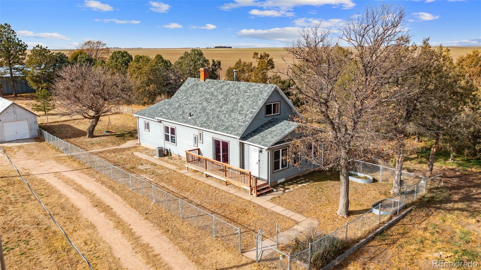 Nestled on 40 acres of open Colorado countryside, this charming property offers the perfect blend of comfort, functionality, and rural freedom. Inside, you’ll find a welcoming home designed for everyday living with thoughtful updates throughout. The spacious primary suite features a beautifully remodeled bathroom and a generous walk-in closet, providing both style and convenience. The second bathroom has also been refreshed with a brand-new vanity. The home is equipped with air conditioning for year-round comfort, while several bedrooms include ceiling fans for added cooling on warm days. The kitchen features an electric stove and a refrigerator that’s only four years old, with a washer and dryer conveniently included in the sale. Recent upgrades ensure peace of mind for years to come—new windows were installed just three years ago, a new water heater was added six months ago, and the exterior now boasts a newly installed chain-link fence. Outside, the property offers an abundance of space and opportunity. The 40-acre lot includes a dedicated section set up for horses, ideal for equestrian enthusiasts or anyone looking for room to expand. Whether you dream of cultivating a small ranch, enjoying wide-open views, or simply savoring the quiet of country living, this property delivers the space and versatility to make it your own. This is a rare opportunity to enjoy updated living in a serene setting with room to roam and endless possibilities under the big Colorado sky.