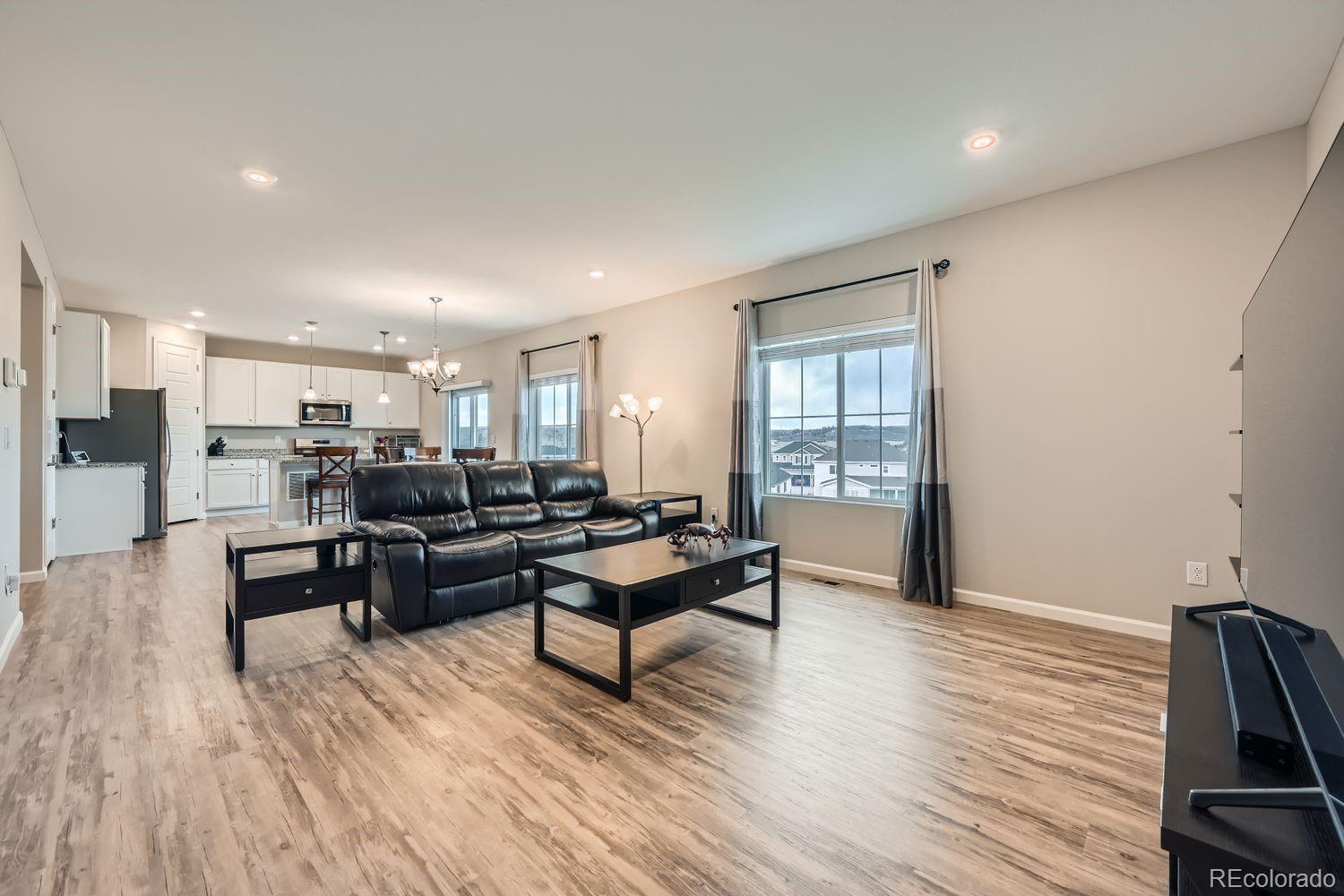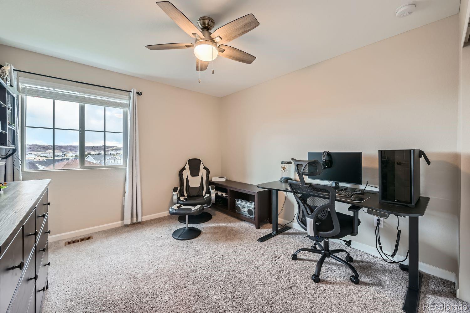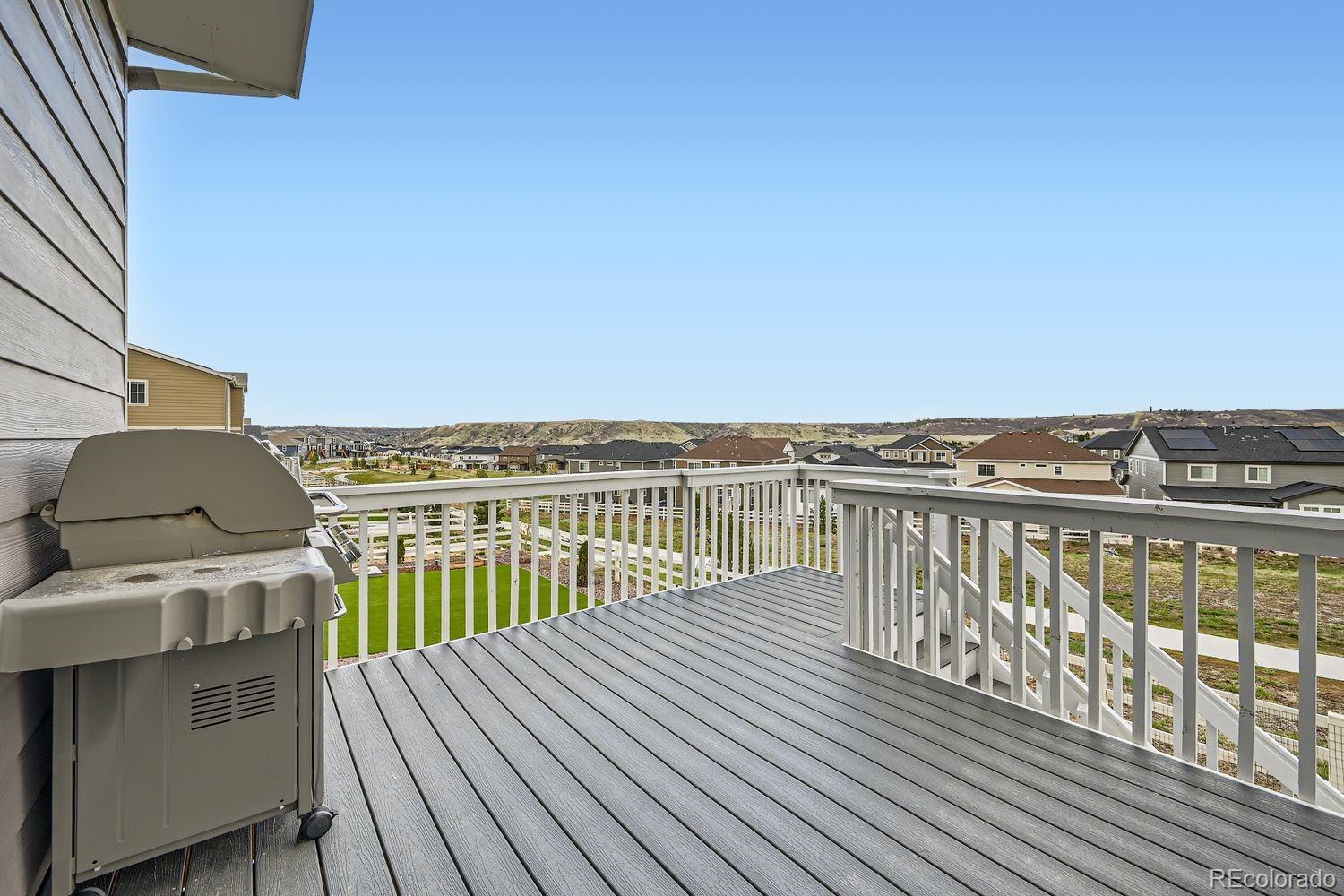 Stunning Home Backing to Open Space with Scenic Views and Trail Access! Welcome to this beautifully maintained home, perfectly positioned on a premium lot backing to open space and the Crystal Valley Trail system—enjoy breathtaking views right from your windows! Inside, you’re greeted by a spacious foyer and luxury vinyl plank flooring that extends throughout the main level. This thoughtfully designed floor plan includes a main-level bedroom and dedicated office, offering flexible living and work-from-home options. Lovingly cared for by just two occupants, the home is in impeccable, like-new condition. Step outside to your upgraded backyard, featuring custom deck stairs, an oversized concrete patio, lush lawn space, and uninterrupted views—perfect for entertaining or relaxing. Homes in this location don’t last long. Schedule your showing today and experience the perfect blend of comfort, views, and open space living!
