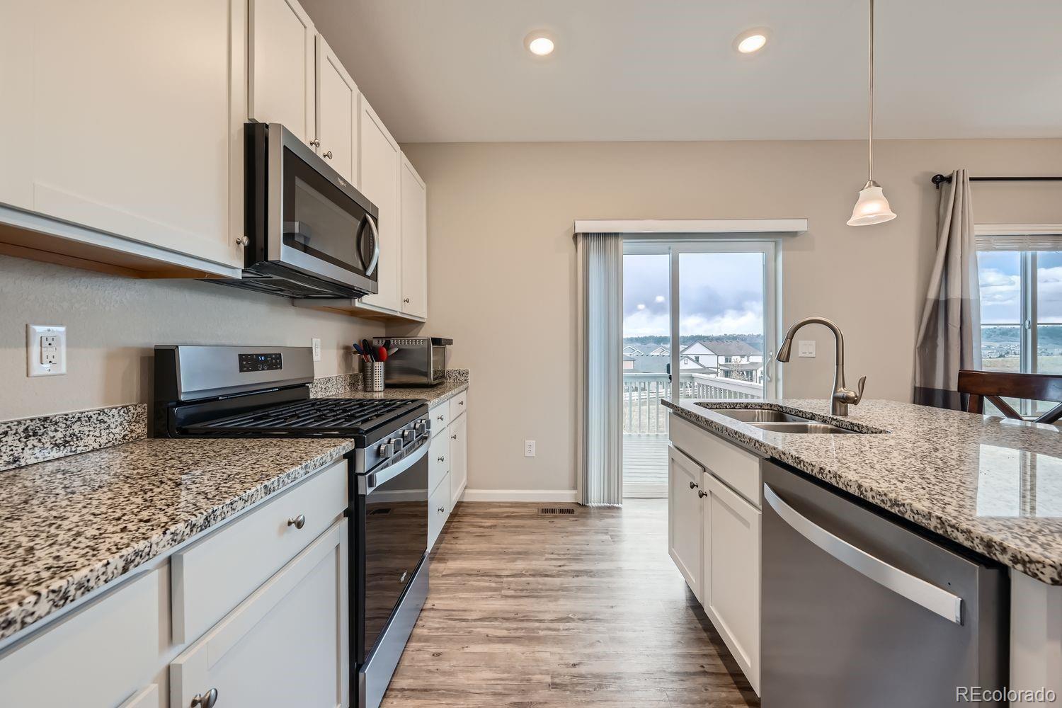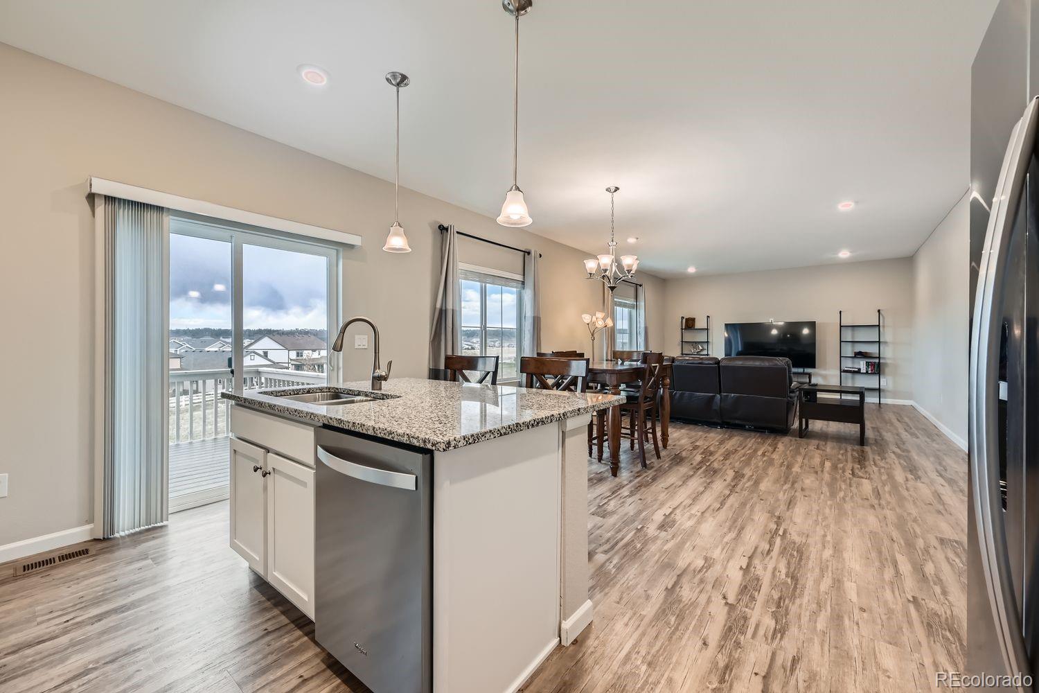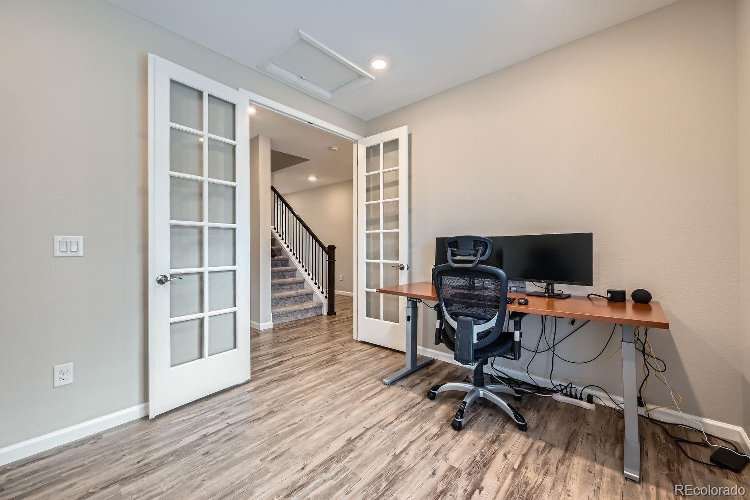 Stunning Home Backing to Open Space with Scenic Views and Trail Access! Welcome to this beautifully maintained home, perfectly positioned on a premium lot backing to open space and the Crystal Valley Trail system—enjoy breathtaking views right from your windows! Inside, you’re greeted by a spacious foyer and luxury vinyl plank flooring that extends throughout the main level. This thoughtfully designed floor plan includes a main-level bedroom and dedicated office, offering flexible living and work-from-home options. Lovingly cared for by just two occupants, the home is in impeccable, like-new condition. Step outside to your upgraded backyard, featuring custom deck stairs, an oversized concrete patio, lush lawn space, and uninterrupted views—perfect for entertaining or relaxing. Homes in this location don’t last long. Schedule your showing today and experience the perfect blend of comfort, views, and open space living!
