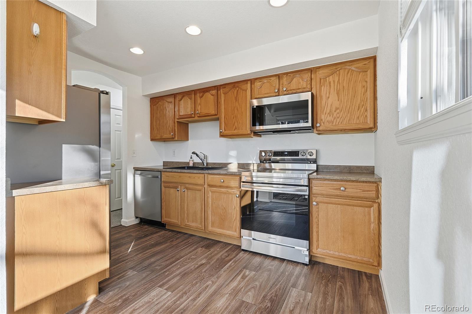 Welcome to your sun-soaked sanctuary nestled in the heart of Westminster's desirable Tanglewood subdivision! With a generous 1,004 square feet, this delightful condo offers two cozy bedrooms and a stylishly updated bathroom, ensuring comfort and modern elegance throughout. Step into vibrant, light-filled spaces accentuated by soaring vaulted ceilings that elevate the ambiance. Enjoy the plush feel of brand-new carpet beneath your feet and the gleam of brand-new, stainless steel Samsung appliances in the kitchen, promising culinary adventures galore. A three-year-old furnace and two-year-old air conditioning ensure year-round comfort, while the in-unit washer and dryer add convenience to your busy lifestyle. Freshly painted, carpeted, and inviting, this home also boasts a private deck off the kitchen, perfect for breezy outdoor dining and tranquil relaxation. With an attached one-car garage providing security and ease, why wait? This enchanting condo is ready and waiting to make your living dreams come true! New exterior is coming! Buildings behind and to the West have already been done. Budget has been approved(with no assessment) but timing is not known at this time.