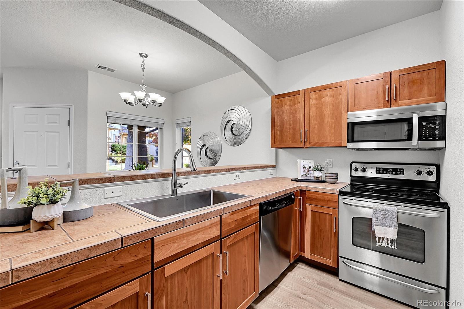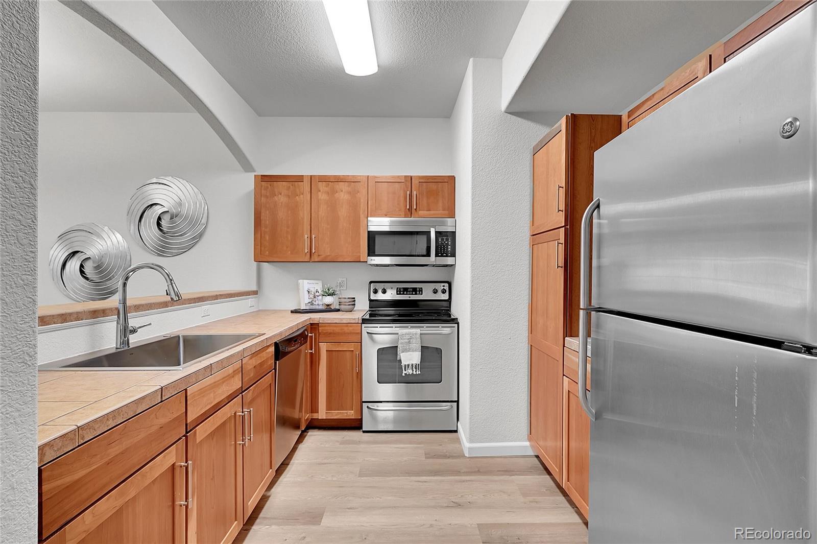 Welcome to this two-bedrooom, three-bathroom townhome located in Carriage Park! This beautiful residence in a gated community offers comfort, functionality and style throughout. Step inside to a bright and inviting living room featuring plenty of space, large windows that fill the room with natural light, and a cozy fireplace, perfect for chilly Colorado evenings. The open-concept layout with new interior paint seamlessly connects the living, dining, and kitchen areas, ideal for hosting gatherings with friends and family. Venture to the kitchen, which is truly a dream and boasts ample amounts of cabinetry and generous counter space. Plus, all stainless steel appliances are included. Head upstairs where you will find the primary suite, which is a peaceful retreat with new luxury vinyl plank flooring, a large window allowing the space to feel bright and open, a walk-in closet and a private en-suite bath with a spacious double vanity, and a shower/tub combo. Your busy mornings getting ready will be that much easier! The second bedroom, a full bathroom, and a versatile loft area, perfect for a home office, additional living area, playroom, or game room, complete the upper level. Enjoy the luxury of having in-unit laundry, with an included washer and dryer, ready to tackle any mess that may come your way! You will love living in Carriage Park. Relax with friends and family at the covered picnic areas, go for a walk on one of the trails or play some basketball at the court. Prime location offering easy access to just about anywhere, including I-225, I-25, Downtown Denver, Denver Technology Center, and Denver International Airport. Ample amounts of shopping, dining, and entertainment options are also nearby and include the Towne Center at Aurora, Cherry Creek Reservoir, Village Green Park, and more! Combining thoughtful design with modern comfort, this home offers an easy, low-maintenance lifestyle within a secure and welcoming gated community. Don't miss this opportunity!