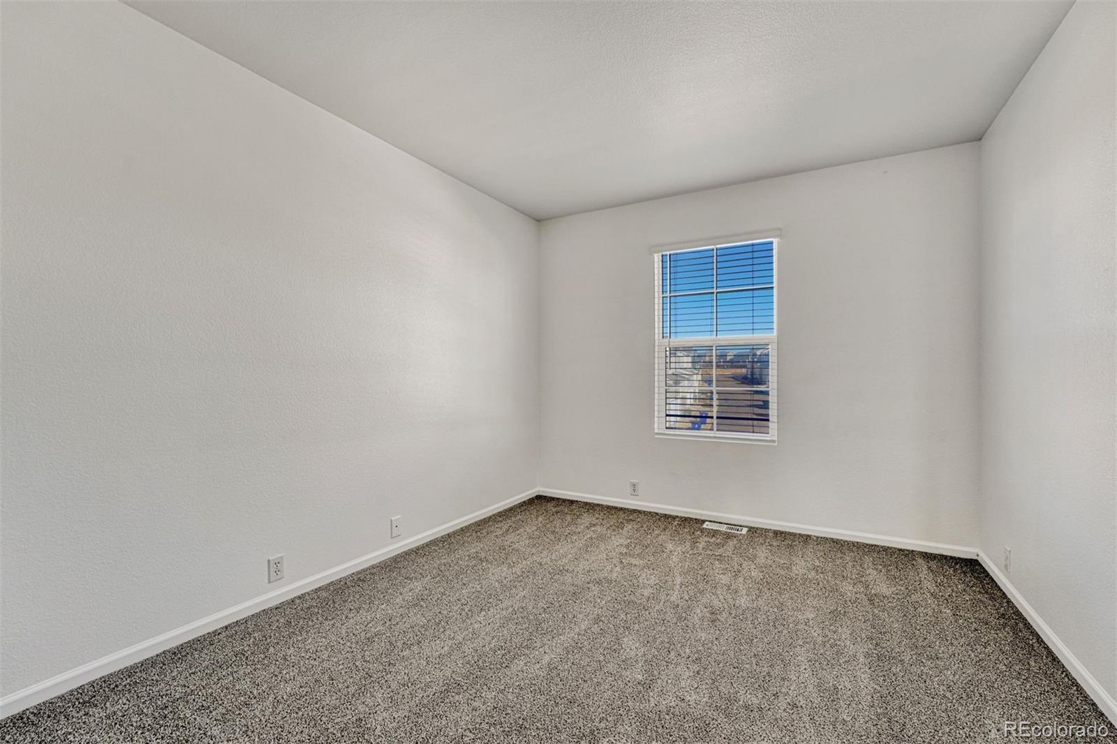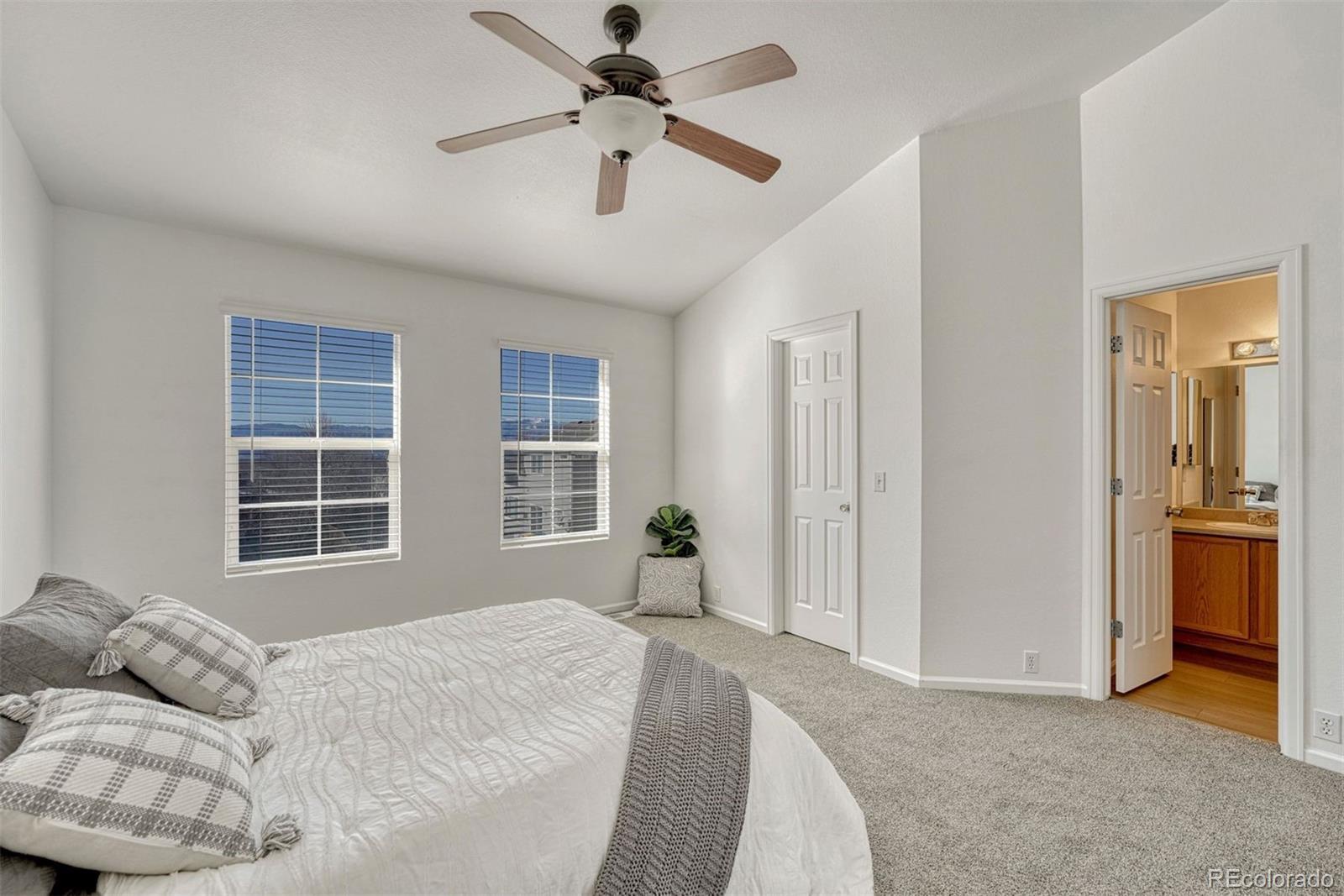 Welcome home to this inviting, move-in-ready three-bedroom, three-bath townhome featuring fresh interior paint, new carpet, luxury vinyl flooring in the kitchen, and new blinds throughout. The open, light-filled main level offers a welcoming floor plan ideal for both everyday living and effortless entertaining. The kitchen offers ample cabinet space, a pantry, all existing appliances, and a breakfast bar overlooking the dining area and spacious living room. It's ideal for gatherings or relaxed evenings at home. A convenient powder room, additional storage, and direct access to the two-car garage complete the main level. Upstairs, the primary suite is a comfortable retreat with vaulted ceilings, a large walk-in closet, ceiling fan, and a private en-suite bath with double vanities. Two additional bedrooms, a full bath, and a generously sized laundry room with washer and dryer included round out the upper level. Set within the well-maintained Claremont Ranch community, this home is within walking distance to shopping and dining, close to trails, and offers easy access to the Powers corridor, Peterson and Schriever Space Force Bases, and District 49 schools. Comfort, convenience, and location come together beautifully here - don’t miss the opportunity to make this lovely townhome your own.