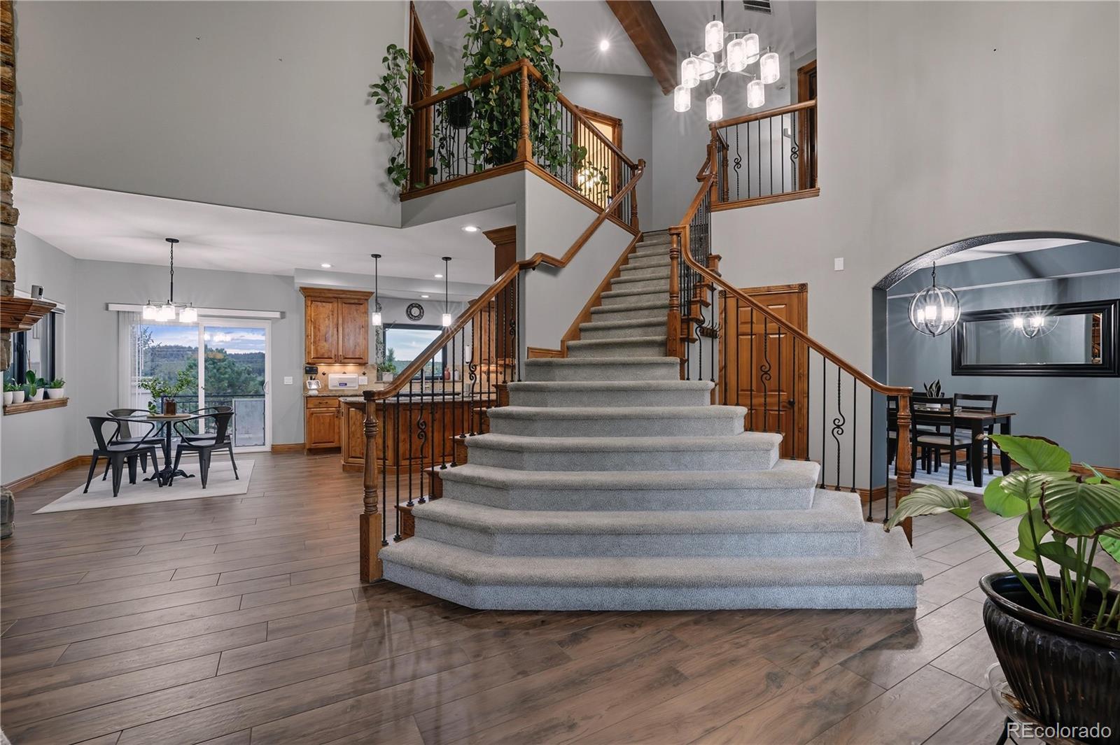 You'll love this fully remodeled 6-bedroom, 4-bath custom smart home is a rare opportunity in the highly desirable Walden Preserve community. Nestled on a quiet, oversized corner lot with serene mountain views, this home offers over 4,500 sq. ft. of thoughtfully updated living space, including 4 bedrooms upstairs, 2 in the walk-out basement, and a main-level office with custom built-ins. Recent renovations include a new roof (2020), new stucco with fiberglass mesh (2022), fresh interior paint, updated light switches and outlets. The home also features a long list of energy-efficient upgrades, including a 9kW solar system (2021), all-new Andersen composite windows (2023), Nest thermostats, LED lighting, dual A/C units, two water heaters, a whole-house humidifier, radon mitigation system, water pressure booster, and a hot water recirculating pump. Technology lovers will appreciate the comprehensive smart home features, including Bluetooth intercom, Schlage smart locks, Ring cameras, MyQ garage door openers, Hunter smart sprinkler system, and smart ovens. The gourmet kitchen includes knotty alder cabinetry, granite countertops, double ovens, gas cooktop, a water filtration system, and all-new appliances (2021). Elegant flooring upgrades include heated Ditra tile floors on the main level, engineered Cali Bamboo upstairs, and Cali Geo-Wood in the basement. Outside, enjoy a beautifully landscaped yard with a built-in firepit, gas grill, and a 6-person Master Spa hot tub (2021)—ideal for entertaining or relaxing under the stars. This home is just a short walk to award-winning D38 Kilmer Elementary, and offers peaceful living in a forested setting with access to miles of scenic trails. Combining modern efficiency, smart tech, and natural beauty, this custom home is perfect for those seeking comfort, sustainability, and a high-end lifestyle in one of the area’s most exclusive neighborhoods.