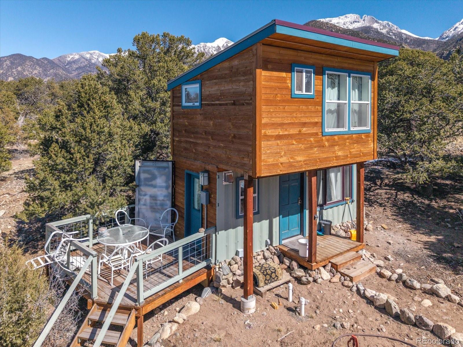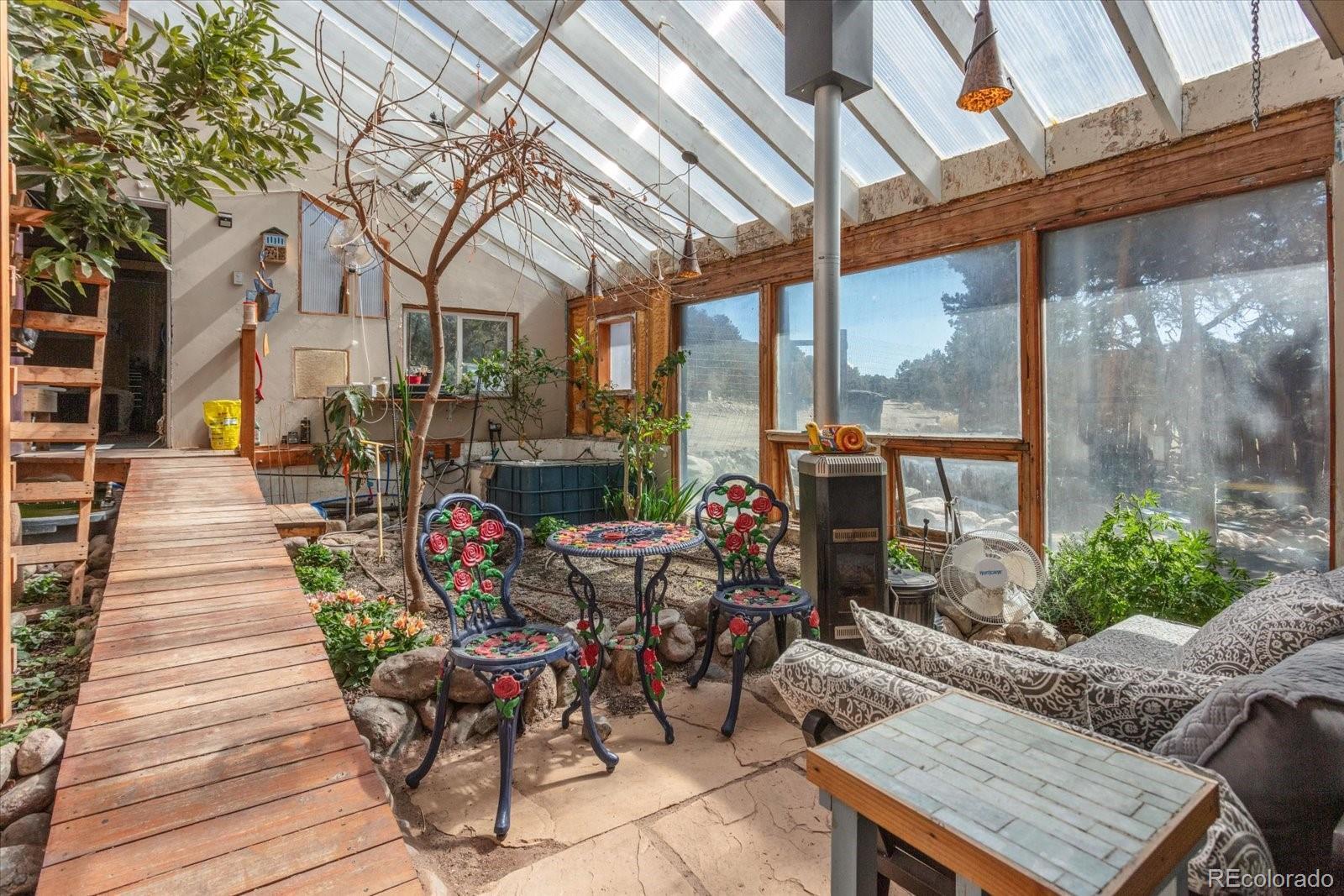 Motivated Seller! Situated on 1 acre backing to greenbelt and Spanish Creek (year-round creek) the property has 3 homes, greenhouse, heated garage and attached art studio. The front yard is fenced with an established garden area including asparagus, a variety of herbs, white nectarine, apricot and cherry trees. Seller owned solar electric and water panels on the roof. The main home is a cozy 2 bedroom 2 bath with eat-in kitchen, custom cabinets made of beetle kill maple, high efficiency rocket wood stove and 390 sq ft screened in porch. The primary bedroom has a sliding glass door to the greenhouse, primary bathroom has an oversized sunken tub. Lofts for storage. Solar powered radiant floors with backup electric through the main home, garage and art studio. The greenhouse is 16x22 with a climate battery, automatic watering, venting and fans with 2 fish tanks, hydroponic possible and a rocket stove for below 0 temps. Myers lemon, persimmons, mango and avocado trees. Supplement your food year around. The heated garage is approx 484 sq ft with a 10 foot door, high ceiling,2 storage lofts with attached art studio that is approx 264sq ft including ¾ bath, 220 electric, work sink, small rocket stove and sliding glass door to backyard. The second home is a functioning Airbnb with just over 600 sq ft, one bedroom loft, full bath and kitchen with propane heat and roof top deck that overlooks the valley just perfect for star gazing. Rents for $110nt. The 3rd is a unique container home 1 bedroom 1 full bath with full kitchen main floor has electric radiant heat, propane on demand hot water and wall heater. Wood rocket stove for back up. Amazing views off the 2nd story. Can be an airbnb or full time rental. Nested in the trees of a designated international dark sky’s community just 10 minutes to town, grocery stores and an abundance of trails for exploring. Looking for an additional income stream, have a love for gardening, and need for a creative space. This is your home!