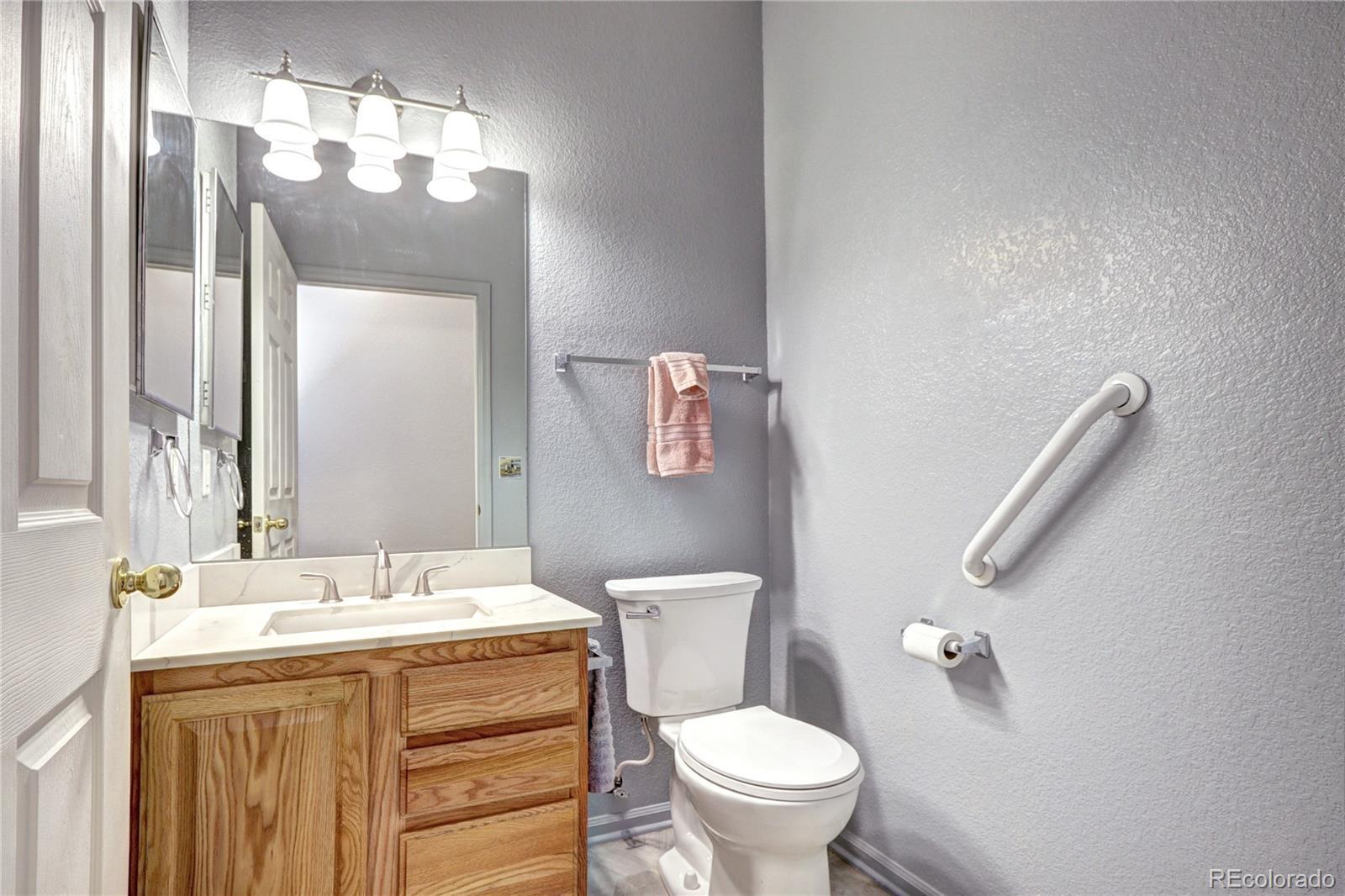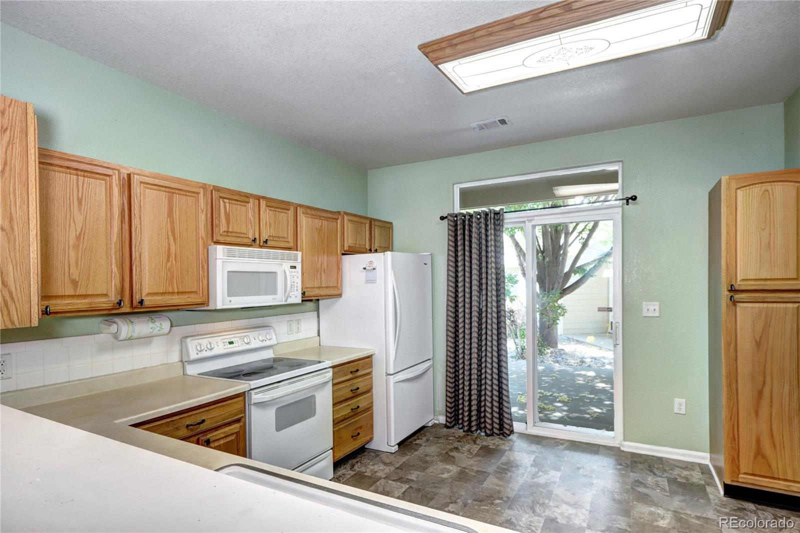 Step into modern design and comfort paired with an easy living, low maintenance lifestyle. As you enter this two bedroom, two bath home, you are greeted by a large living/dining area with vaulted ceilings, large windows that allow sunlight to pour in on newer laminate floors. A cozy corner gas fireplace will be a central focus for gatherings with guests or quiet evenings at home. The kitchen is large enough for a small breakfast table, features lots of cabinet space and provides direct access to a large, partially covered patio overlooking trees and greenery. The large primary suite has a huge picture window, laminate flooring and a newly remodeled primary bath with dual sinks, a big walk-in closet and a huge walk-in shower with seat. The secondary bedroom has a picture window, carpet on the floor and an oversized closet. Across the hall is a newly remodeled three-quarter bath for the convenience of guests. The community is configured so each unit feels like a stand-alone home and there is lots of guest parking besides the attached two-car garage. When you leave the peace and quiet of the popular community, you are only minutes away from shopping, restaurants, and the Thornton Crossroads 104th Station. Look no further, you have found a perfect blend of livability, charm and convenience. Seller will consider all offers!