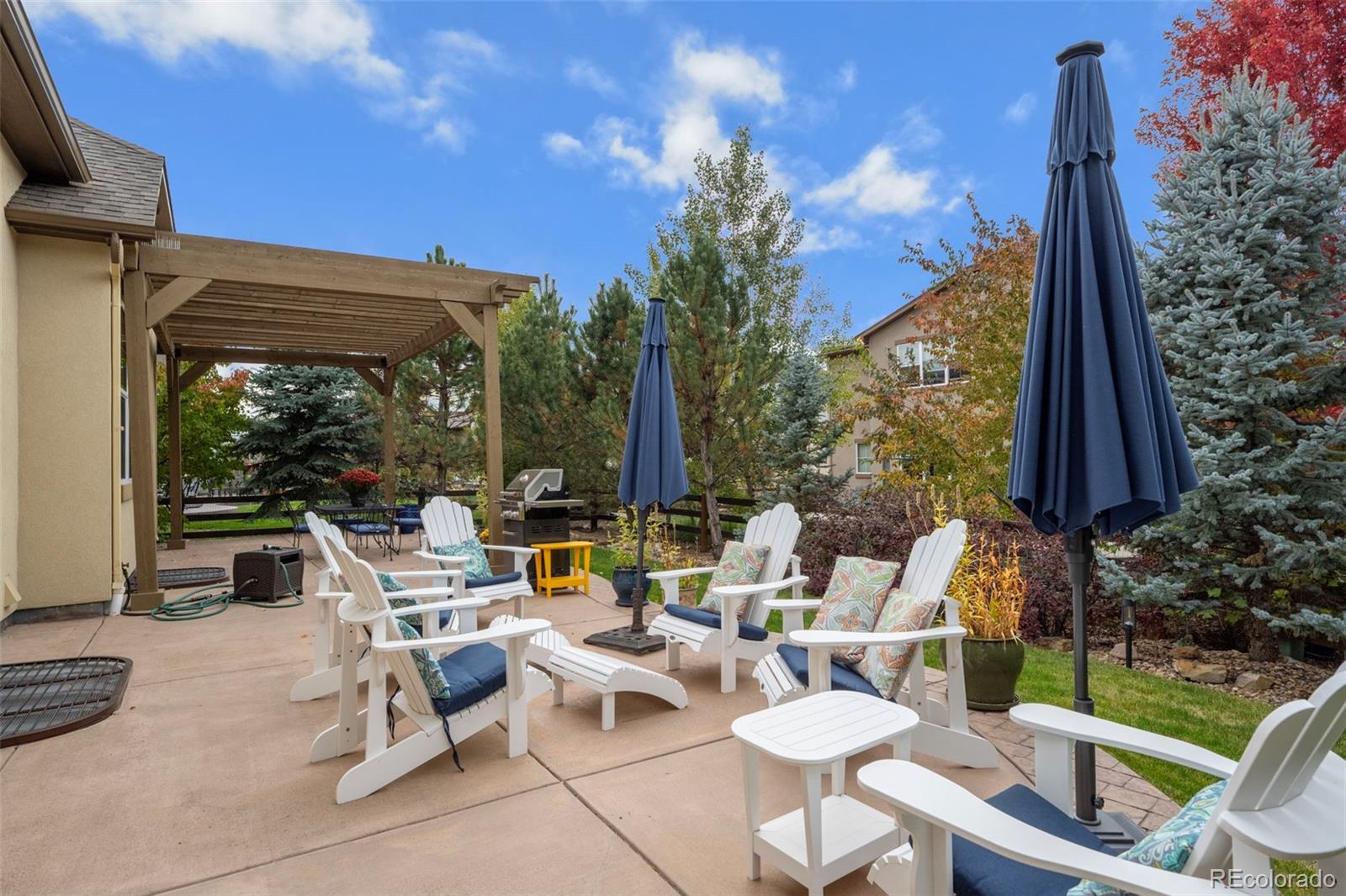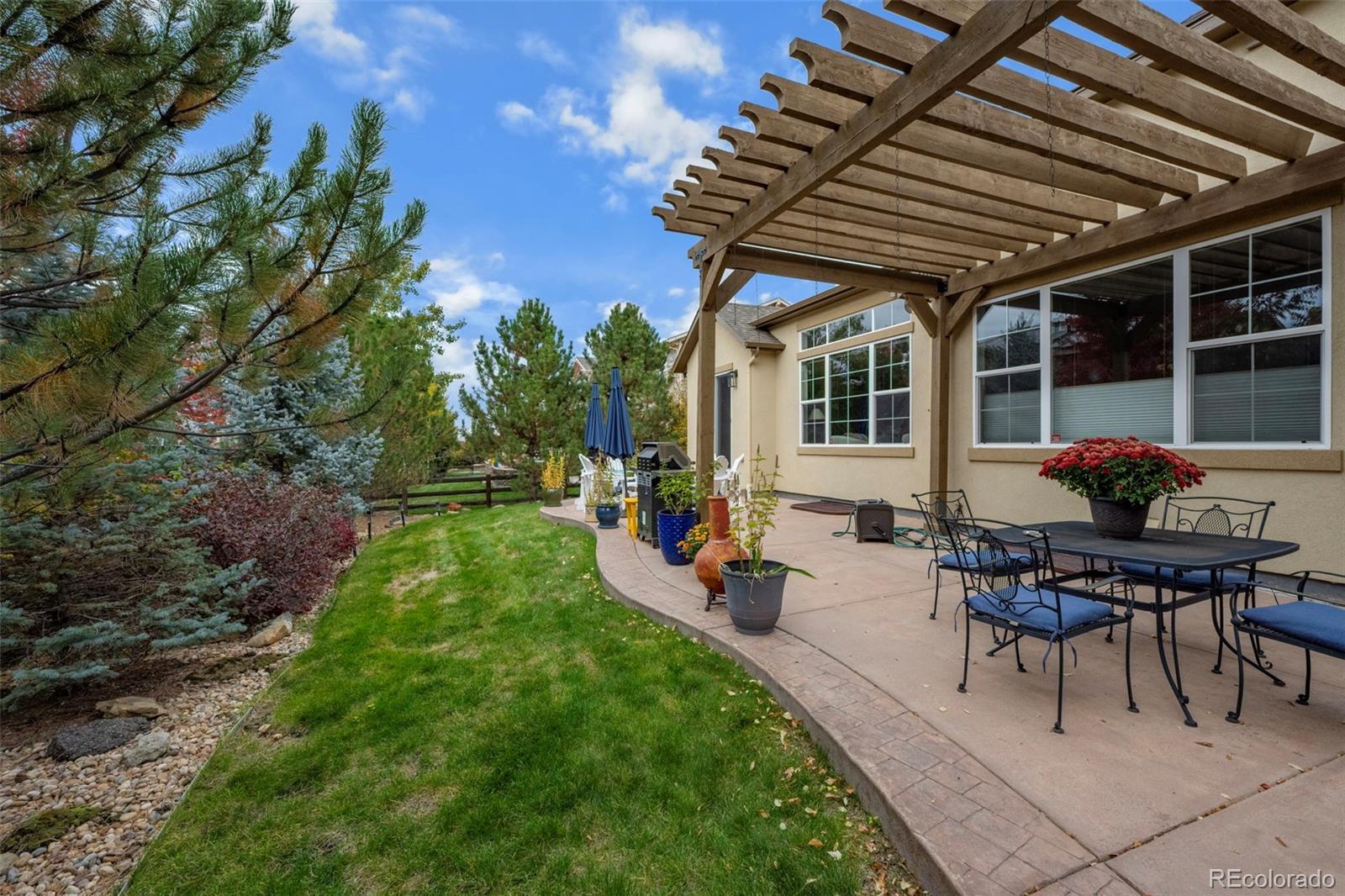 Beautiful ranch home with a 3-car tandem garage and finished basement! Located in the Boulder Valley School District, surrounded by trails, open space, and easy access to Boulder, Denver and DIA — providing both convenience and access to the outdoors. The main floor features high end upgrades and hardwood flooring, a French-doored office, a formal dining room with custom lighting, and a spacious great room with a gas log fireplace, built-ins, and access to the outdoors. The gourmet kitchen includes granite counters, a large center island, custom pendant lighting, double convection ovens, a gas cooktop, and a pantry—perfect for gathering. The primary suite boasts tray ceilings and a 5-piece bathroom with dual walk-in closets. A secondary main-floor bedroom also includes a private en suite bathroom. The fully finished basement provides additional living space with a large recreation room and wet bar with pendant lighting, perfect for gatherings. A third bedroom and full bathroom complete the basement level. Step outside to the very private, fully fenced and landscaped backyard, featuring a huge patio, pergola, and a grassy area—ideal for entertaining. Between Old Town Erie and Old Town Lafayette, this home offers easy access to dining, shopping, nearby parks, and the Erie Recreation Center for endless outdoor activities. Near Hwy 287 and I-25 make commuting to Boulder, Denver, and DIA easy. Don't miss out on this high-end, upgraded ranch home with a finished basement and exceptional outdoor entertaining spaces!