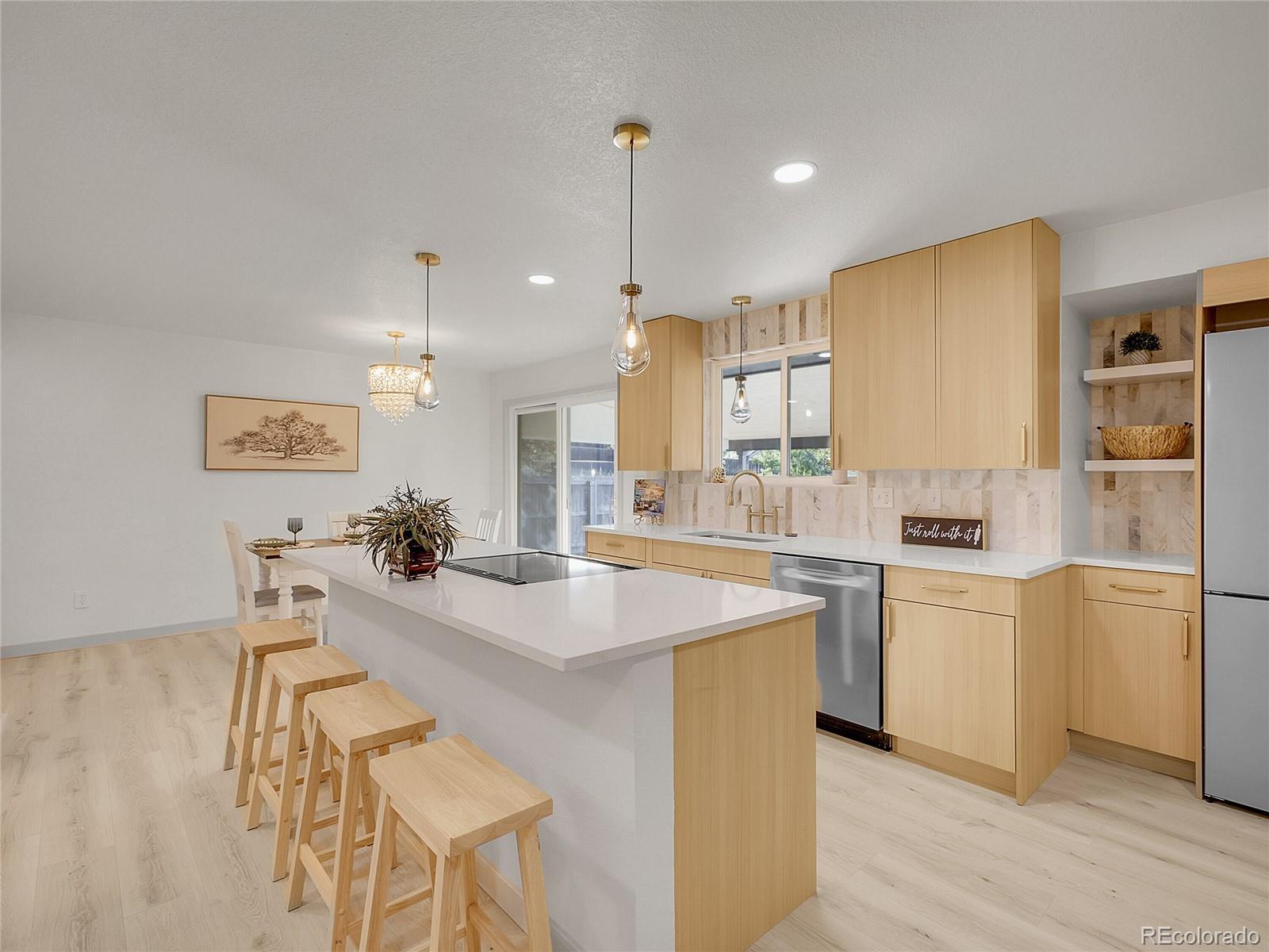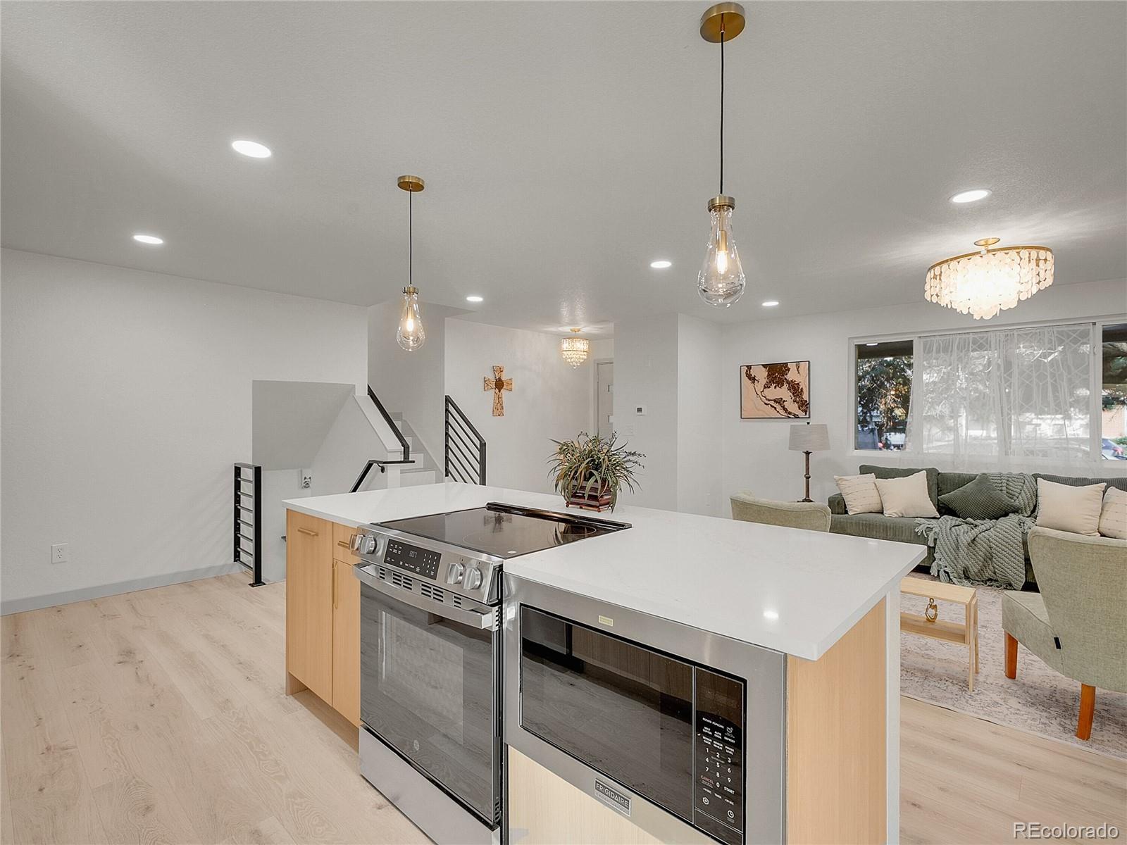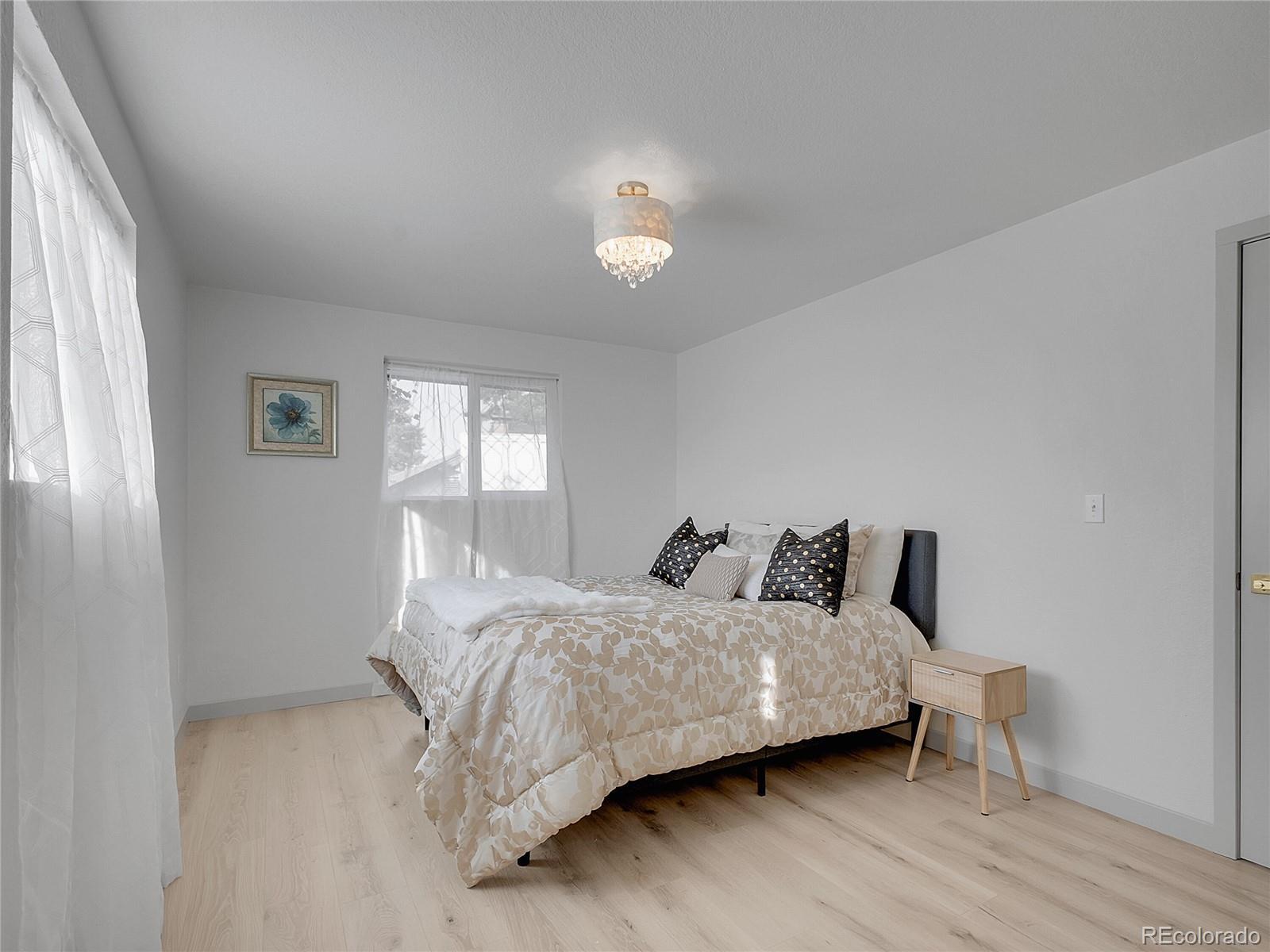 Welcome to this exquisitely polished home in the Lochwood neighborhood of Lakewood. Be the envy of your friends, when entertaining in this 4-bedroom, 3½-bath property that offers new modern finishes, as well as, new flooring throughout. From the low maintenance landscaping of the front yard, to the inviting oversized cover porch, this home redefines curb appeal. The gourmet kitchen features new sleek custom cabinets, beautiful quartz countertops, and shiny new stainless steel appliances including a fabulous double refrigerator. The huge picture window in the open concept living room, lights up this warm gathering space which features a cozy fireplace. Step outside the dedicated dining area to a magnificent covered outdoor living area and enjoy one of many gorgeous Colorado sunsets. Back inside, the three spacious bedrooms upstairs, including the primary, provide complete privacy for sleeping, studying or working from home. Adjacent to the garage is a large den and powder room that is perfect for relaxing in the evening or a great teen hangout. The finished basement adds extra living space with a secluded second primary complete with spacious bathroom and private living room. Major mechanical systems have been updated — new roof, windows, A/C, water heater, and garage door on the large two car garage. Don't miss out on this spacious home with an open layout, abundant natural light, and an oversized lot that is perfect for outdoor entertaining! Excellent location near shopping, transit, and schools (Kendrick Lakes, Carmody, Bear Creek) makes this the ideal home of your dreams.