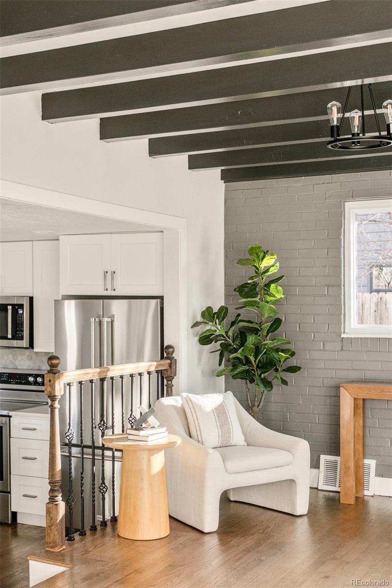 Striking architectural character meets exceptional livability in this thoughtfully updated University Park residence. Inside, soaring ceilings with exposed beams crown the main living space, where floor-to-ceiling west-facing windows flood the interior with natural light. The open floorplan is both dynamic and intentional, creating a fully connected main level while subtle changes in elevation define individual living areas. Recent updates enhance both form and function, including newer systems, soft-close cabinetry and stainless steel appliances installed in 2021. A formal dining space opens directly to a private back patio, allowing seamless indoor-outdoor entertaining. Beyond, a fully fenced, oversized backyard offers coveted privacy and room to relax, garden or gather. An oversized garage adds everyday convenience. An ideal location between Cory-Merrill and Observatory Park offers close proximity to the University of Denver, Wash Park, Platt Park and major commuter routes. OPEN HOUSE Saturday 1/31 - 11am-1pm