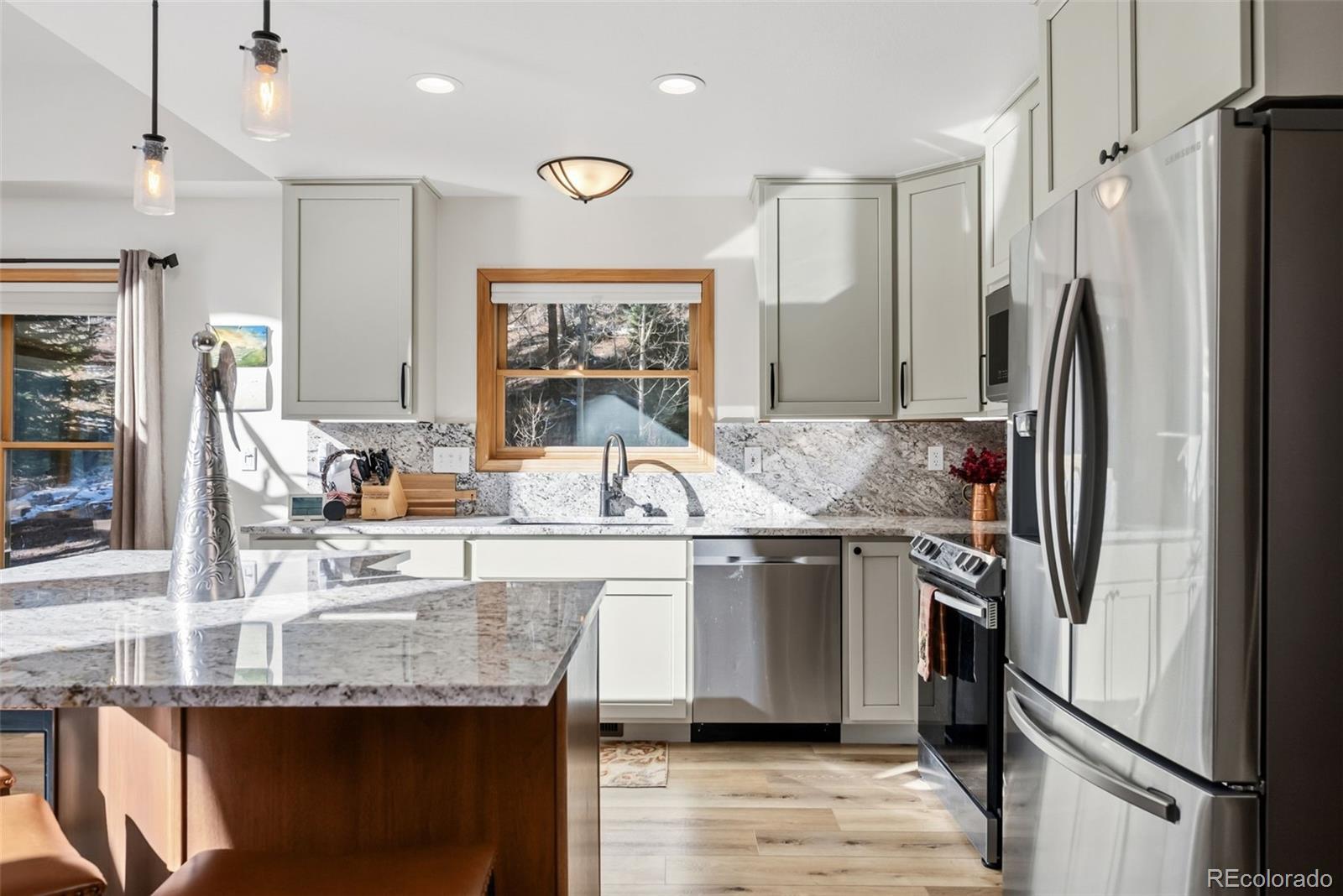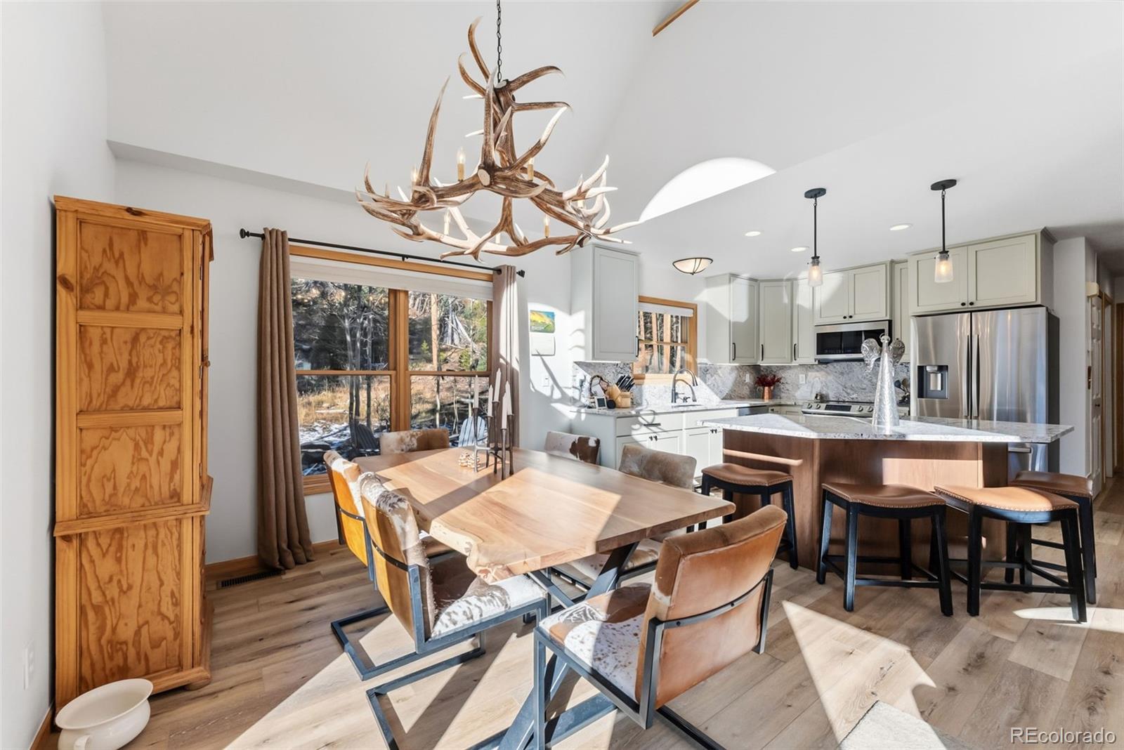 .70 acres bordering National Forest and just 3.1 miles to Breckenridge, this turnkey 4-bed, 2.5-bath mountain retreat blends comfort and convenience. A vaulted great room with a gas fireplace flows to a sunny deck. The renovated kitchen showcases stainless appliances, new cabinetry, and bar seating—ideal for après-ski gatherings. Upstairs, a bright loft offers flexible space for work or reading alongside the primary suite. The lower level is an entertainment hub with a theater, game area, second living room, a bedroom, and a half bath. Recent updates include refreshed baths, wood and tile flooring, a new furnace, sewer connection, and a handy storage shed. Seller plans a two-car garage beginning Spring/Summer 2026. Owners enjoy nearby exclusive access to Goose Pasture Tarn—Blue River’s private lake perfect for paddle boarding, kayaking, and fishing. Short-term rental permits are available.