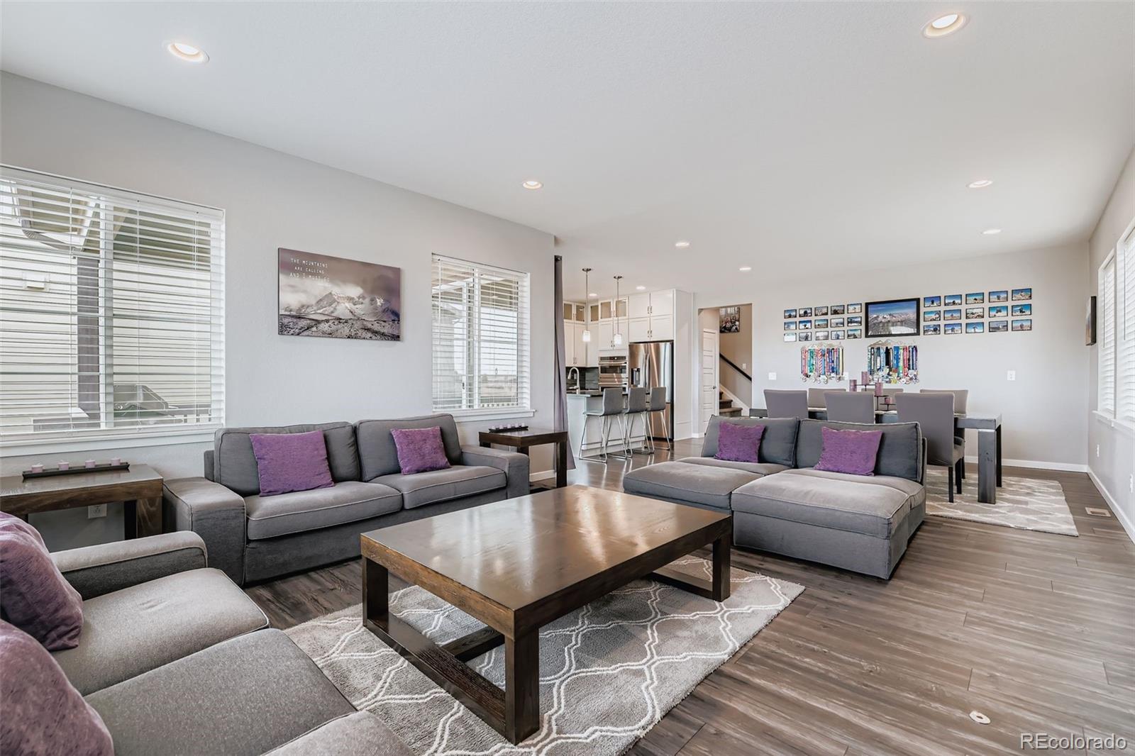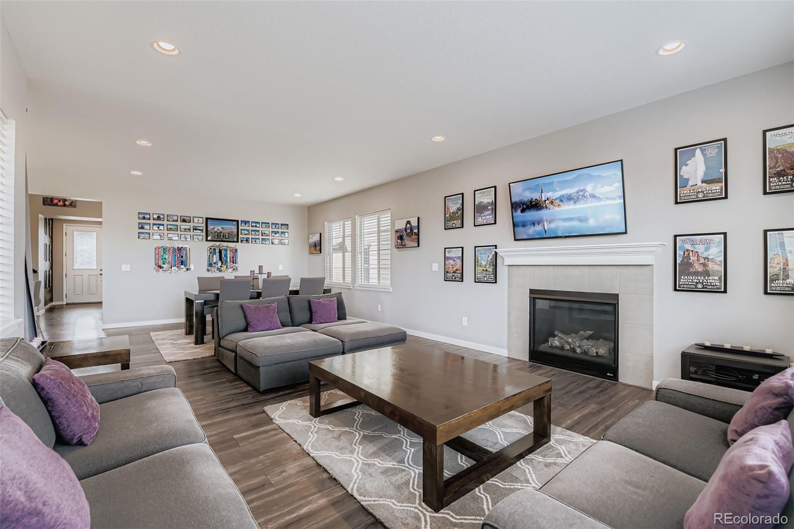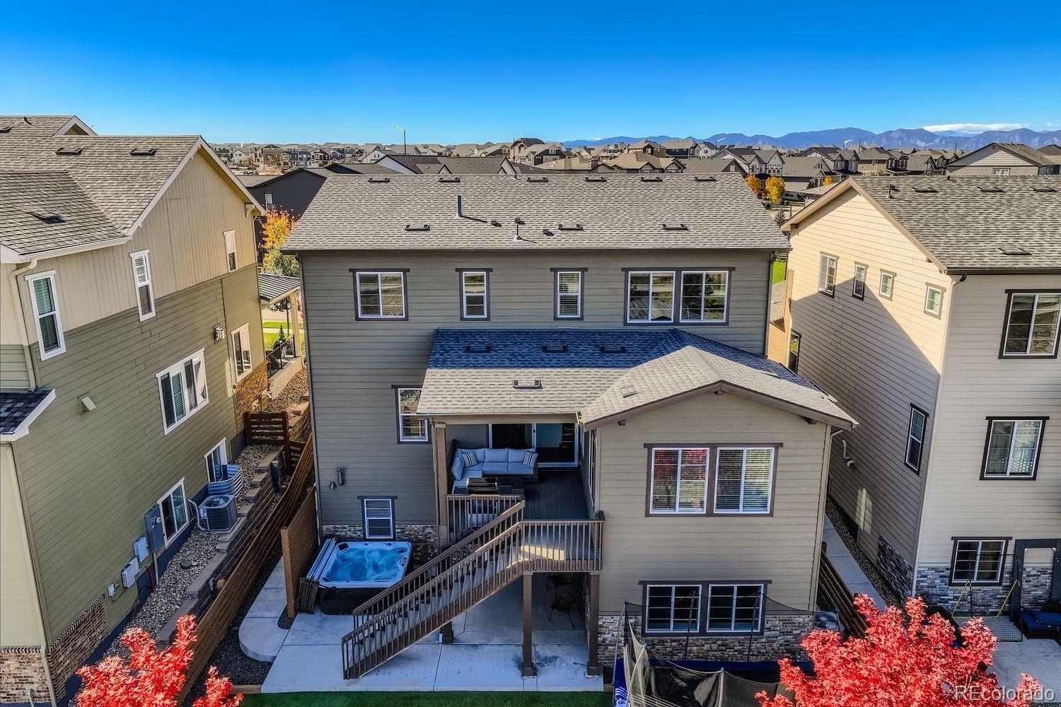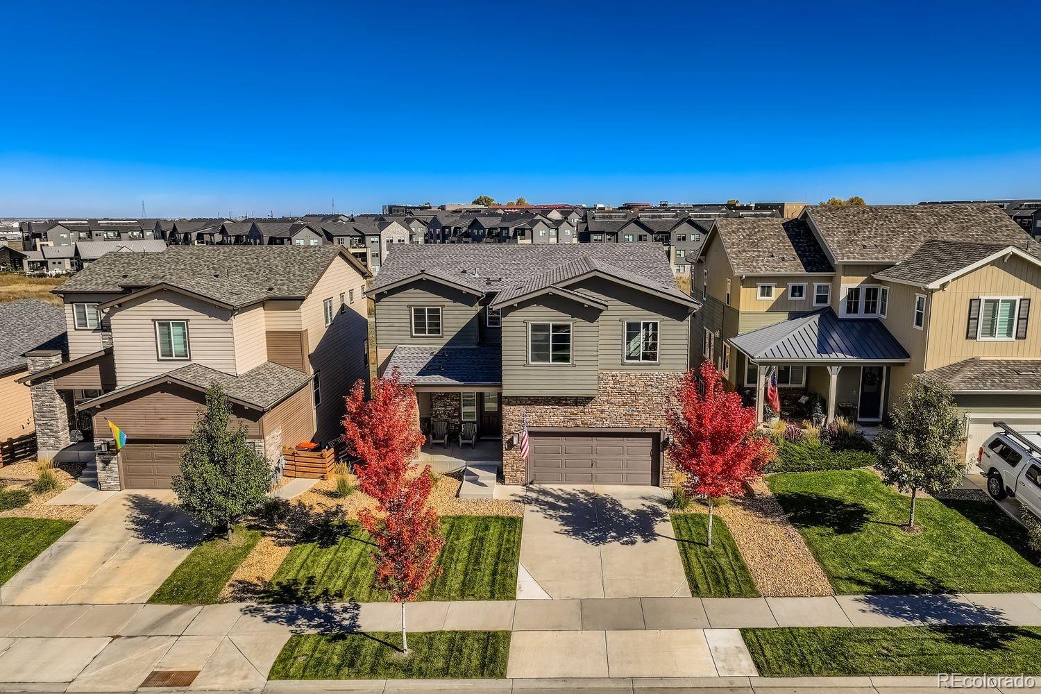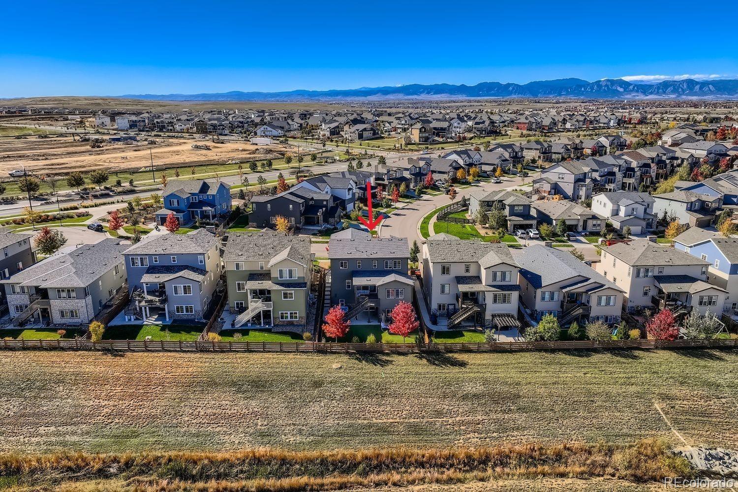 Welcome to Colliers Hill! This stunning 2-story with high-end upgrades offers an unparalleled living experience in a prime location with amazing community amenities. This versatile and spacious layout with a full finished walkout basement boasts 5 bedrooms, 5 baths, main floor study/office plus a loft! Step into the open foyer and gain easy access to a secluded powder bath which is just around the corner from the spacious study with double door entry. A completely open concept connects the kitchen, dining and living spaces. The chef inspired kitchen has a large island, stainless steel applc's, gas range, wrap around quartz countertops, soft close shaker cabinets, custom backsplash, walk-in pantry and patio door access to the covered back deck. The grand staircase will guide you upstairs where you'll find the primary suite with a spa-like 5 pc bath & dual WI closets. There are 3 nice sized secondary bedrooms. One has it's own full bath, one has a WI closet. An additional full bath w/a dual vanity is easily shared by the addt'l two bedrooms. Conveniently situated between all the bedrooms is a nice sized loft. Don't forget the visit the fully finished walkout basement! The $100K basement finish has a full 2nd kitchen with the same finishes as on the main level plus a WI pantry, a huge family/rec room, a beautiful 3/4 bath located just around the the corner from the conforming bedroom which has a large WI closet and it's own full size WA/DR! We haven't even discussed the amazing backyard that backs to open space w/mountain views! This beautiful space has artificial turf and can be enjoyed year around! Move freely from the main level OS covered deck, down to an extended covered patio w/hot tub and access to the basement. The OS 3-car tandem garage has plenty of room for all your toys! Everything is done for you, move in and enjoy! All of this is minutes to parks, paths, community center (2 pools & 2 clubhouses), shopping, schools, I-25 and more! What are you waiting for?