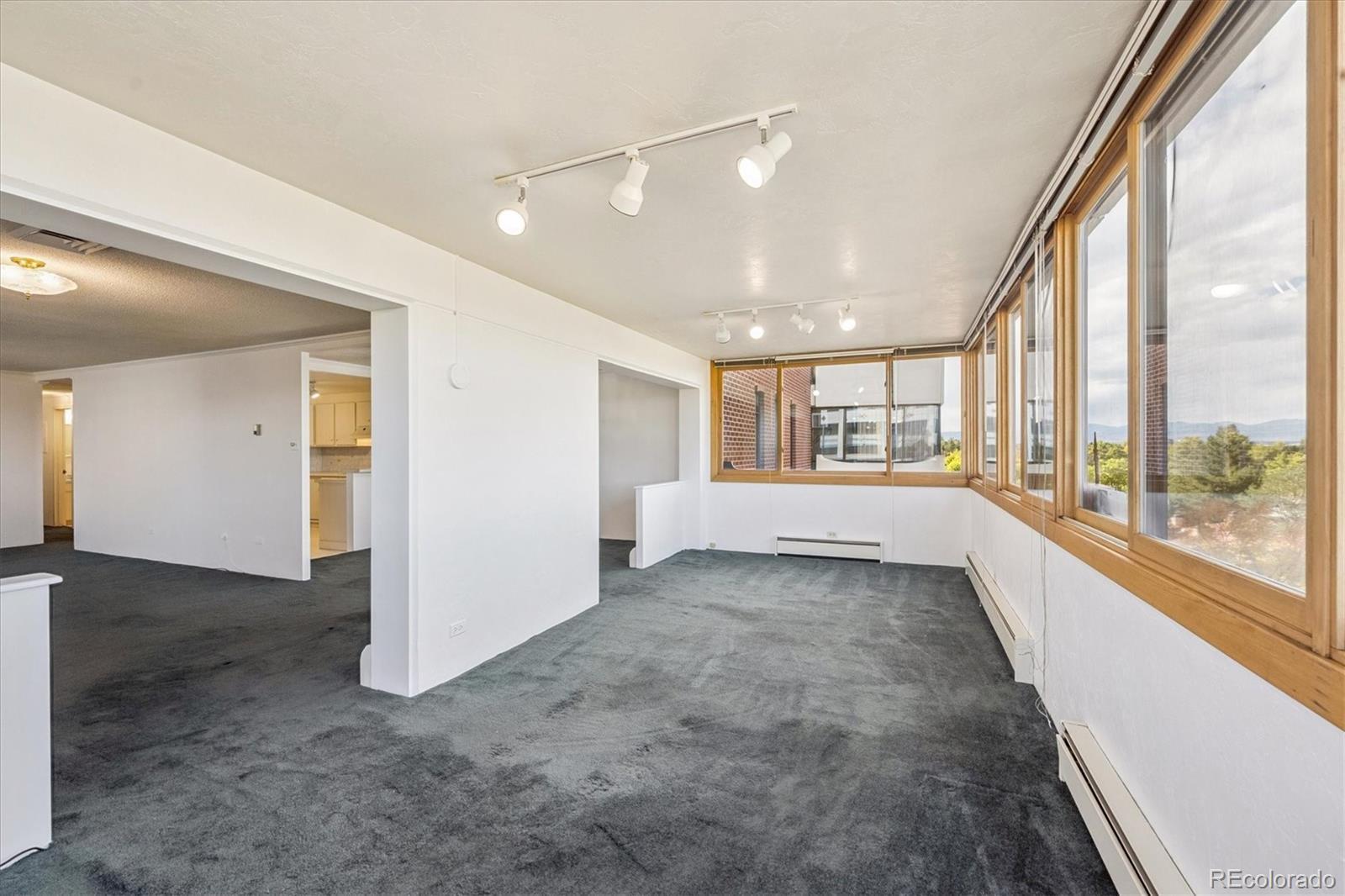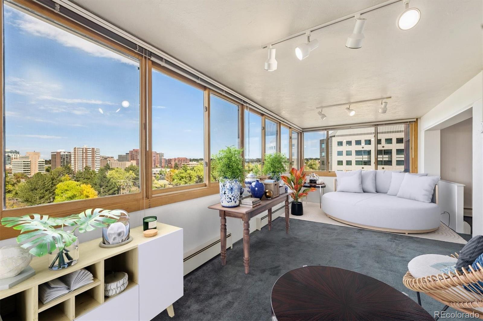 Panoramic views from this prime opportunity in Cherry Creek’s Polo Club community. Rarely does a property with this much potential become available in one of Denver’s most prestigious high-rise communities. Located on the 6th floor of the highly sought-after Polo Club, this 2-bedroom, 2-bathroom corner unit offers exceptional views of the mountains and downtown Denver from the spacious enclosed lanai/sunroom. There are double closets in the spacious primary suite. The second lanai is also enclosed offering a perfect space for a home office or reading nook. Plenty of storage spaces in the unit plus a deeded storage closet in the building. Freshly painted & cleaned, new kitchen & bath faucets, with the rest waiting for your vision and imagination. Ideal for a modern and contemporary luxury redesign as your private retreat, high-end flip or long-term rental. Similar renovated units in the building have demonstrated strong resale values, making this a compelling investment. Enjoy comprehensive & convenient high-end HOA amenities: • Front desk concierge • Secure underground parking including 1 deeded space • On-site property management • Fitness center • Indoor pool & hot tub • Library • Party and conference rooms • Private, gated 2 acre park • Five EV charging stations • Heat, cable & internet included in monthly HOA fee • Guest suites available for rent • Laundry, trash chutes & recycling on every floor • Beautifully maintained commons areas. All of this, just minutes from Cherry Creek’s finest shopping, dining, parks, and downtown Denver. Plus, the building’s atrium courtyard is undergoing a fabulous redesign including a 20 foot tall water feature which will add even more appeal to this exceptional property.