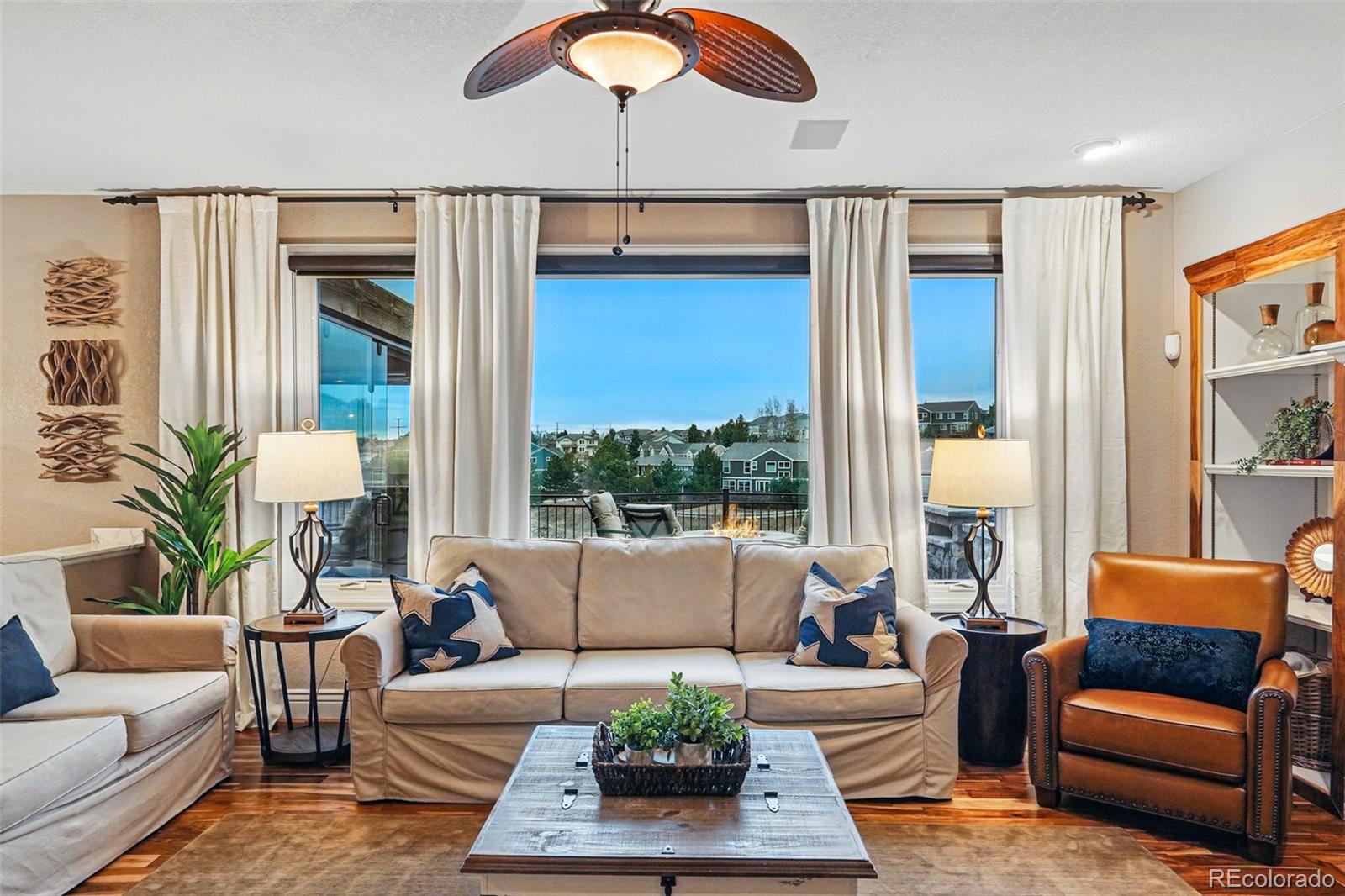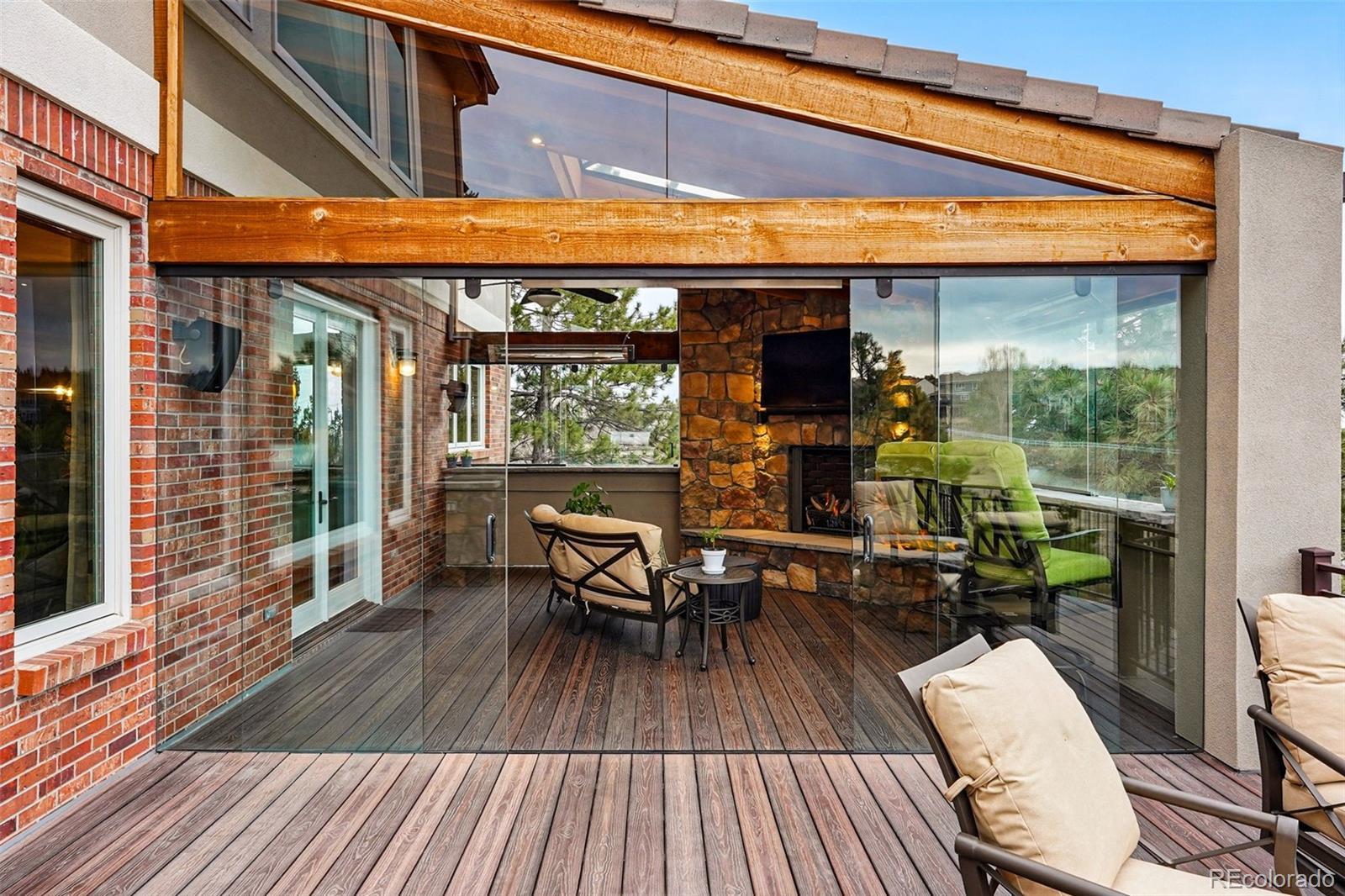 Perhaps Esperanza's finest offering... Welcome to this breathtaking residence, nestled in one of Castle Pines' most sought-after neighborhoods. As you enter this gated enclave, you're immediately greeted by a beautifully landscaped front yard, setting the tone for the elegance that lies beyond. Step inside, and a grand two-story foyer impresses with its soaring ceilings and intricate design, drawing you deeper into the home. Large, airy rooms throughout create a sense of space and openness, with every window framing picturesque views of the surrounding natural beauty. This home is thoughtfully designed and meticulously upgraded, featuring new windows throughout. The showstopper is the fully enclosed all-seasons room off the back deck, where you can enjoy year-round comfort overlooking the open space behind the house. Complete with a striking stone gas fireplace, infrared heaters, custom lighting, sliding glass doors, and an outdoor TV, this space is perfect for entertaining or simply relaxing every day or night. Step outside onto the expansive deck to experience a built-in gas grill and Green Egg, ideal for preparing your favorite meals. Afterward, gather around the gas firepit for a cozy evening of s’mores or retreat below to the private hot tub for ultimate relaxation. Whether you’re playing a game of chess or simply enjoying the serenity, this home has it all. Located in the prestigious Castle Pines North neighborhood, you’ll enjoy exceptional amenities like a neighborhood pool, miles of scenic trails, and stunning mountain views. Plus, with easy access to top-rated metro Denver schools, this home offers the perfect balance of luxury and convenience.