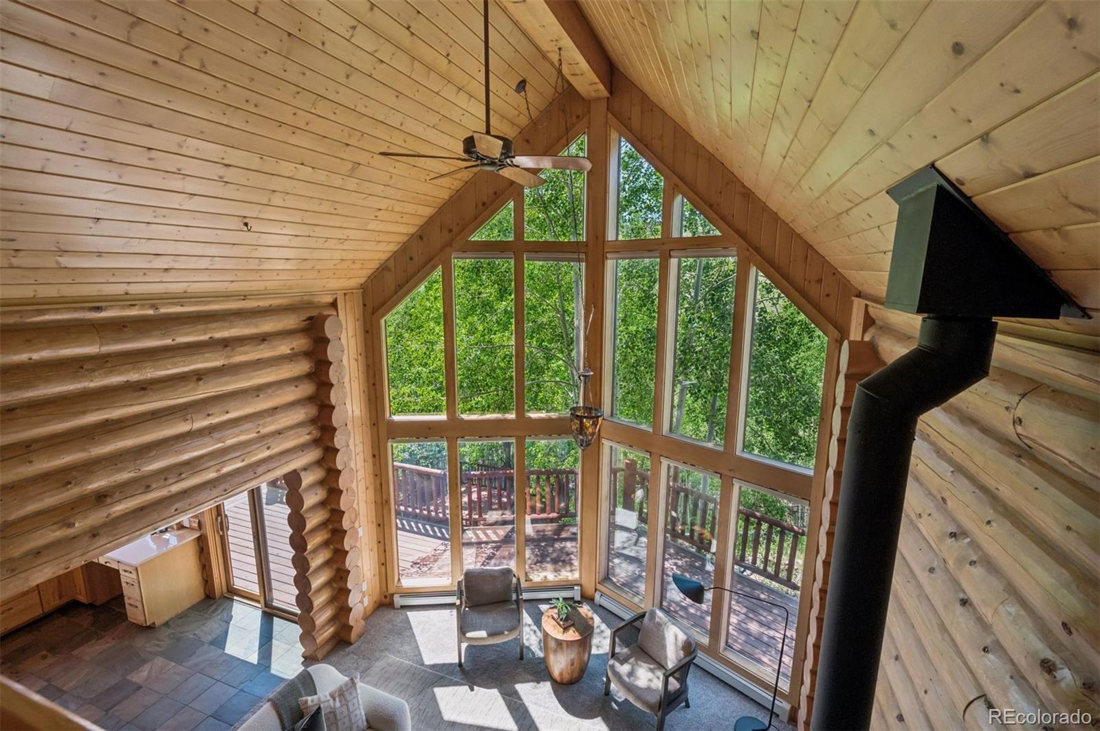 Tucked away on over 13 private acres in Pine, Colorado, this timeless log home is a rare mountain retreat where nature and craftsmanship meet. With 4 bedrooms and 4 baths across 3,389 square feet, the home exudes warmth and character—rich wood interiors, vaulted ceilings, and a seamless blend of rustic charm and thoughtful upgrades. Unwind in the 778 sq ft heated sunroom, soak in views from the deck, or lose track of time beside the natural spring pond. The detached 384 sq ft studio is ideal for creative pursuits or hobbies, while a 10,000-gallon rainwater collection system, new metal roof, and RV parking offer practical ease. Whether you're savoring a quiet morning by the water feature or entertaining under the stars, this is mountain living at its most soulful—a forever home, weekend hideaway, or artist’s escape.