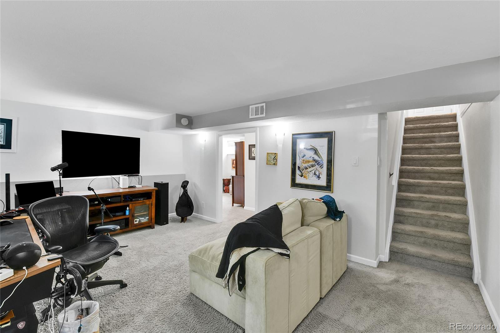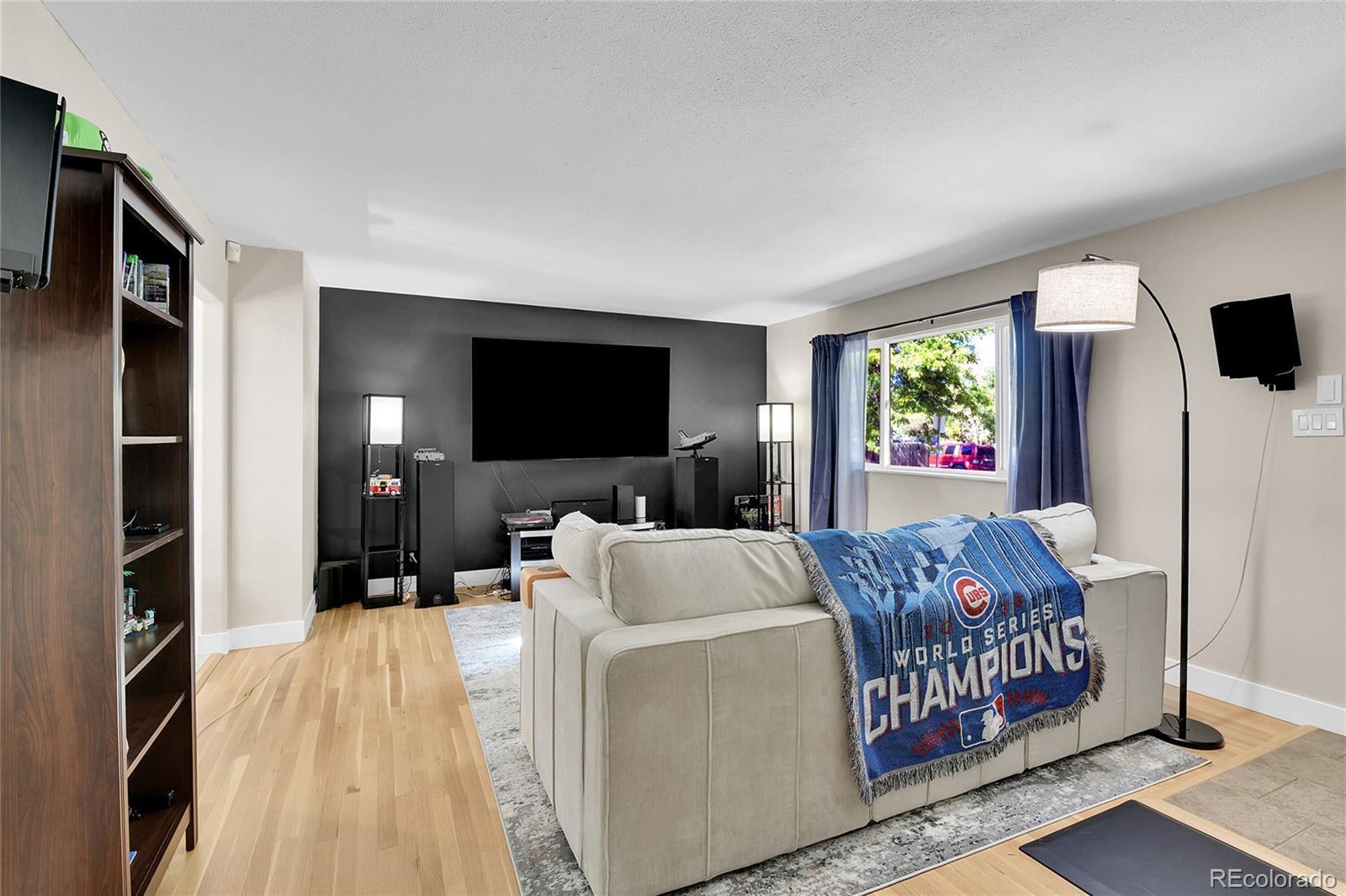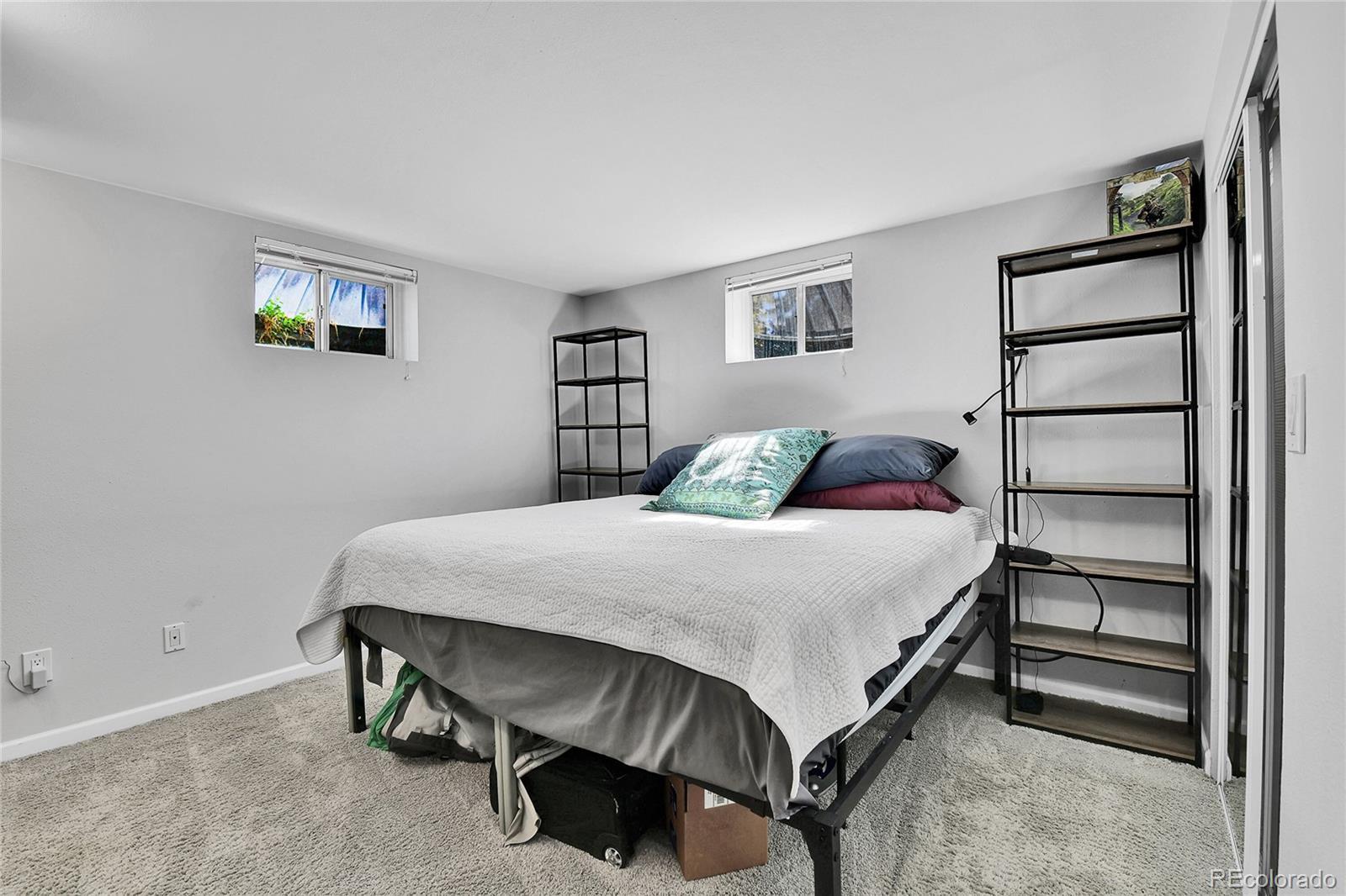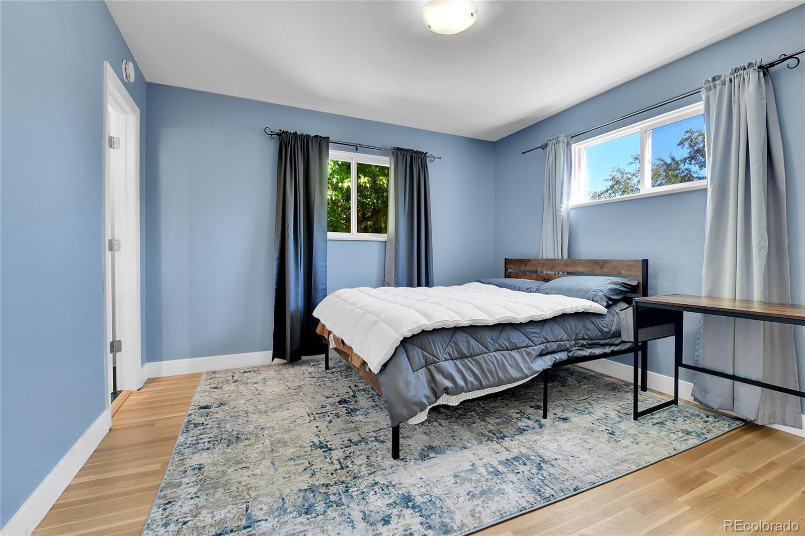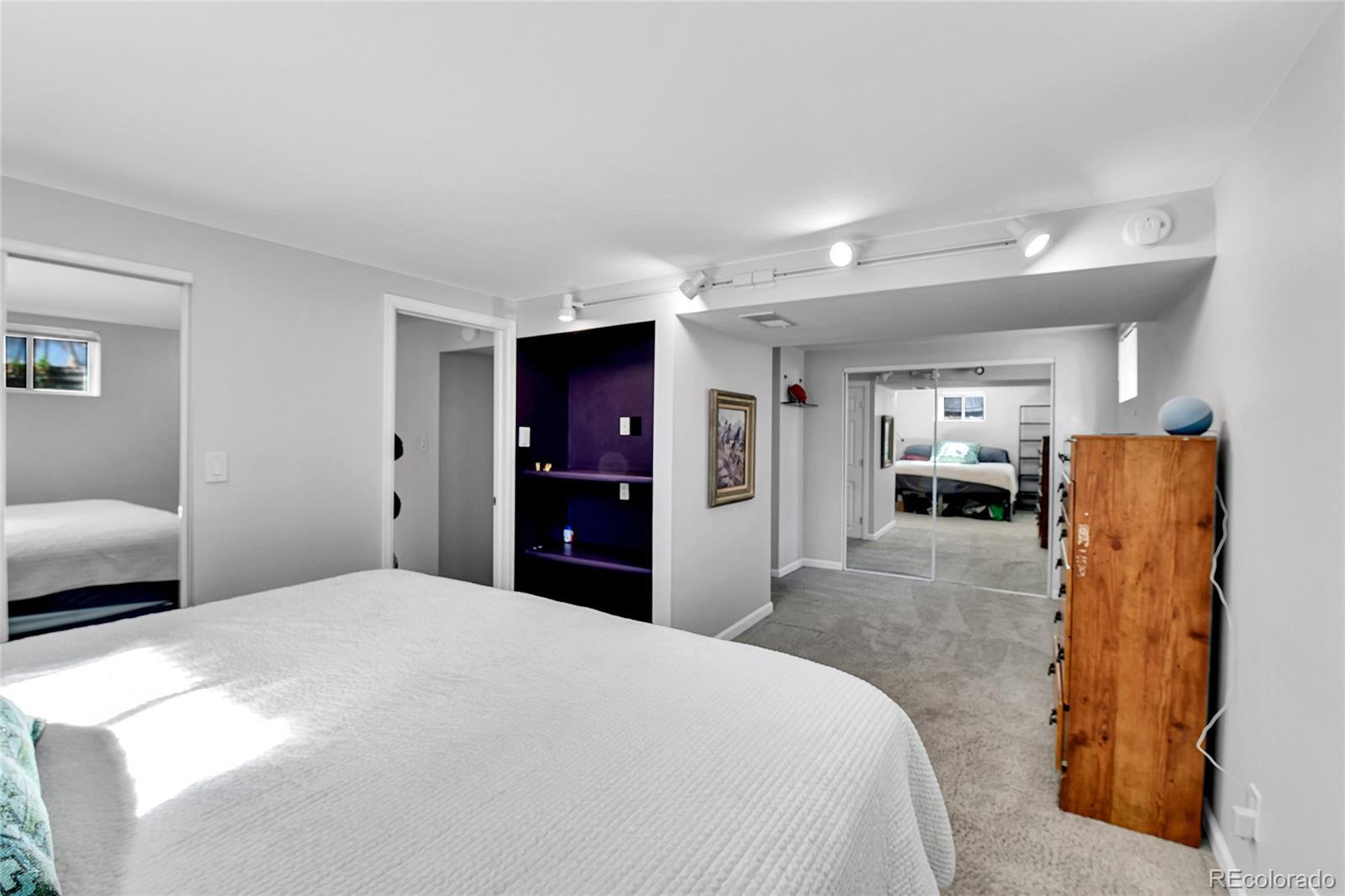 Welcome to this beautifully maintained ranch-style home located in the heart of Lakewood! Offering 2,355 square feet of thoughtfully designed living space, this residence features 3 bedrooms, 2 full bathrooms, and a half bath. The inviting layout provides a wonderful balance of comfort and functionality, ideal for both everyday living and entertaining. Step inside to a bright and airy living room accented by gleaming hardwood floors and abundant natural light, creating a warm and welcoming atmosphere. The adjoining kitchen is a chef’s delight with generous cabinetry, expansive counter space, a breakfast bar, and skylights that fill the space with sunshine. The primary bedroom offers a cozy retreat with plush carpeting and a private en-suite bath, while additional bedrooms provide flexibility for guests, an office, or a hobby room. A large bonus room off the kitchen can serve as a non-conforming bedroom, home office, studio, or exercise area. The finished basement adds even more living space with a spacious family room, office, and large bedroom with an adjoining bathroom—currently used as the primary suite. Outside, enjoy a fenced backyard complete with a patio and outdoor dining area, perfect for relaxing or entertaining during Colorado’s sunny days. The detached garage with workshop space offers ample room for storage and projects. Ideally located in the desirable Lasley neighborhood, this home is just minutes from Belmar’s shopping and dining, with easy access to downtown Denver and major highways leading to the mountains. Combining modern amenities with timeless charm, this Lakewood gem is the perfect blend of comfort, convenience, and Colorado lifestyle.