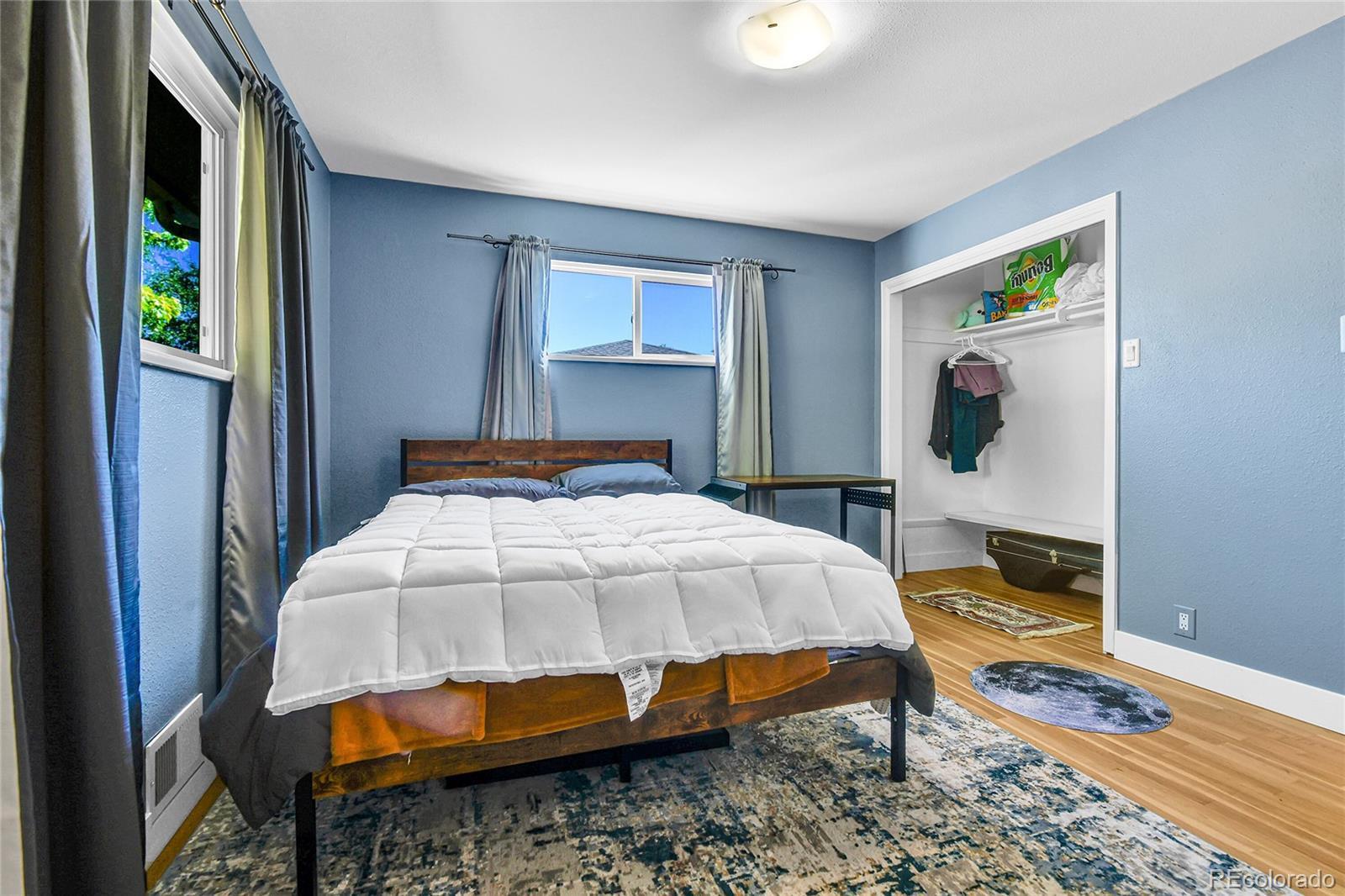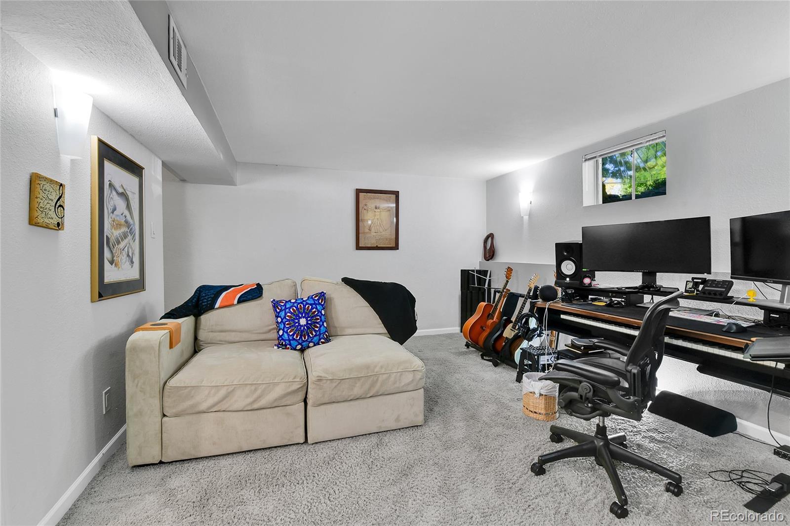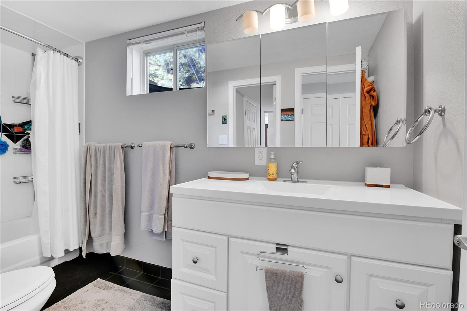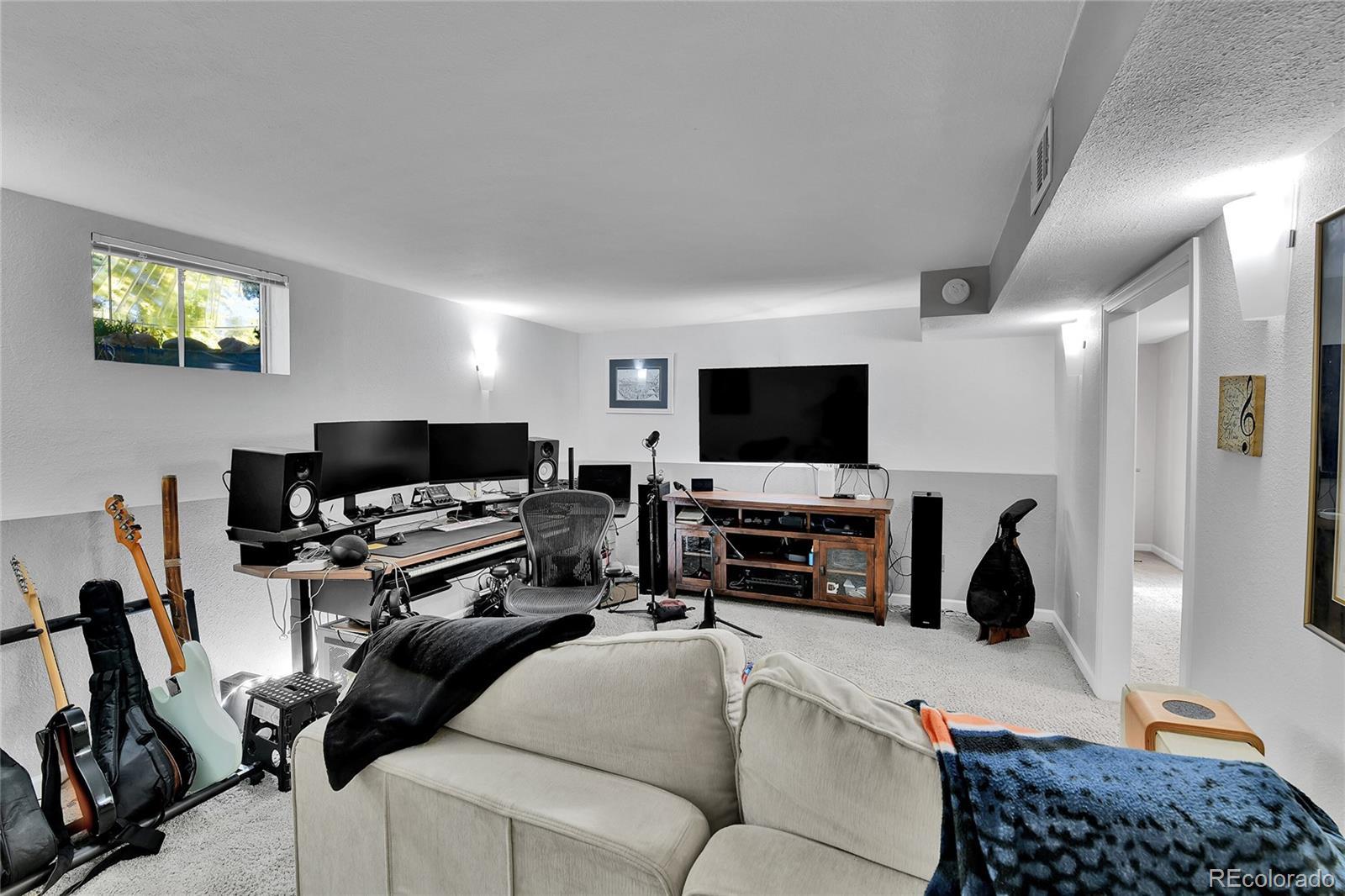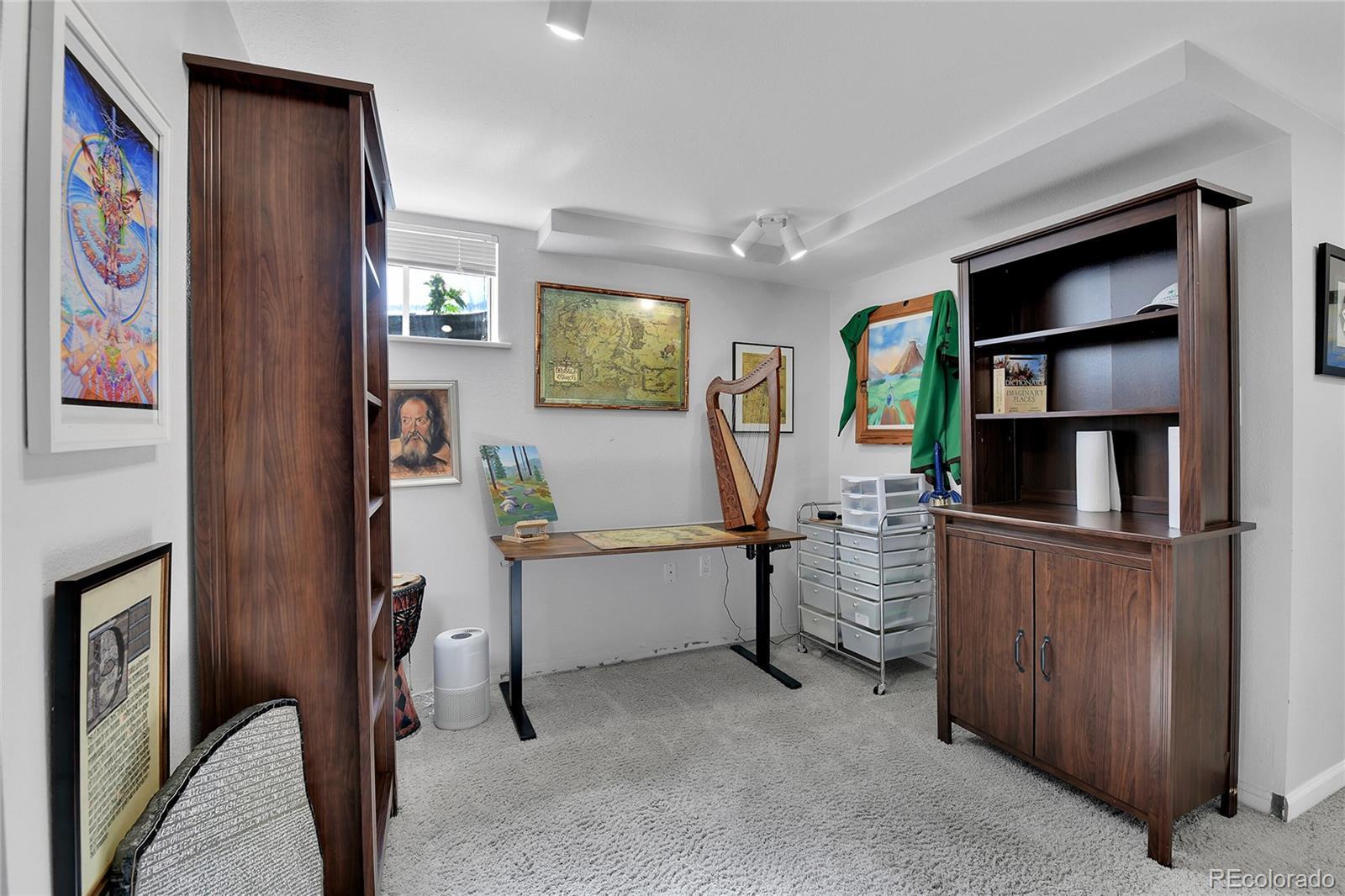 Welcome to this beautifully maintained ranch-style home located in the heart of Lakewood! Offering 2,355 square feet of thoughtfully designed living space, this residence features 3 bedrooms, 2 full bathrooms, and a half bath. The inviting layout provides a wonderful balance of comfort and functionality, ideal for both everyday living and entertaining. Step inside to a bright and airy living room accented by gleaming hardwood floors and abundant natural light, creating a warm and welcoming atmosphere. The adjoining kitchen is a chef’s delight with generous cabinetry, expansive counter space, a breakfast bar, and skylights that fill the space with sunshine. The primary bedroom offers a cozy retreat with plush carpeting and a private en-suite bath, while additional bedrooms provide flexibility for guests, an office, or a hobby room. A large bonus room off the kitchen can serve as a non-conforming bedroom, home office, studio, or exercise area. The finished basement adds even more living space with a spacious family room, office, and large bedroom with an adjoining bathroom—currently used as the primary suite. Outside, enjoy a fenced backyard complete with a patio and outdoor dining area, perfect for relaxing or entertaining during Colorado’s sunny days. The detached garage with workshop space offers ample room for storage and projects. Ideally located in the desirable Lasley neighborhood, this home is just minutes from Belmar’s shopping and dining, with easy access to downtown Denver and major highways leading to the mountains. Combining modern amenities with timeless charm, this Lakewood gem is the perfect blend of comfort, convenience, and Colorado lifestyle.