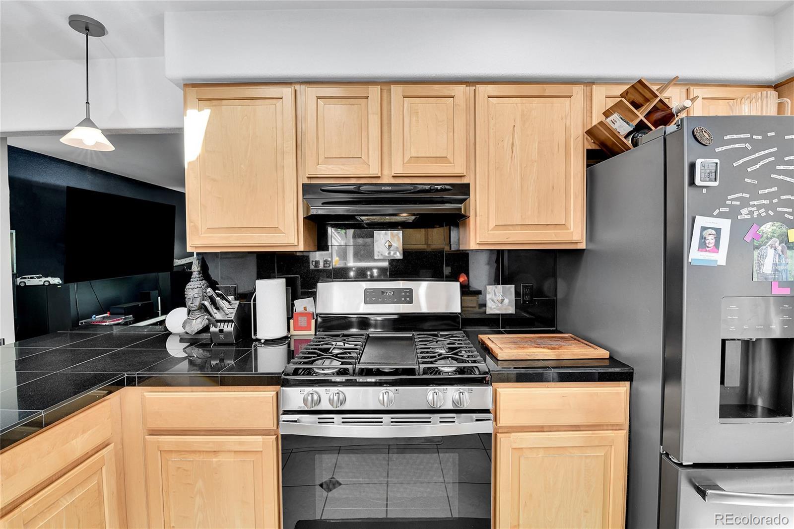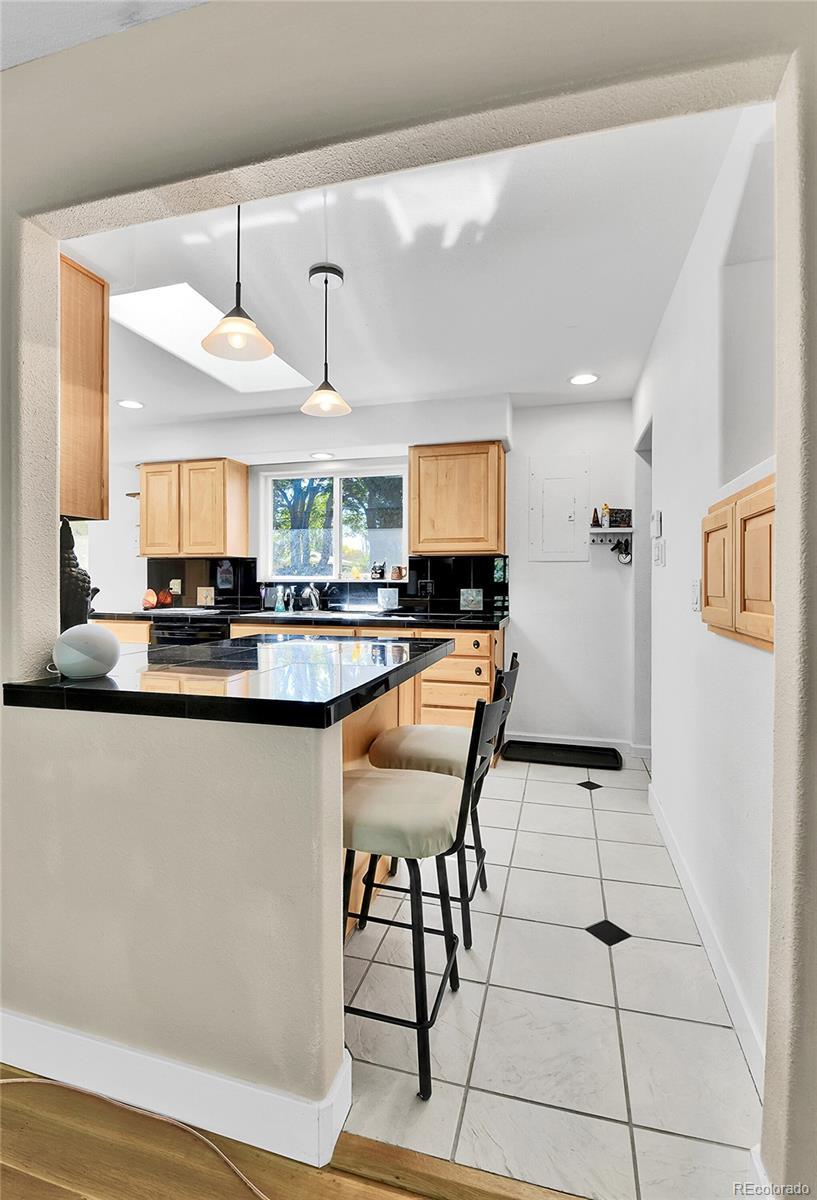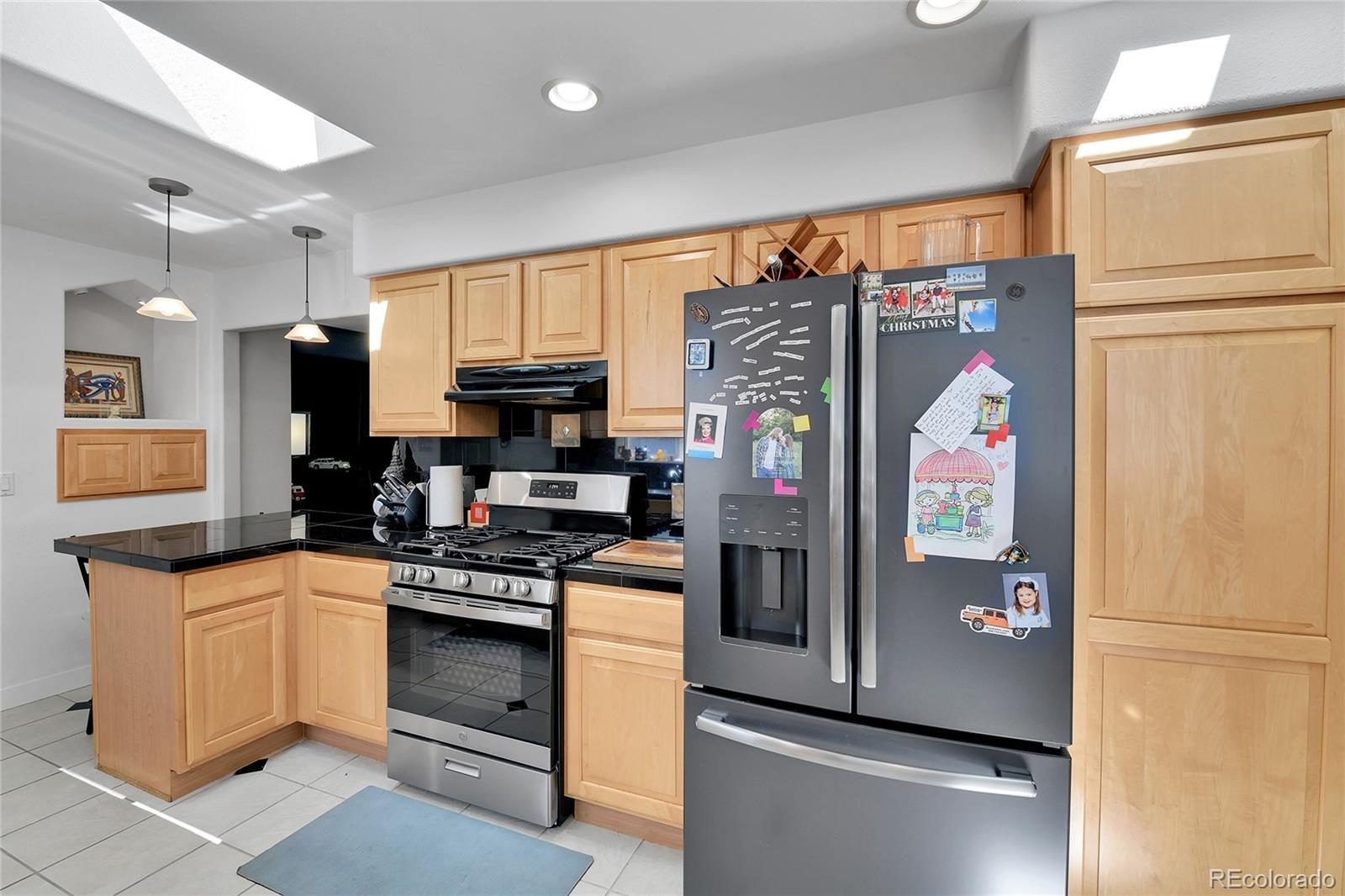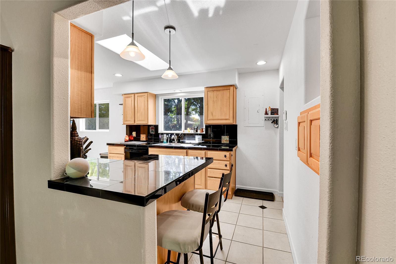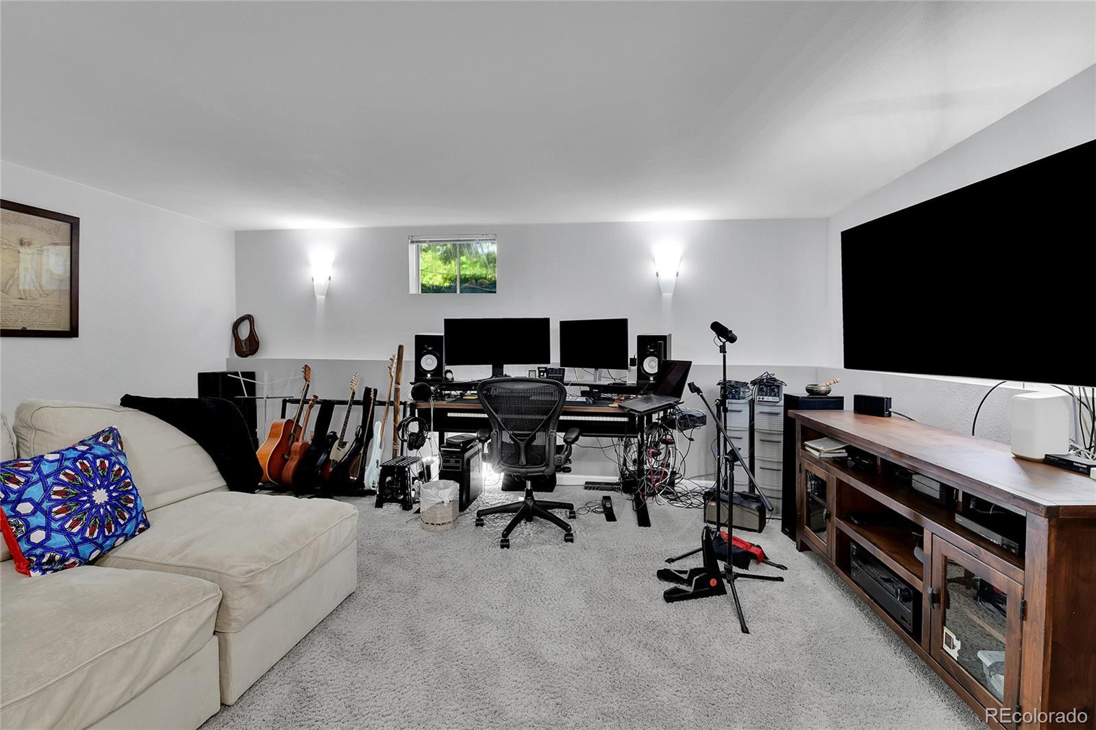 Welcome to this beautifully maintained ranch-style home located in the heart of Lakewood! Offering 2,355 square feet of thoughtfully designed living space, this residence features 3 bedrooms, 2 full bathrooms, and a half bath. The inviting layout provides a wonderful balance of comfort and functionality, ideal for both everyday living and entertaining. Step inside to a bright and airy living room accented by gleaming hardwood floors and abundant natural light, creating a warm and welcoming atmosphere. The adjoining kitchen is a chef’s delight with generous cabinetry, expansive counter space, a breakfast bar, and skylights that fill the space with sunshine. The primary bedroom offers a cozy retreat with plush carpeting and a private en-suite bath, while additional bedrooms provide flexibility for guests, an office, or a hobby room. A large bonus room off the kitchen can serve as a non-conforming bedroom, home office, studio, or exercise area. The finished basement adds even more living space with a spacious family room, office, and large bedroom with an adjoining bathroom—currently used as the primary suite. Outside, enjoy a fenced backyard complete with a patio and outdoor dining area, perfect for relaxing or entertaining during Colorado’s sunny days. The detached garage with workshop space offers ample room for storage and projects. Ideally located in the desirable Lasley neighborhood, this home is just minutes from Belmar’s shopping and dining, with easy access to downtown Denver and major highways leading to the mountains. Combining modern amenities with timeless charm, this Lakewood gem is the perfect blend of comfort, convenience, and Colorado lifestyle.