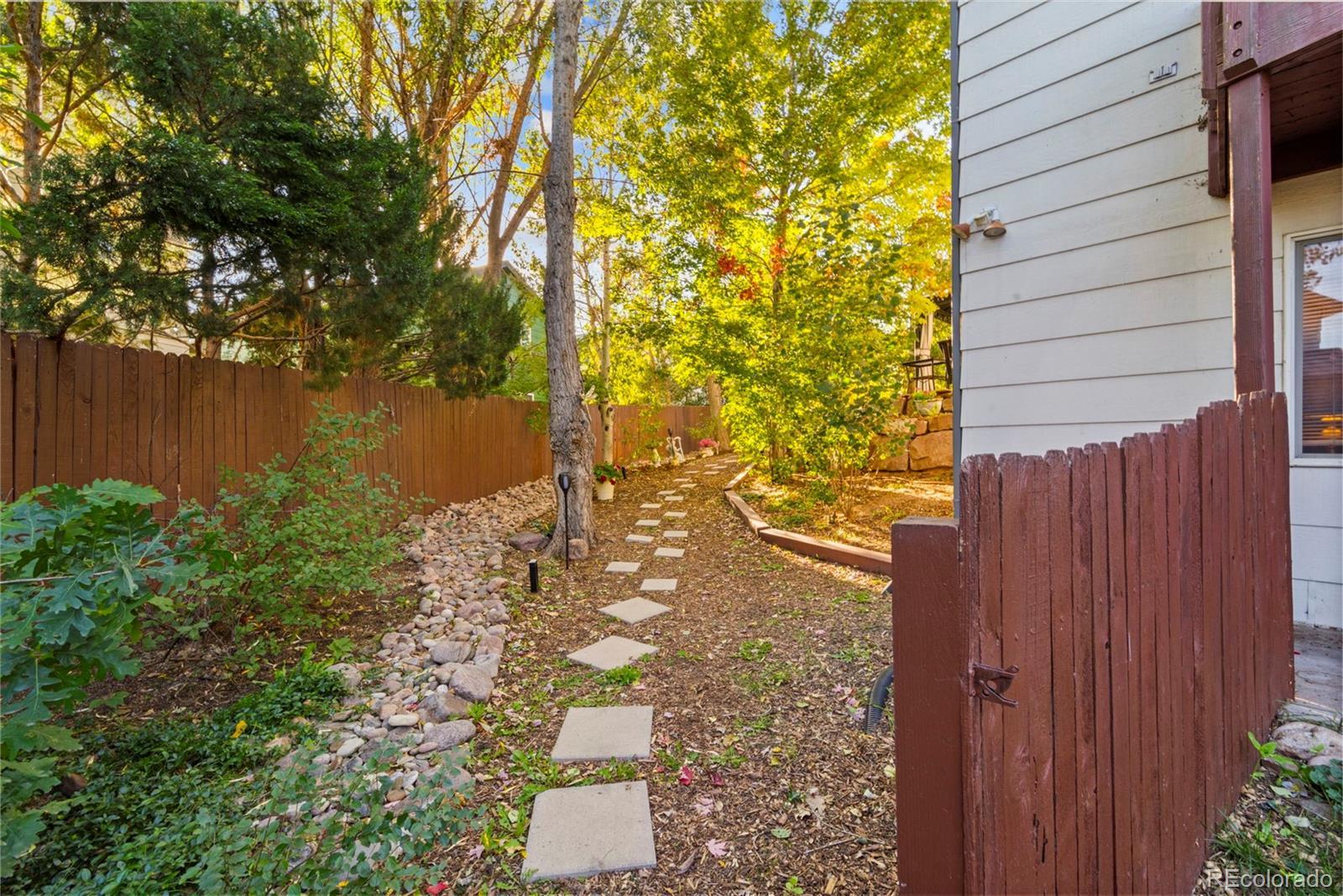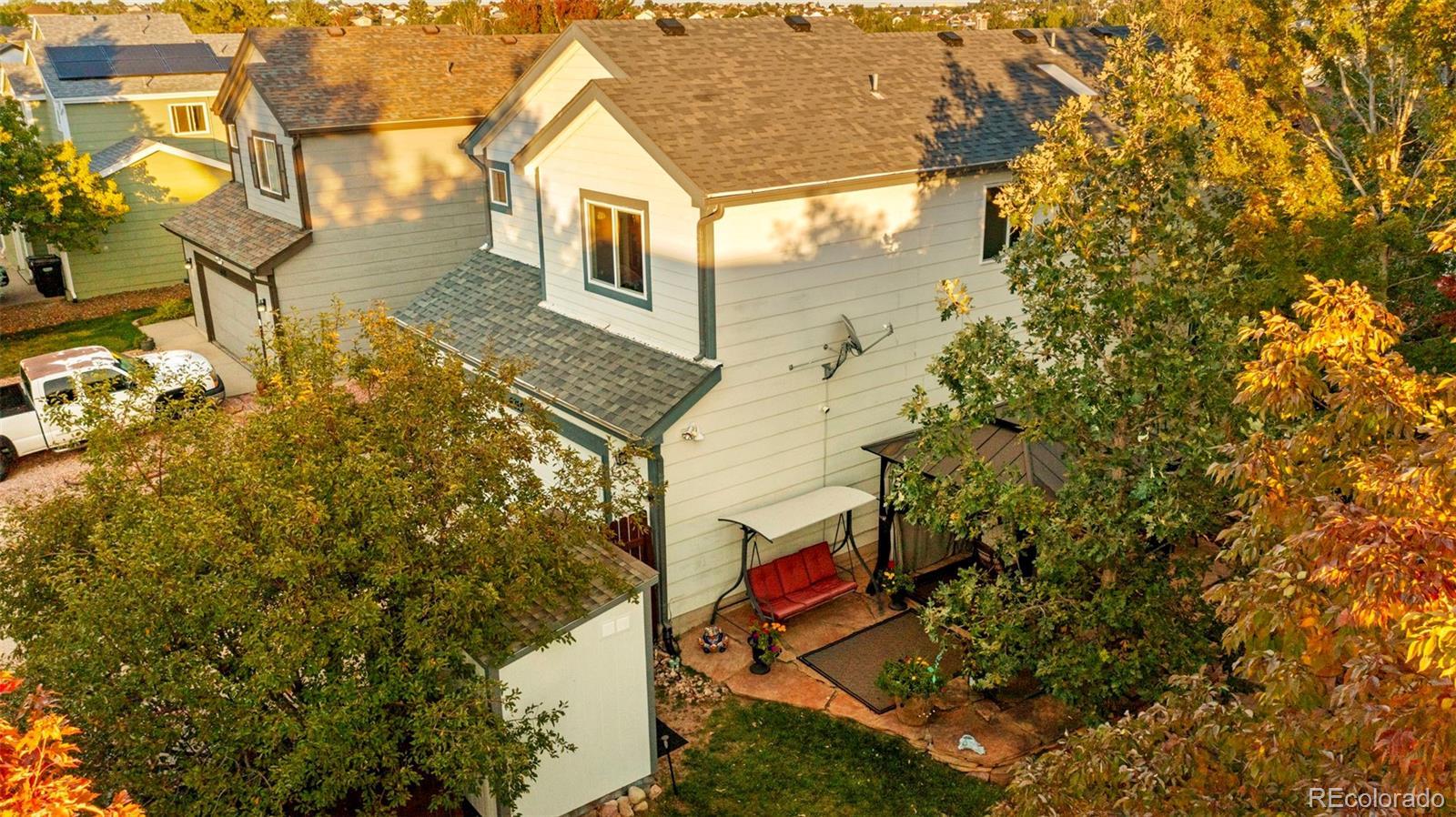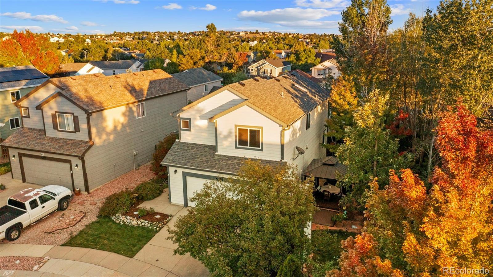 Come and explore this stunning home set on a cul-de-sac with a one-of-a-kind OVERSIZED lot featuring a beautifully landscaped secret garden like outdoor entertainment space. Walking inside you'll be greeted with soaring ceilings in the living room, perfectly framed by a gas fireplace with a custom built-in display. Luxury vinyl flooring extends throughout the main level, leading from the living and dining areas into the showstopping kitchen. The professionally upgraded kitchen will truly dazzle you with calcite countertops (an upgrade from traditional granite), custom cabinets with soft-close features and under-cabinet lighting, stainless steel appliances, a beautiful glass backsplash, and a pantry. The dining nook in the kitchen features a large picture window —which was added by the sellers— that overlooks trees and the stunning yard with vibrant fall colors. This window, along with the sliding patio doors that open to the back deck, fill the space with abundant natural light. Step onto the deck overlooking a green lawn, then explore further to discover a gate opening to a stone pathway with stunning landscaping. This leads to an additional expansive lawn with a stone patio, gazebo, and two storage sheds. This one-of-a-kind yard is unique to this lot, making it truly special. Plus, a large utility gate in the fence provides space to accommodate a trailer or trash cans from the curb. Back inside, move upstairs to find the primary suite with an en-suite bathroom featuring a double vanity, tub/shower combo, water closet, and walk-in closet. The upper level also includes two additional bedrooms and a full bathroom. The walkout basement offers a perfect space for family movie or game nights, along with a fourth bedroom with en-suite access—ideal for guests or a home office. Located in the coveted Stetson Hills area, enjoy close proximity to entertainment, dining, and shopping right off Powers Blvd. This home shows pride of ownership throughout and is a true gem!